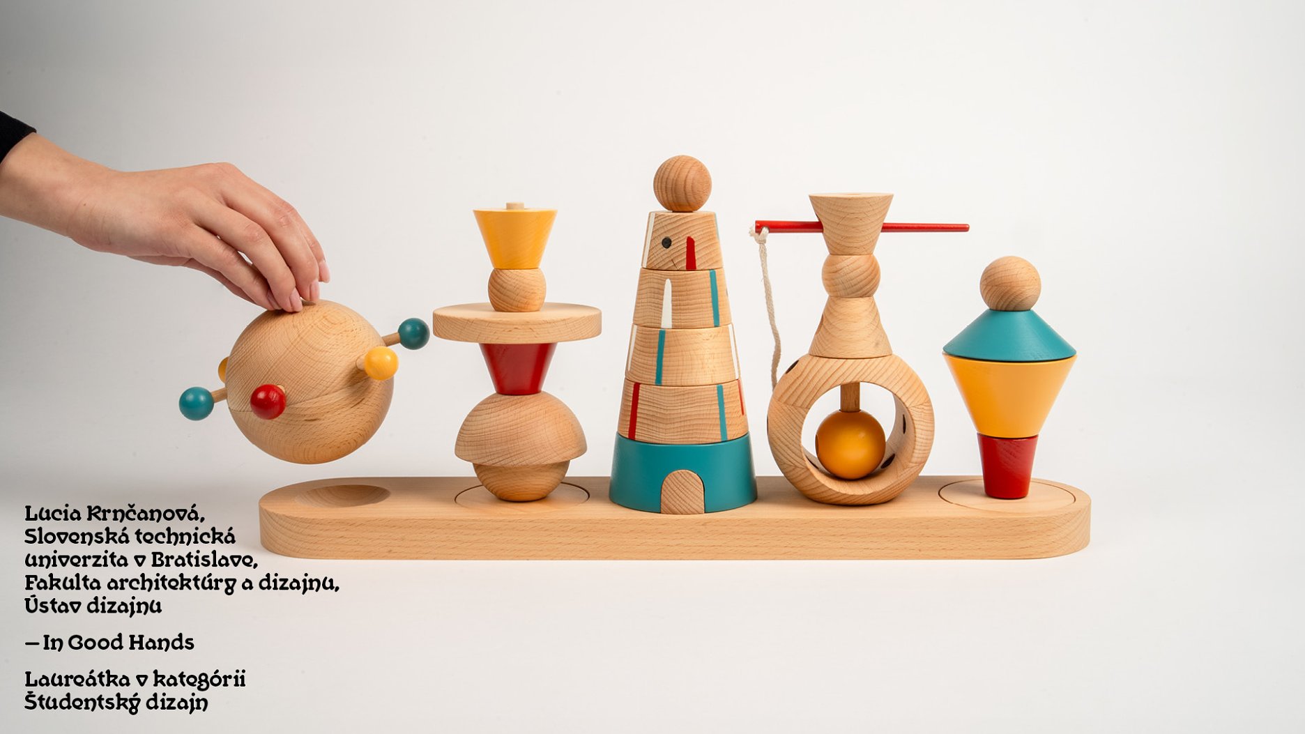 Návrh sa zameriava na sériu pomôcok určených na podporu a rozvoj jemnej motoriky a kognitívnych funkcií, zdôrazňujúc potreby staršej populácie. Zohľadňuje pritom prirodzené zmeny motorických zručností spojené s pribúdajúcim vekom, ktoré majú významný vplyv na každodenné aktivity a celkovú kvalitu života danej cieľovej skupiny. Súčasťou návrhu je aj skúmanie sociálneho aspektu, s dôrazom na význam spoločnej aktivity, komunikácie a interakcie medzi rovesníkmi, ako aj medzi staršími a mladšími generáciami. Každá pomôcka zo súpravy rozvíja iný typ úchopu, iný pohybový princíp, no zároveň umožňuje variabilitu náročnosti úloh. Súprava In Good Hands tak ponúka komplexný prístup k rozvoju jemnej motoriky, podpore kognitívnych funkcií a motivácii používateľa prostredníctvom integrovaných úloh.