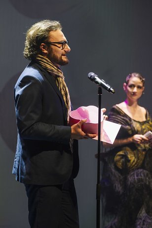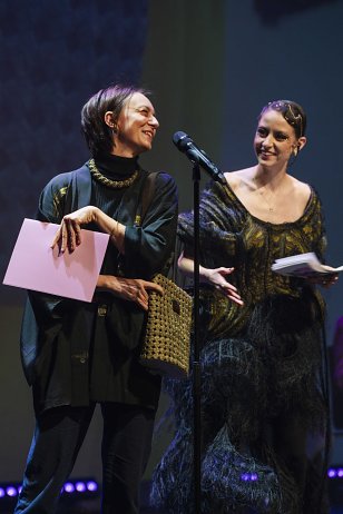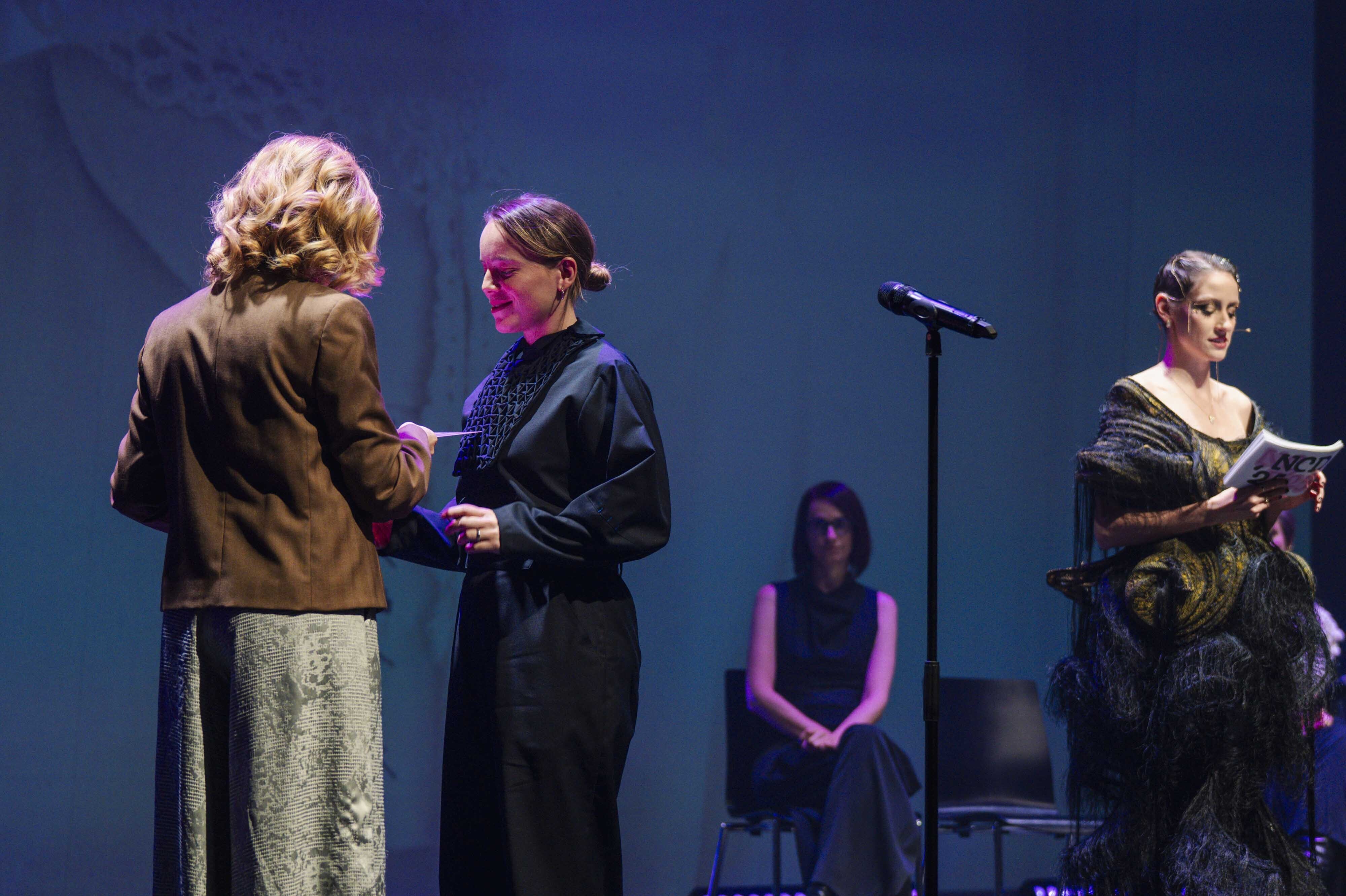 Galavečerom sprevádzala Barbara Jagušák, oblečená v modeli od Zuzany Vrábeľovej, ktorej tvorba skúma tenkú hranicu medzi telom a odevom. Prostredníctvom materiálových experimentov vytvára povrchy pripomínajúce kosť, kožu či perie a otvára otázky o tom, ako môže textil nadobúdať charakter organizmov alebo telesných štruktúr.