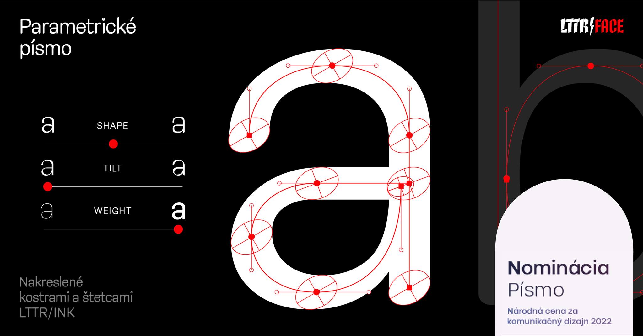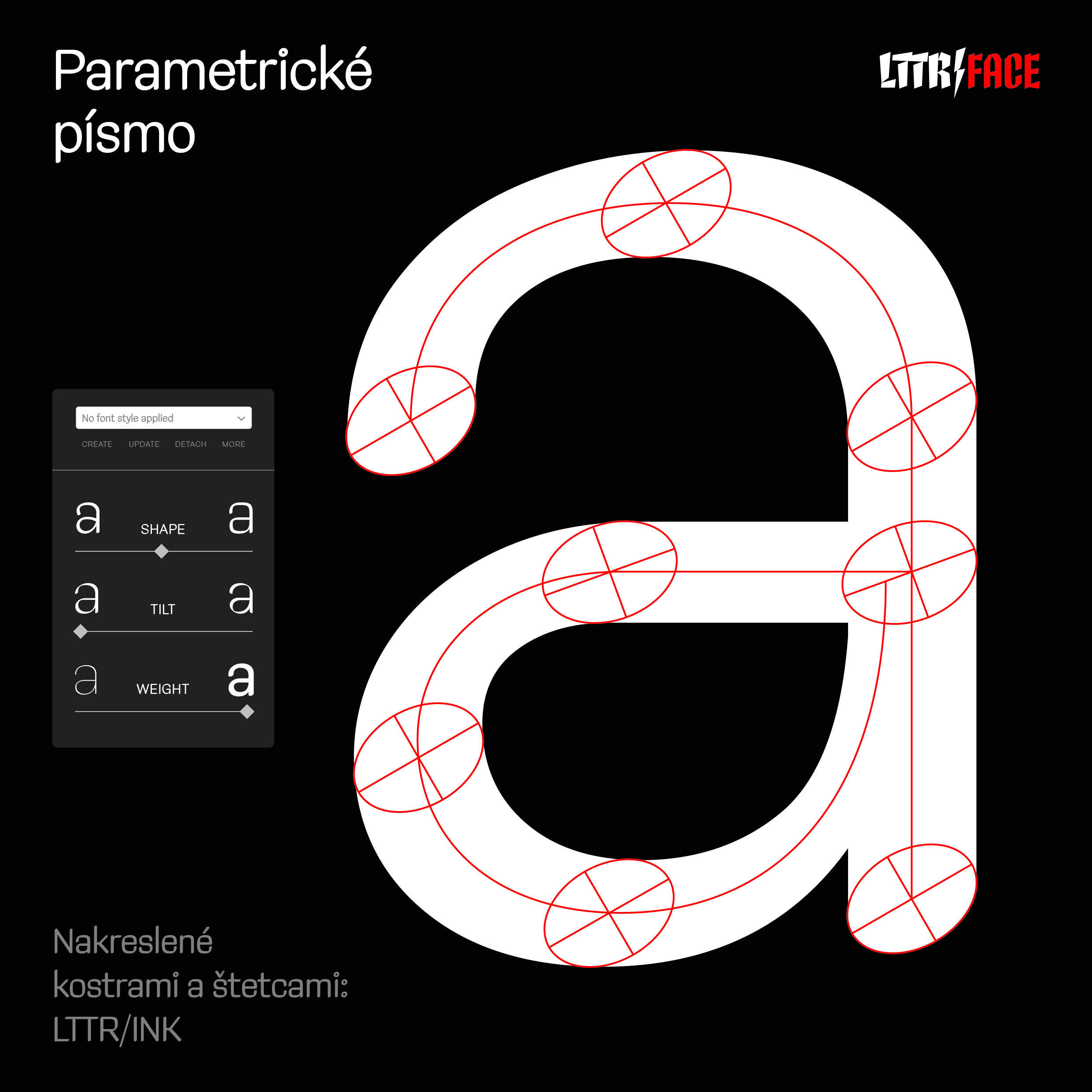 LTTR/FACE je prototyp parametrického písma, ktorý skúma možnosti a limity inovatívnej technológie vlastného nástroja LTTR/INK (lttrink.com) na kreslenie písmen prostredníctvom kostier a štetcov. Výsledkom je experiment umožňujúci flexibilne variovať zmeny medzi viacerými kostrami a parametrami ťahu jeho rotáciou a zmenou hrúbky. Písmo pozostáva z 3 variabilných osí (tvar / sklon / hrúbka), 18 mastrov a 155 znakov v každom fonte. Všetky inštancie písma zdieľajú rovnakú metriku, pri zmene parametrov tak nedochádza k zmene dĺžky textu. Cieľom LTTR/FACE je umožniť užívateľovi zvoliť adekvátny tón komunikácie v textovom aj nadpisovom použití. Realizáciu projektu podporil z verejných zdrojov formou štipendia Fond na podporu umenia.