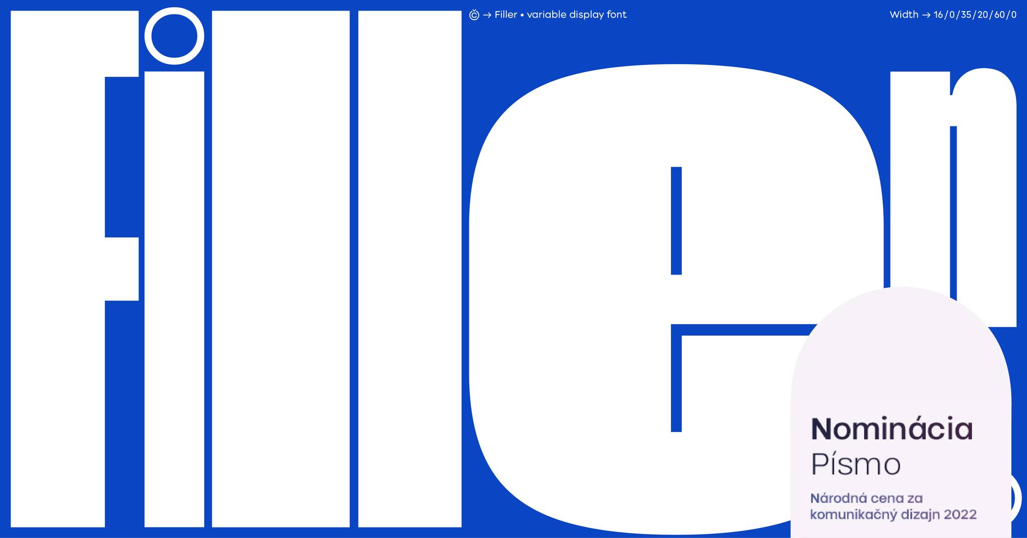 Filler je nadpisové variabilné písmo, umožňujúce flexibilne meniť šírkovú proporciu písmových znakov od extra úzkych až po extrémne široké tvary. Obsahuje kompletnú Latin jazykovú podporu s kontrastne nakreslenou diakritikou a interpunkciou. Súčasťou znakovej sady sú špeciálne symboly, ako je napríklad sada emotikonov alebo šípiek s podporou OpenType funkcií. Filler ponúka okrem variabilného fontu aj päť šírkových rezov – Compressed, Condensed, Medium, Extended, Expanded. Písmo bolo prezentované v podobe site-specific inštalácie na výstave Zoom on type v Galérii umenia Ernesta Zmetáka v Nových Zámkoch a je určené predovšetkým na výrazné nadpisové použitie vo veľkých proporciách.