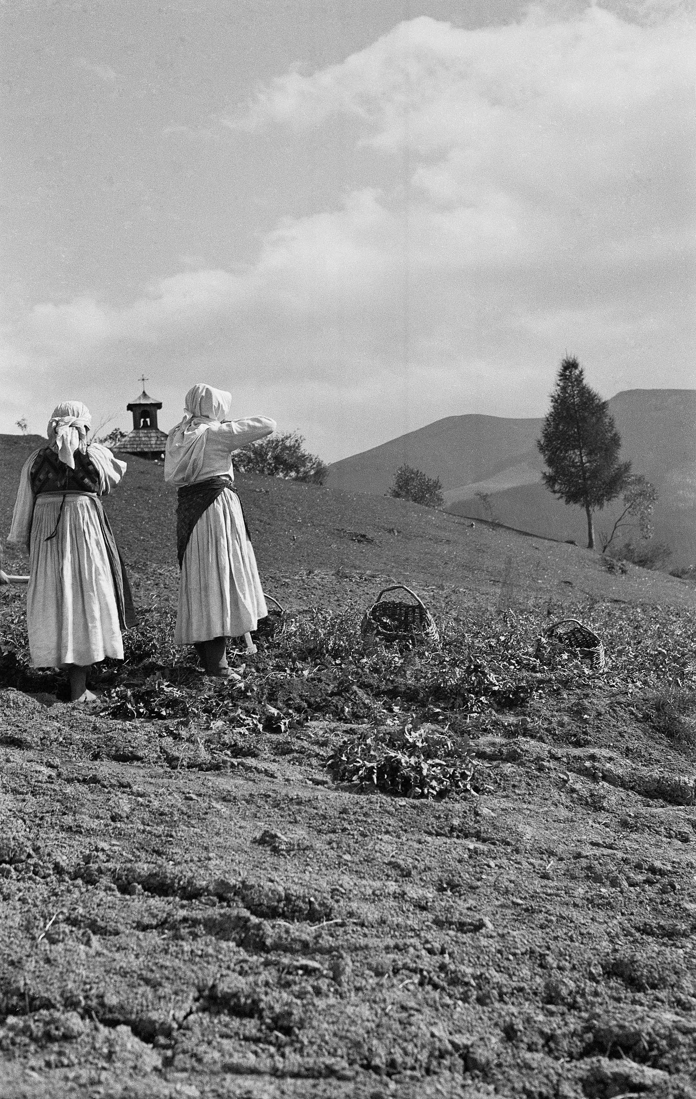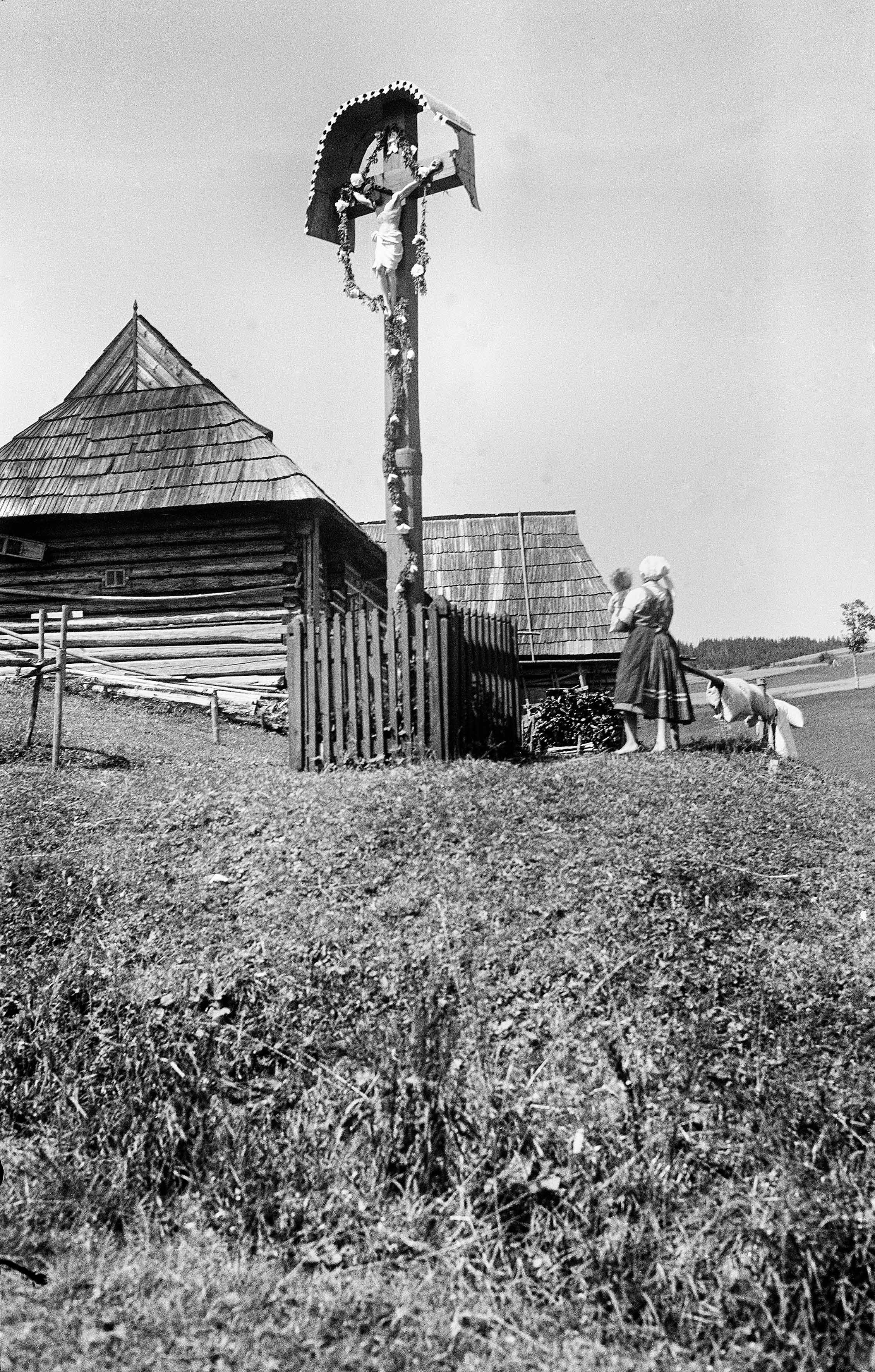 Keď Bazovský fotografuje ľudí, vyberá si podobne, pôsobia veľmi drsne, akoby boli ešte z 19., a nie z 20. storočia, ale sú v súlade so svojím prostredím a málo úrodnou pôdou. Bazovského nezáujem o prvoplánovú malebnosť je zrejmý aj tu, ľudia sú oblečení všedne, nie sú krojovaní, resp. ak je kroj použitý, tak nie sviatočný, ale jeho každodenné pracovné varianty. Samotné ľudské postavy sú na krajinnom pozadí komponované ako významové pointy; okrem toho tvoria mierku snímaného priestoru. Zvieratá tiež nie sú súčasťou stáda, „božie hoviadka“ vidíme skôr ako výrazné individuality, ktoré si sem-tam nevzrušene premeriavajú fotografujúceho maliara. V niektorých kompozíciách tvoria spolu s rebrinákom akúsi os sveta, iného než ten obvyklý, ľudský.