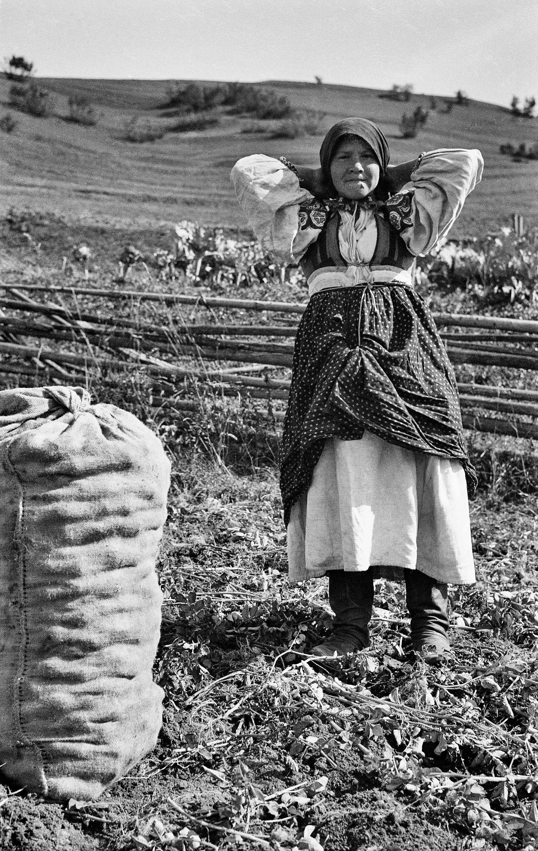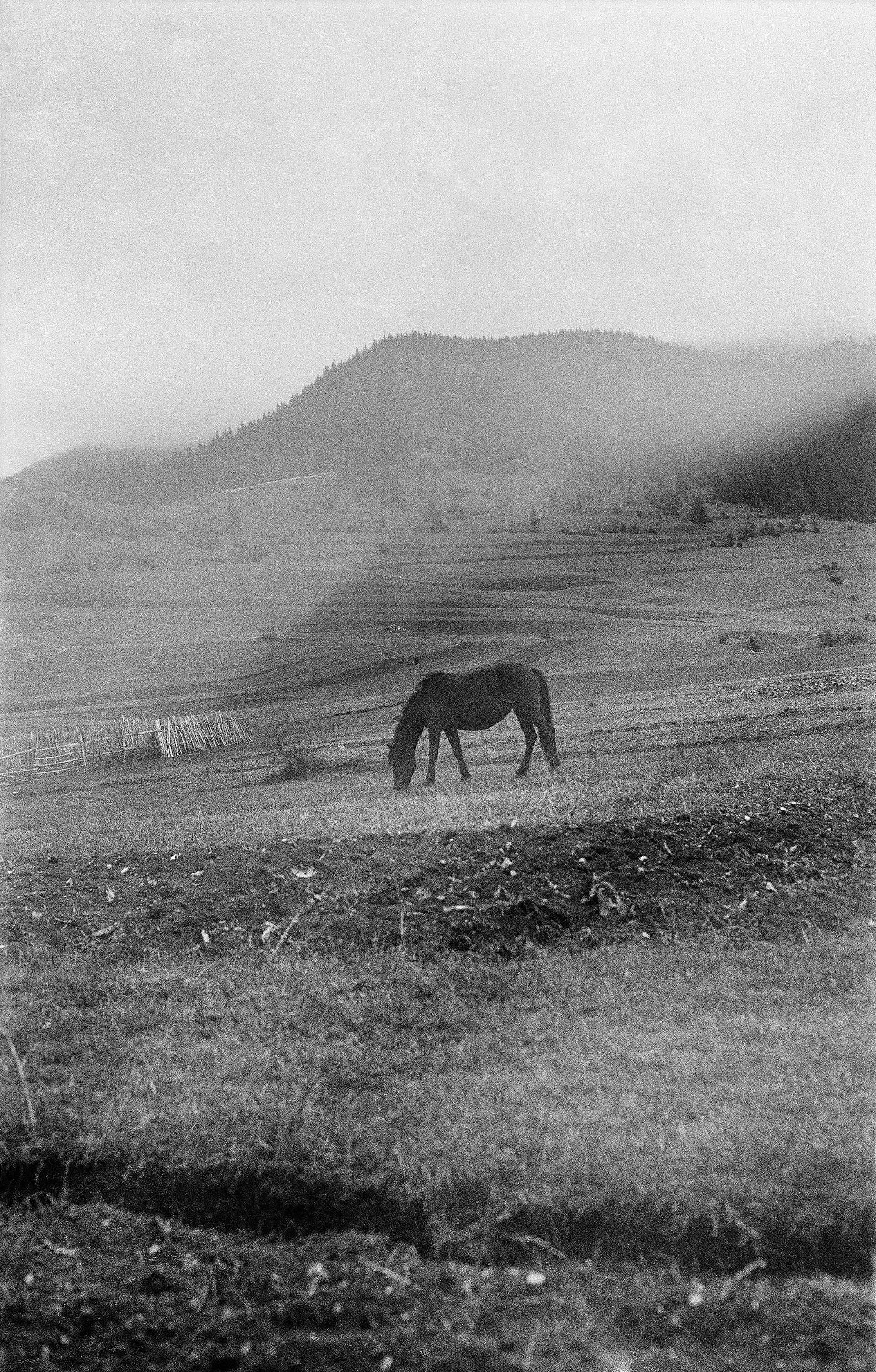 Veľká väčšina záberov, týkajúcich sa krajiny a pôsobenia ľudí v nej, sa vyznačuje zvláštnou, atypickou kompozíciou, ktorá v našej fotografii nemá obdobu, postavenou na vertikálnom vychýlení kompozičného ťažiska. Možno povedať, že buď počítal s kompozičnou paralaxou (rozdiel medzi výrezom skutočnosti v hľadáčiku fotoaparátu a výrezom skutočnosti na skutočnej snímke), alebo si ju jednoducho nevšímal ako čosi nepodstatného. Vo významnej časti fotografických záberov je ťažiskový výjav odsunutý akoby viac dozadu, aby tak vynikla štruktúra širokej plochy zeme, ktorá ho zaujímala rovnako ako reliéf samotnej krajiny. Fotografia sprostredkováva všetky detaily bohatej štruktúry rôznych prírodných povrchov – neusporiadané, zoschnuté býlie a chrastie, hrudy a kamenie, sneh pomiešaný s hlinou a iné, často neurčité stavy tohto existenčného základu. Niekedy je vôbec ťažké odlíšiť obrábanú a neobrobenú pôdu. Žiadne Švajčiarsko! Tieto obrazy ho nezaujímajú v prvom rade ako výraz chudoby, či metafora ťažkého života, jeho záujem je skôr výtvarne štrukturálny. To ostatné vniká do nich akosi samovoľne.