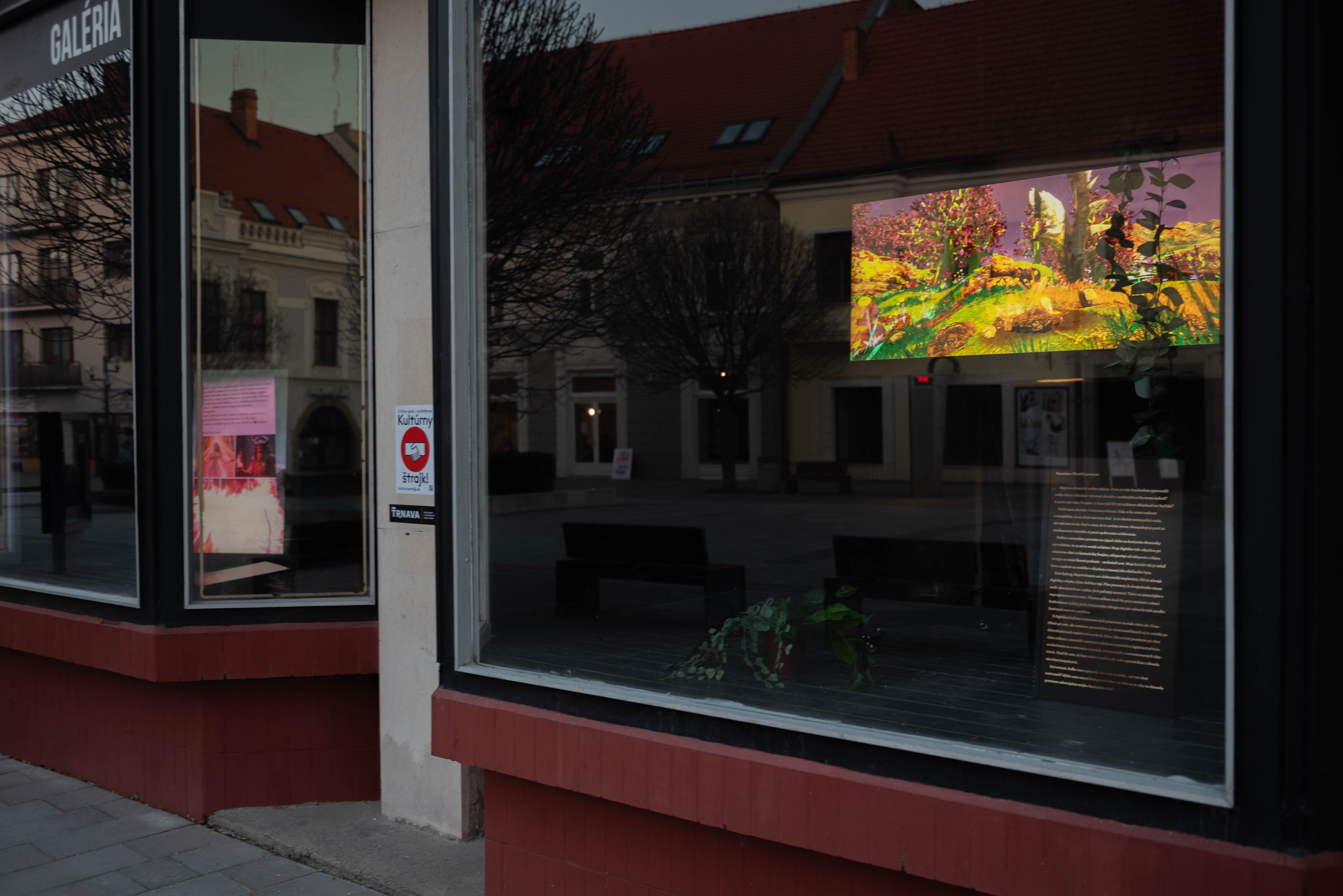 Lukáš Sobota (1996) je absolventom Katedier intermédií a grafiky na VŠVU v Bratislave. V umeleckej praxi vychádza zo záujmu o digitálne prostredie, 3D animáciu, hernú estetiku a o prepájanie popkultúry s politickým a „identitným naratívom“ v rámci širších socio-politických kontextov a ich dopadov. Jeho autorské prístupy sa posledné roky začali pretavovať najmä do priestorových realizácií v podobe objektov a inštalácií, ktorých súčasťou je i virtuálne prostredie tvorené pomocou 3D animácie. Tá sa však postupne začala stávať dominantnejšou vo vzťahu k fyzickej/materiálnej časti jeho diel. Tak je tomu i pri intervencii vo výkladoch galérie, ktorých environment tvorí zoskupenie štyroch videí/animácií doplnených artificiálnym rastlinstvom.