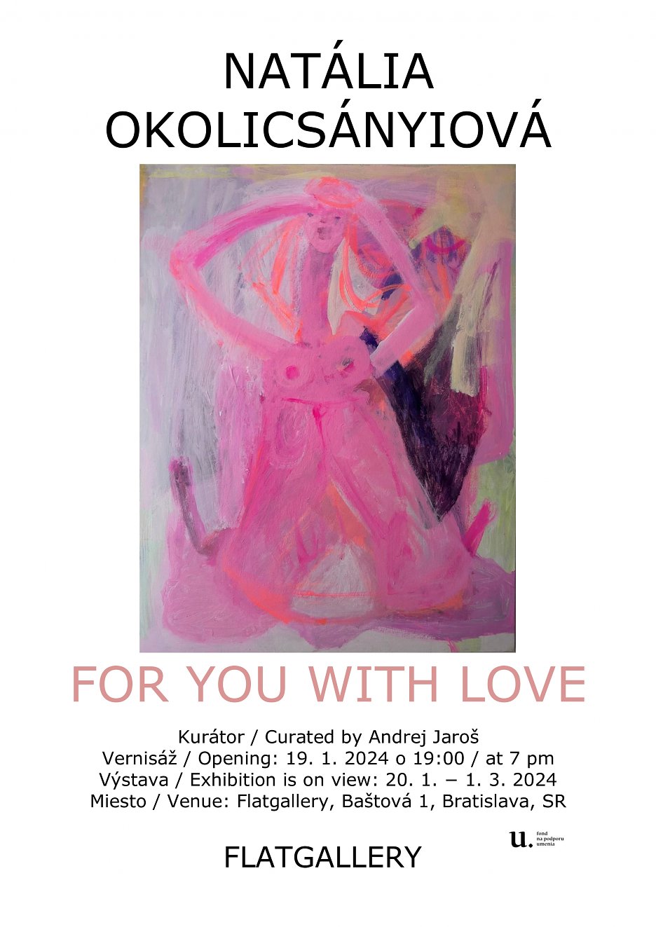 Realizáciu diel a výstavy autorky Natálie Okolicsányiovej z verejných zdrojov formou štipendia podporil Fond na podporu umenia. / The realization of the Works and the Exhibition of the author Natália Okolicsányiová from public sources in the form of a scholarship was supported by the Slovak Art Council.