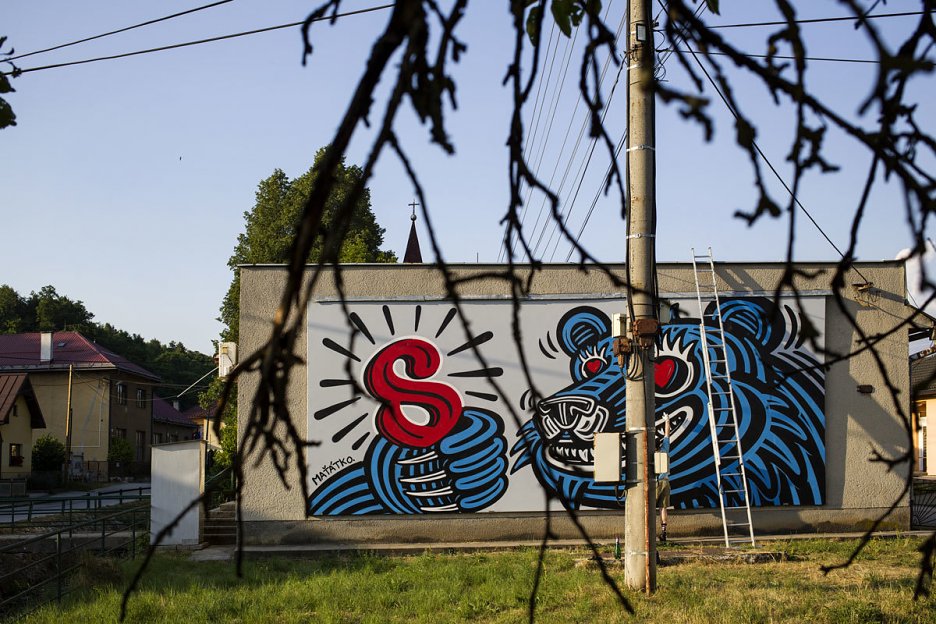 Matúš Maťátko využíva iróniu sebe vlastnú na upriamenie pozornosti k téme, ktorá až neprimeraným spôsobom hýbe letným Slovenskom. Každá nová senzácia viac a viac rozdeľuje obyvateľov. Ste za medveďa, alebo za ľudí? Pýtajú sa nepriamo senzačné titulky. Pri nedávnom pobyte v Izraeli sa Matúš naživo stretol s nevraživosťou, ktorú spôsobuje dlhé roky trvajúci spor o územie a možno o to viac teraz apeluje na náš nadhľad a odstup. Medveď sa na nás škerí, ale nie je to vrčanie dravca, je to skôr ironický úškrn veľkého tvora pozerajúceho sa na ľudské mravenčenie pod sebou. Medveď je v mnohých rozprávkach ťarbavým dobrákom obťažujúcim akurát tak včely a pastieri v minulosti dobre vedeli, že nie každý medveď je nebezpečný, napríklad niektorých volali mravenčiar - ten, čo žerie mravce. Nad Matúšovým obrazom hore na stráni sú viaceré rozhrabané mraveniská a na lesnej ceste do Medvedínca je často vidieť medvediu stopu v blate. Ľudia odjakživa medveďa spomínajú, aj sa ho obávajú. Matúšov obraz však chce upozorniť najmä na to, že dnes nám akoby chýbal humor, keď sa snažíme ostatných presvedčiť o svojej pravde. Skúsme sa na svet pozrieť aj z medvedej perspektívy a hľadať dialóg aj tam, kde sa nám zdá nemožný.