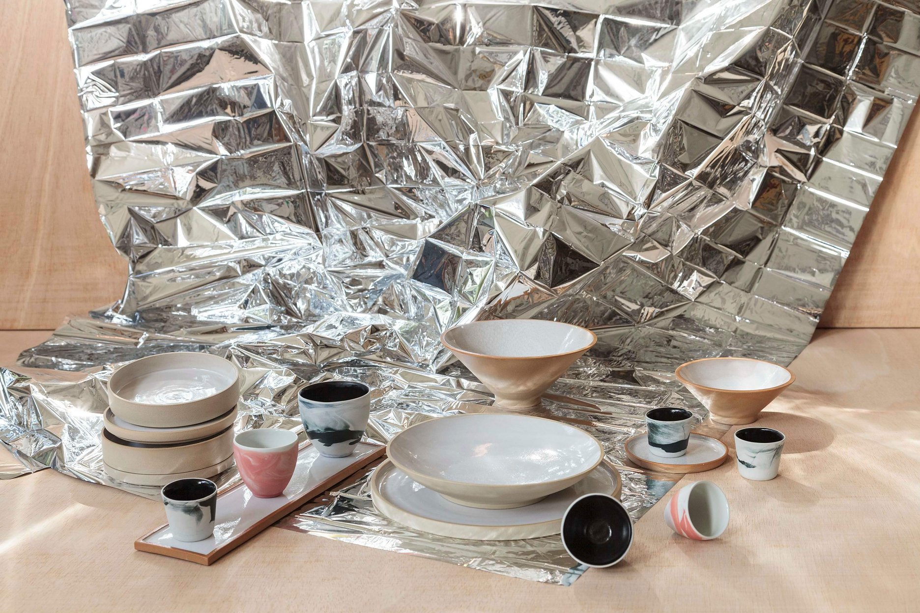 Kolekcia stolovania, ktorá spĺňa náročné podmienky reštauračnej prevádzky. Tvarové riešenia vychádzajú z potrieb klienta, aby prakticky a esteticky dopĺňali menu tvorené v modernom ázijskom štýle. Autorky volili kombináciu keramických materiálov a techník, ako liatie do sadrových foriem a točenie na kruhu, a to všetko z vysoko pálenej kameniny, ktorá odoláva aj priemyselným umývačkám riadu. Ak by sa aj poškodil, odbité časti budú znova preglazované a opravené riady opätovne zaradené do prevádzky, pričom oprava bude viditeľne priznaná. Farebnosť kolekcie sa pohybuje v zemitých odtieňoch hlín. Vnútra sú glazované originálnou bielou polevou, ktorá bola vyvinutá špeciálne pre zákazníka. Výnimkou je nápojová časť súpravy realizovaná technikou mramorovania, ktorá tvorí farebný akcent.
