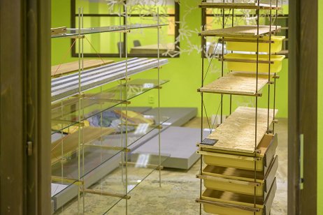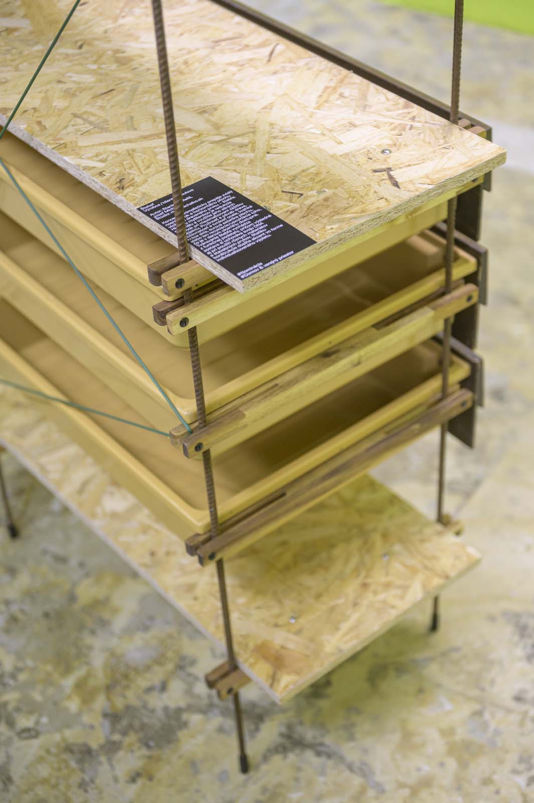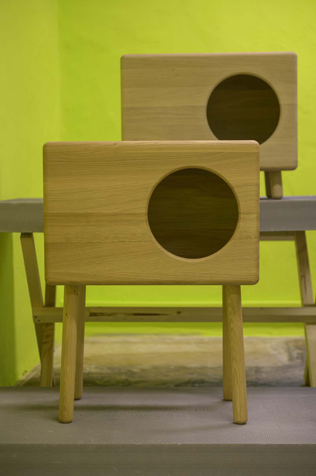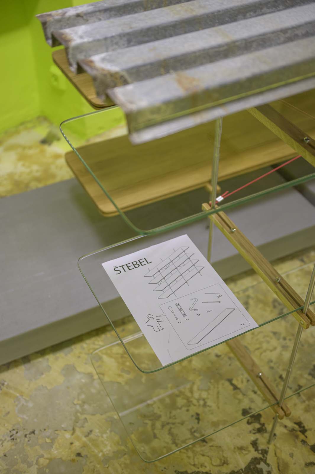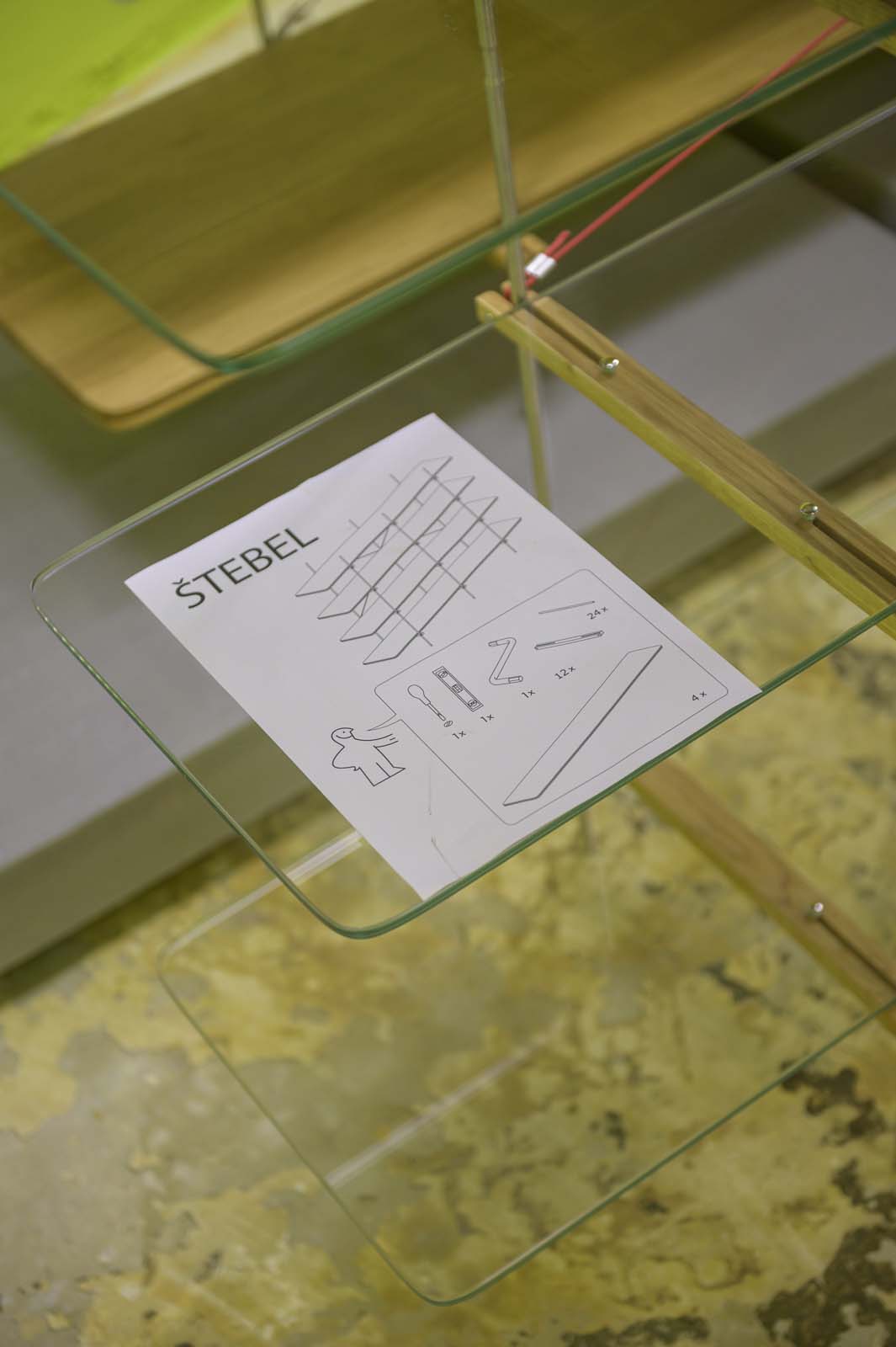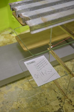 Koncept minimalisticky prepája zvislý nosný prvok a horizontálnu plochu vložením dreveného prvku – štebľa. Hlavnou myšlienkou je redukcia materiálu a využitie jeho silných stránok pri maximalizovaní zážitku z objektu. Pružnosť a pôvab dreva, húževnatosť a tvrdosť ocele, krehká krása skla, surová estetika plechu, alebo len recyklácia/upcyklácia toho, čo je v danom okamihu dostupné. Tvarovanie štebľa vychádza z funkčnej podstaty, pričom výsledná zostava si uchováva svoju DNA aj pri použití rôznych materiálov a stavebných prvkov. Statiku konštrukcie dopĺňa akcent vo forme individualizovaného výpletu.
