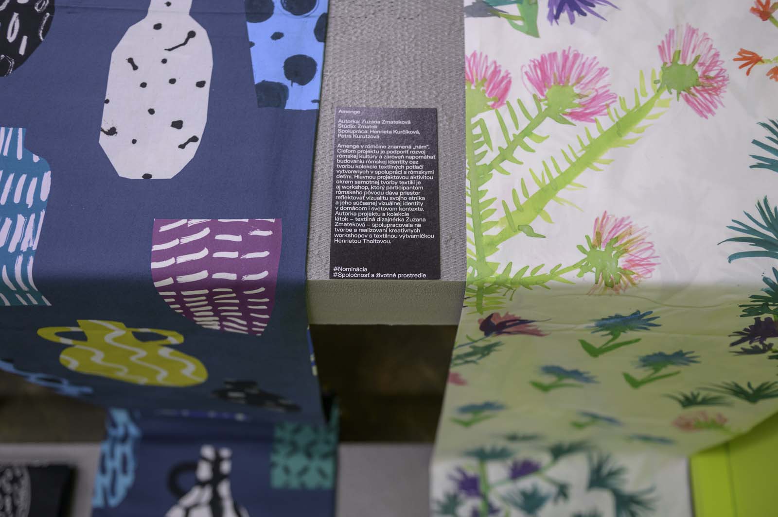 Amenge v rómčine znamená „nám“. Cieľom projektu je podporiť rozvoj rómskej kultúry a zároveň napomáhať budovaniu rómskej identity cez tvorbu kolekcie textilných potlačí vytvorených v spolupráci s rómskymi deťmi. Hlavnou projektovou aktivitou okrem samotnej tvorby textílií je aj workshop, ktorý participantom rómskeho pôvodu dáva priestor reflektovať vizualitu svojho etnika a jeho súčasnej vizuálnej identity v domácom i svetovom kontexte. Autorka projektu a kolekcie látok – textilná dizajnérka Zuzana Zmateková – spolupracovala na tvorbe a realizovaní kreatívnych workshopov s textilnou výtvarníčkou Henrietou Tholtovou.