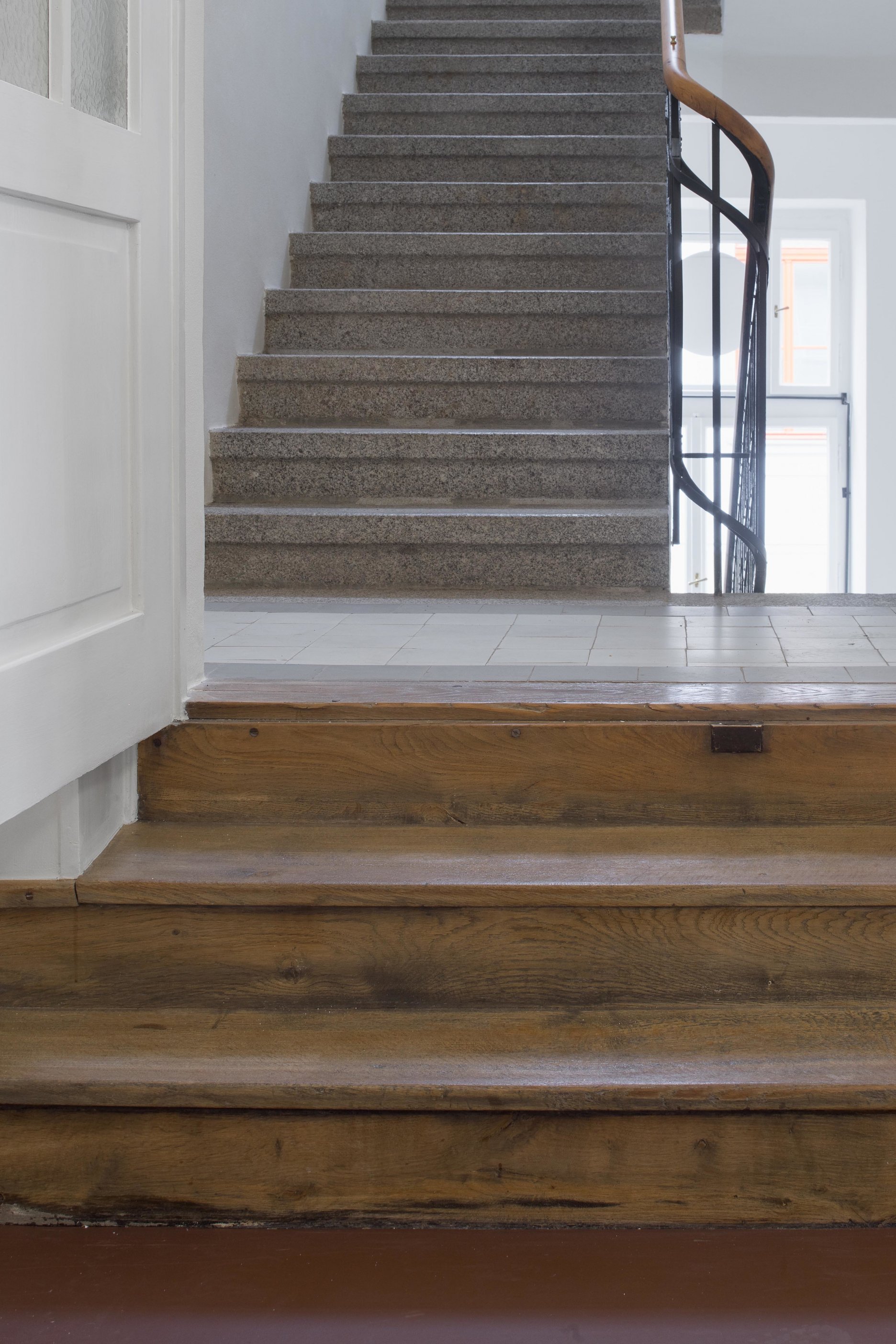 Naopak, prevažná časť pôvodných prvkov bola zreštaurovaná (schodiská, dvere, okná, zábradlia, nápisy na fasáde, zámočnícke prvky, obklady, dlažby, dobové umývadlá). Chýbajúce prvky (svietidlá, zásuvky a vypínače, umývadlá, batérie, klozety...) boli vybrané s ohľadom na historický kontext. Súčasťou komplexnej prestavby suterénu bolo osadenie presklených dverí, ktoré umožňujú presvetliť kedysi nevľúdne chodby.