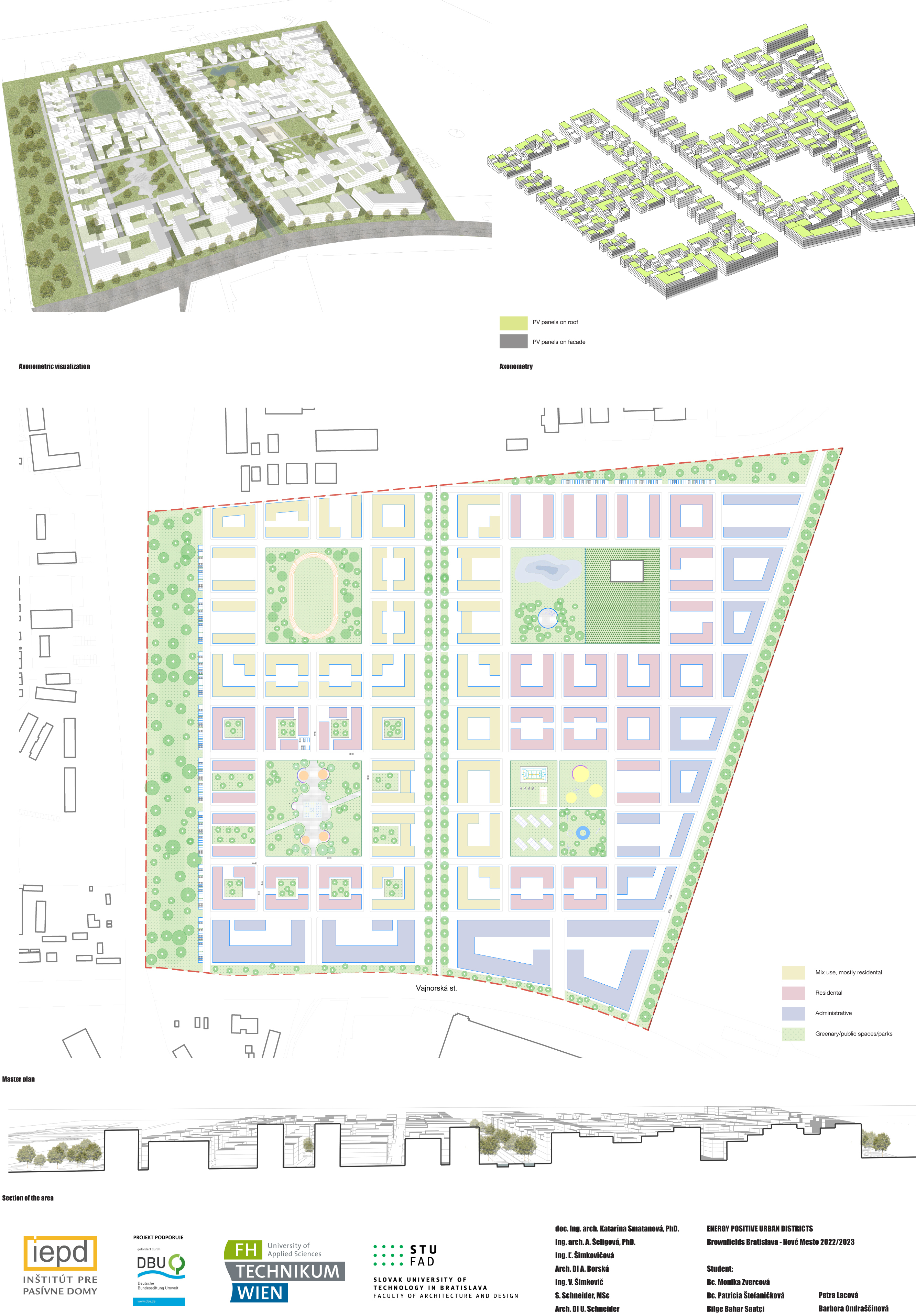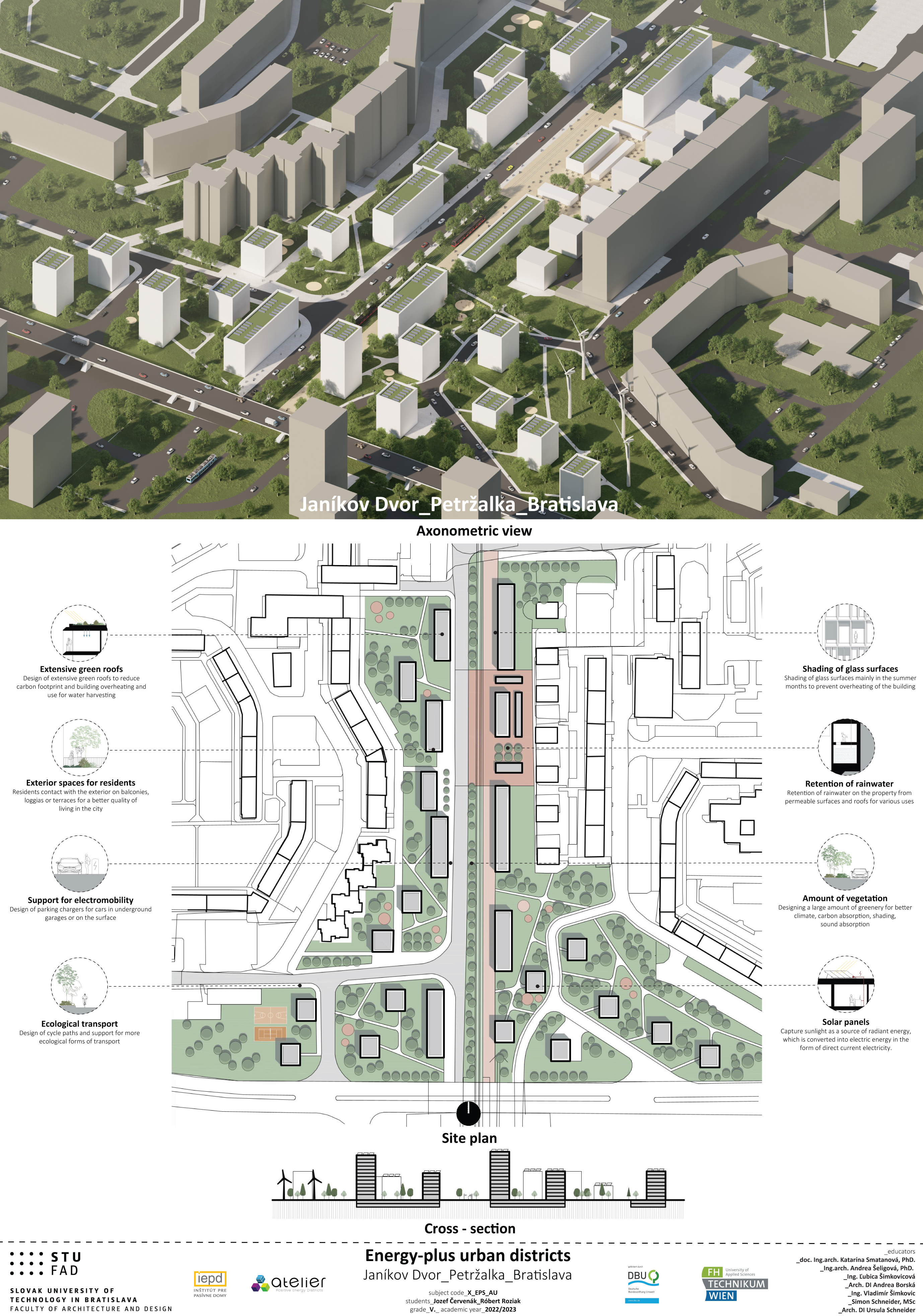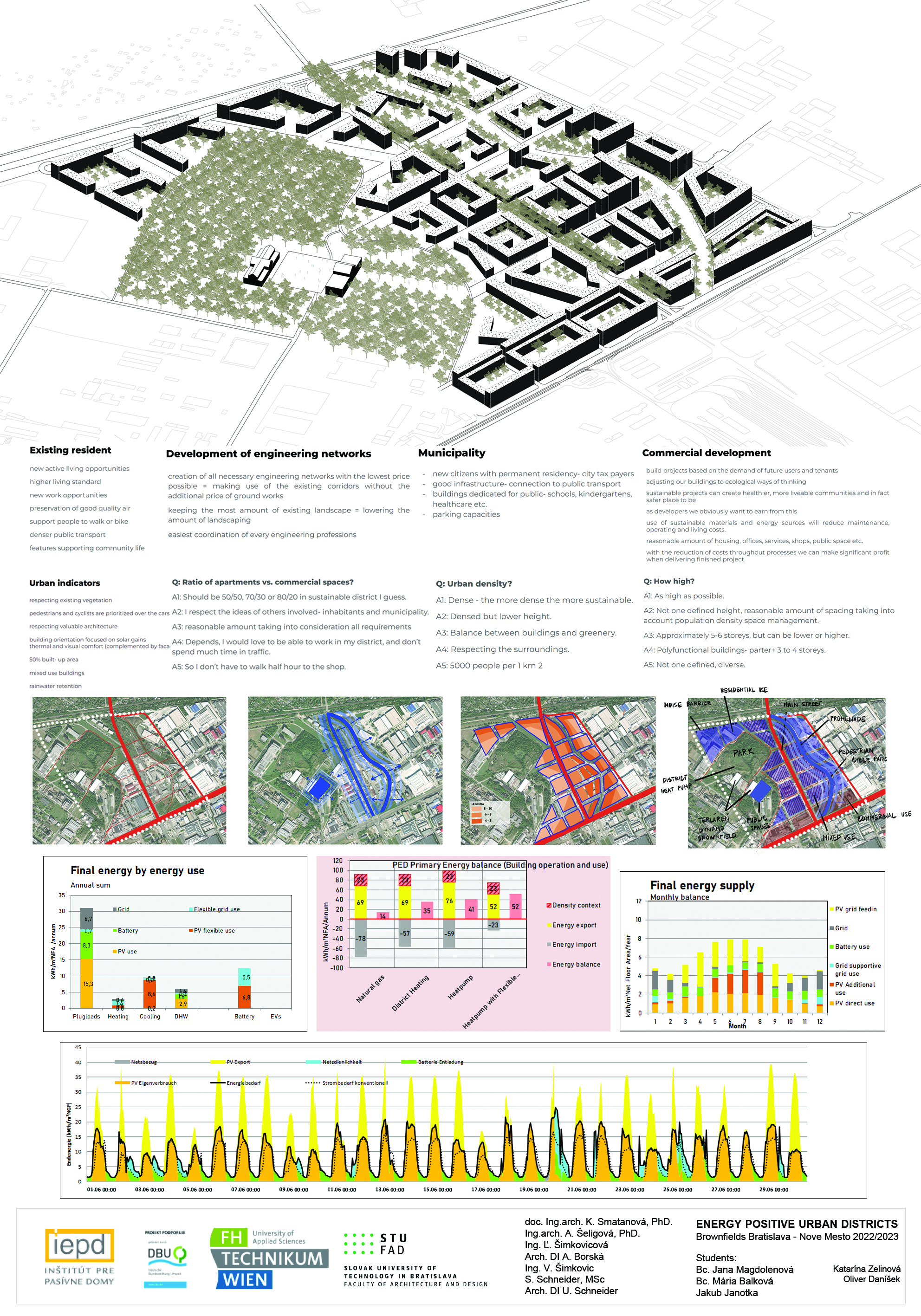 Záverečná prezentácia a hodnotenie študentských projektov ukázali rôznorodosť návrhov a tvorivosť, ktorej sa ani pri navrhovaní energeticky plusových štvrtí medze nekladú. Porotu tvorili pedagógovia predmetu, vedúca Ústavu urbanizmu a územného plánovania FAD STU doc. Ing. arch. Katarína Smatanová, MA, PhD., výskumný pracovník FHT Simon Schneider, MSc., architektka DI Ursula Schneider z POS architekten a odborníci z Inštitútu pre pasívne domy Ing. Ľubica Šimkovicová, DI Andrea Borská a Ing. Vladimír Šimkovic.