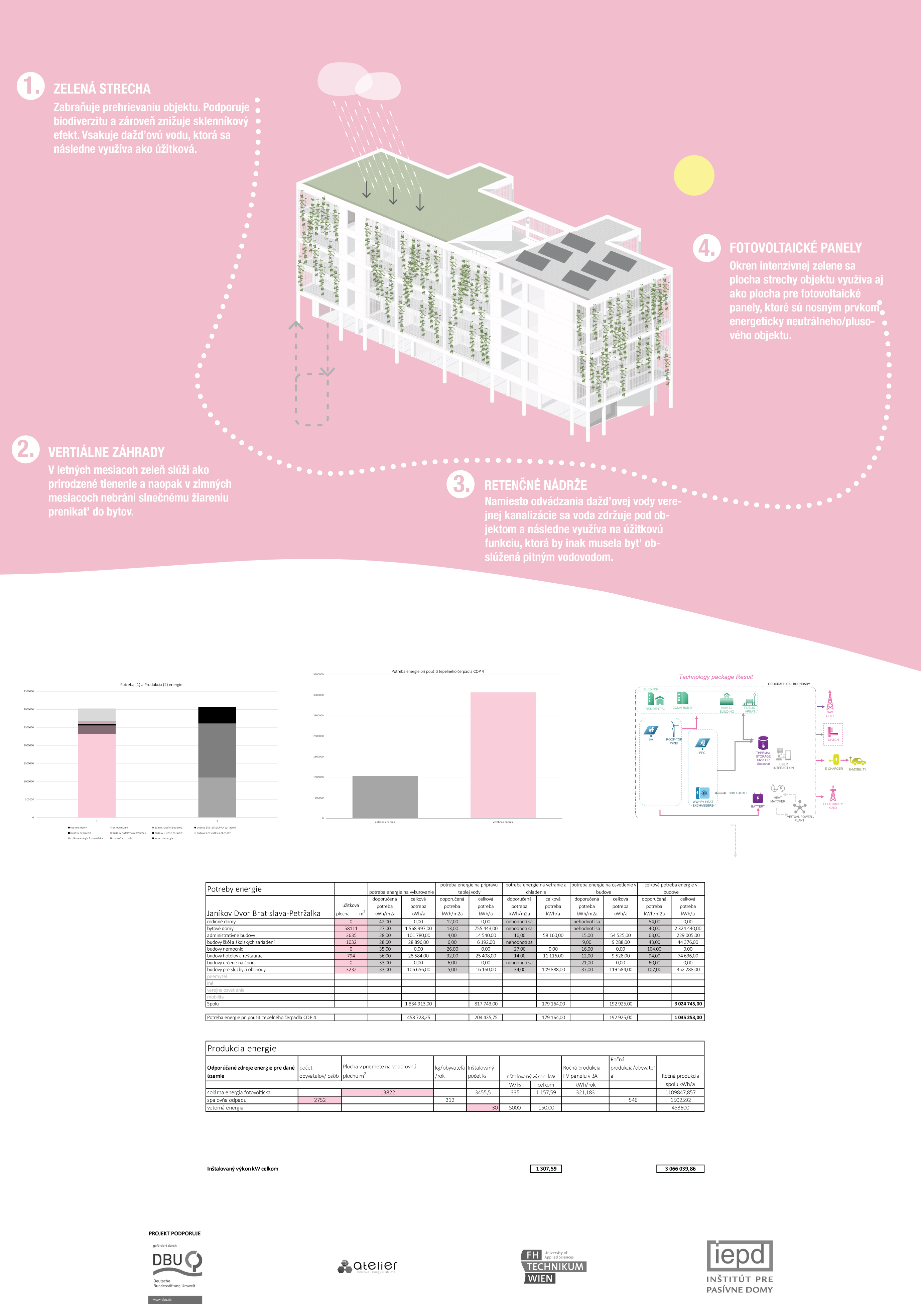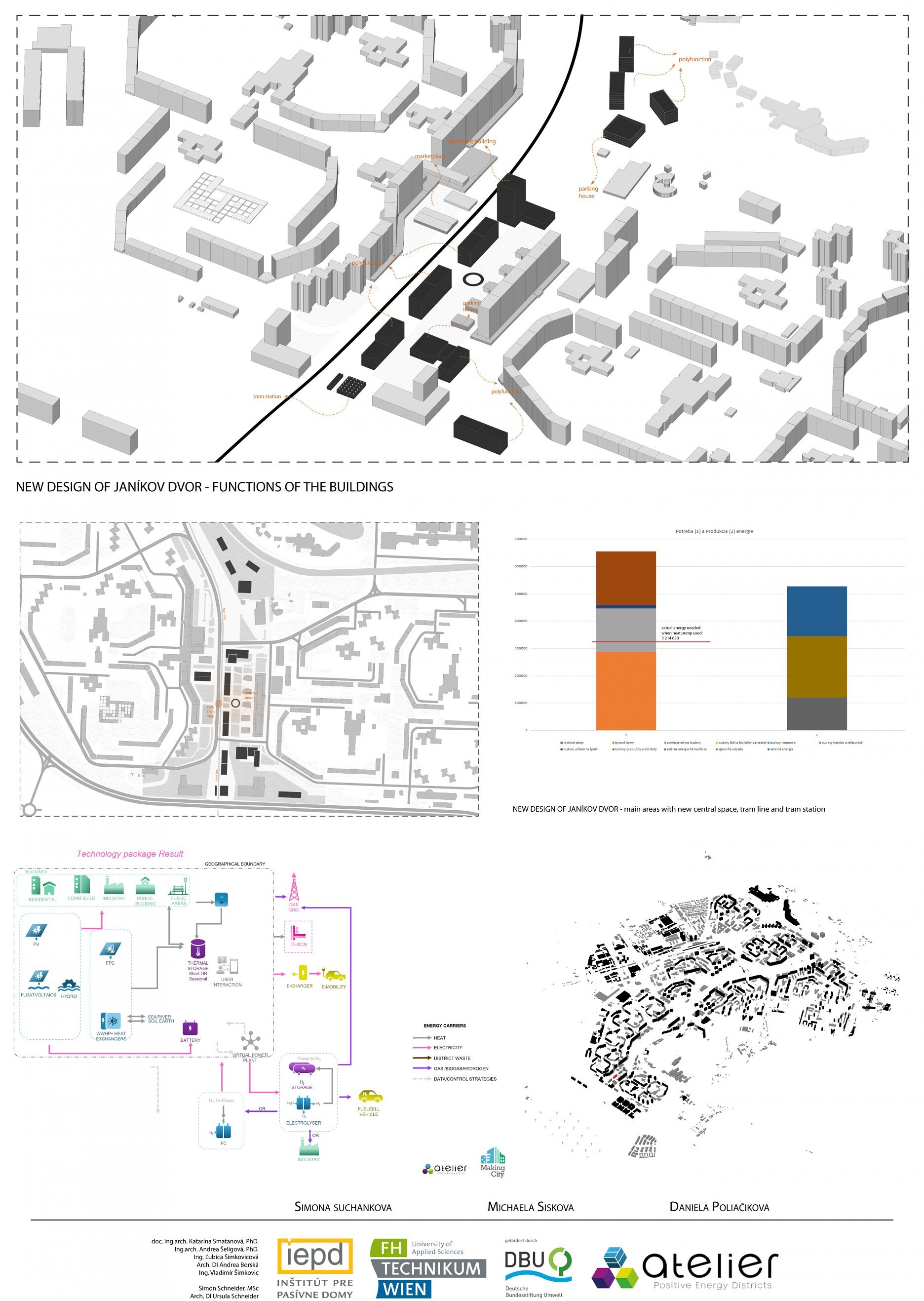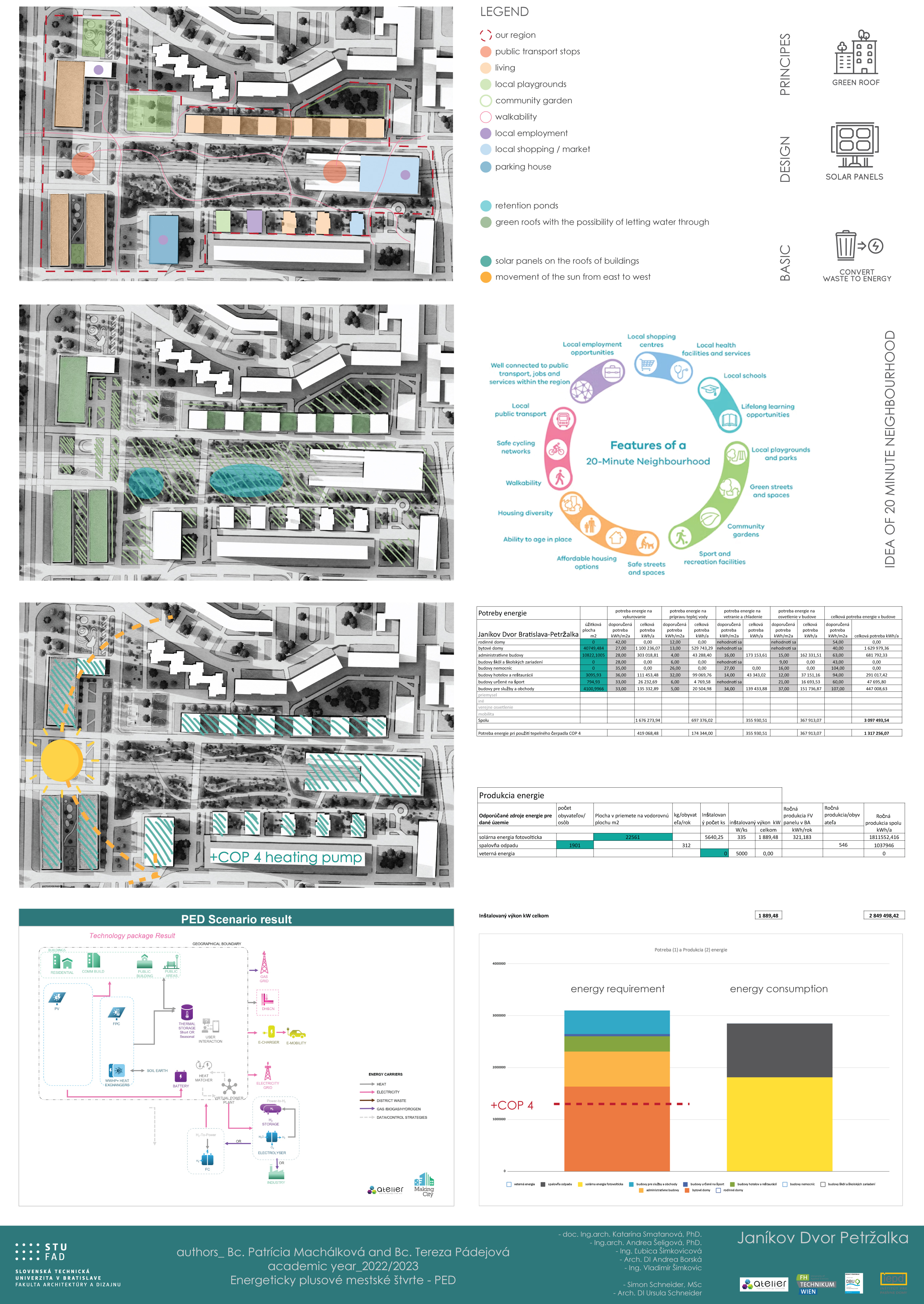 Úlohou študentov a študentiek bolo vytvoriť architektonicko-urbanistickú štúdiu, energetický koncept a využiť nástroj na kvantifikáciu energetických tokov. Na návrhoch pracovali v tímoch a cieľom bolo prispieť ku komplexnejšiemu a podrobnejšiemu pochopeniu témy. V prvom rade je potrebné uvažovať nad širším kontextom a brať do úvahy princípy PED od prvej skice, na začiatku procesu navrhovania. Dobrou pomôckou a monitorovacím nástrojom im bola tabuľka s tokom energie v okolí.