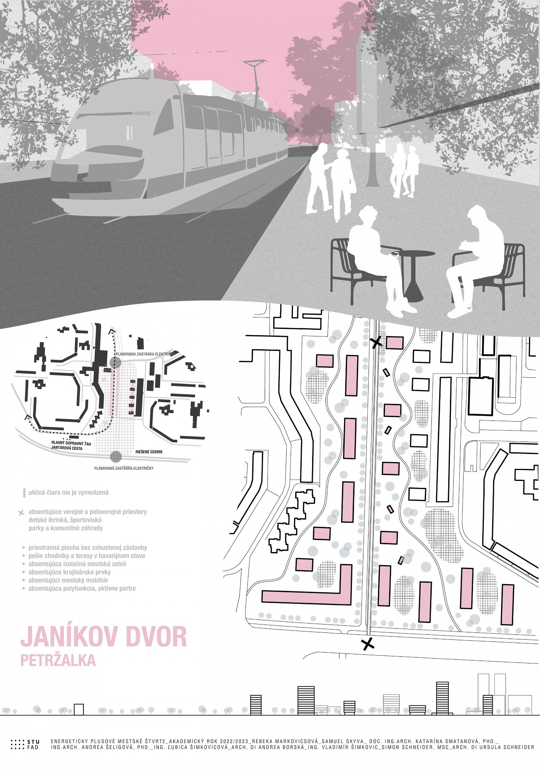Spracovaným územním v 1. semestri (2022/23) bol „Janíkov Dvor“ s rozlohou približne 10 ha. Ide o nezastavaný priestor medzi dvoma časťami sídliska na juhu Petržalky, najväčšieho stredoeurópskeho panelového sídliska. Cez stred riešeného územia je vedená trasa električky, ktorá je vo výstavbe.