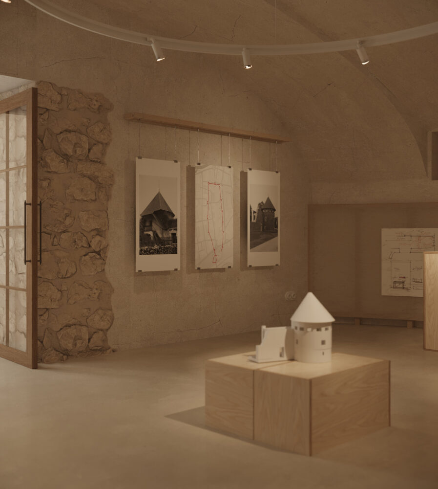 Návrh rešpektuje surovosť historickej stavby, pričom nová vrstva do nej vstupuje jemne a bez narušenia pôvodného charakteru. Zachované murivo dopĺňajú ľahké, rozoberateľné a reverzibilné prvky, ktoré je možné kedykoľvek premiestniť alebo úplne odstrániť.