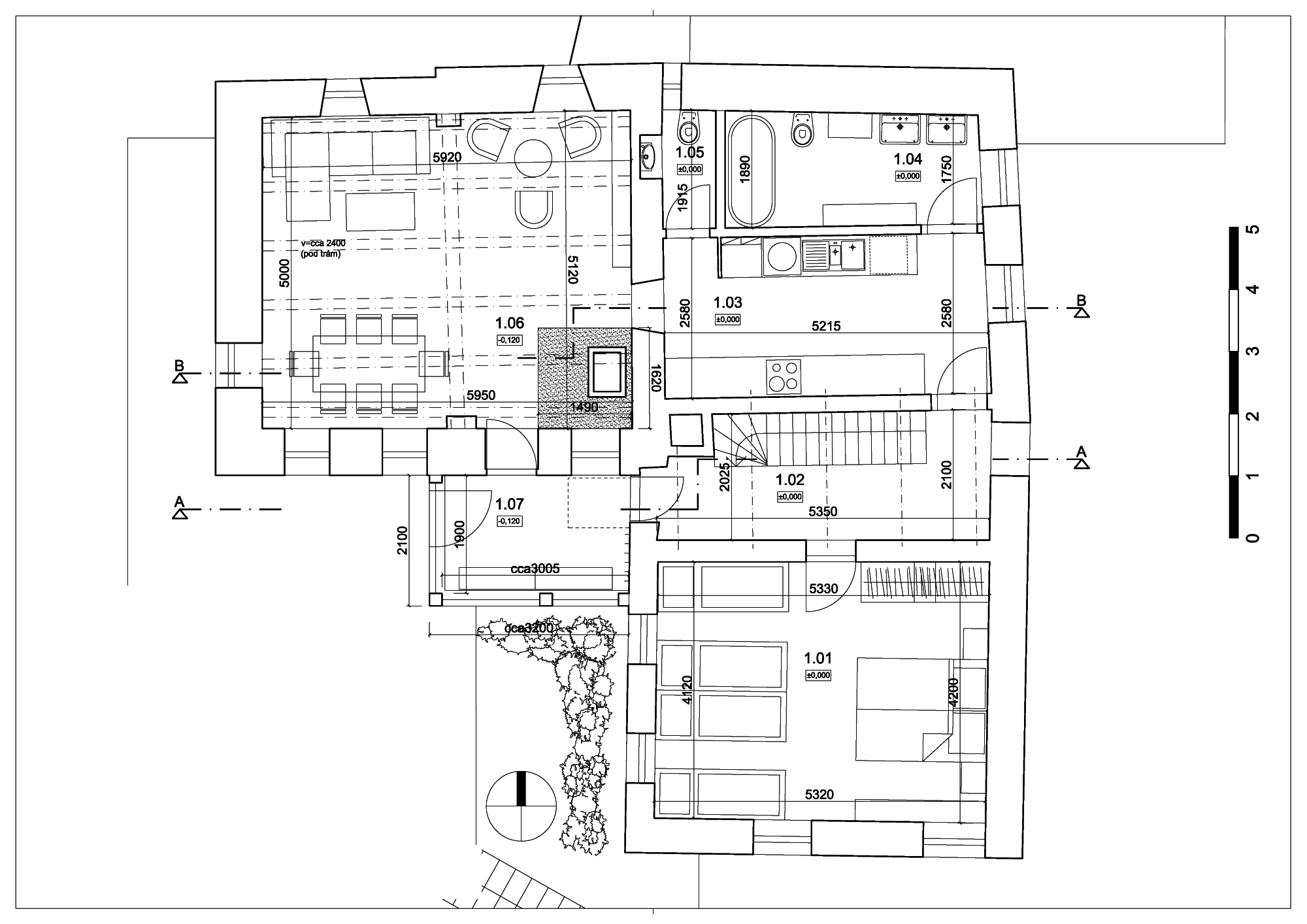 Prízemie a podkrovie boli adaptované na využitie pre viacpočetnú rodinu s deťmi, pridaná bola veranda ako vstupný energetický medzipriestor s využitím akumulácie zo slnečnej energie. O tepelnú a pobytovú pohodu sa stará akumulačná pec na tuhé palivo.