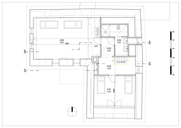 Rozľahlý historický objekt v pamiatkovej rezervácii bol rozdelený na dva samostatné celky, tento projekt rieši časť, určenú pre rekreačné využitie.