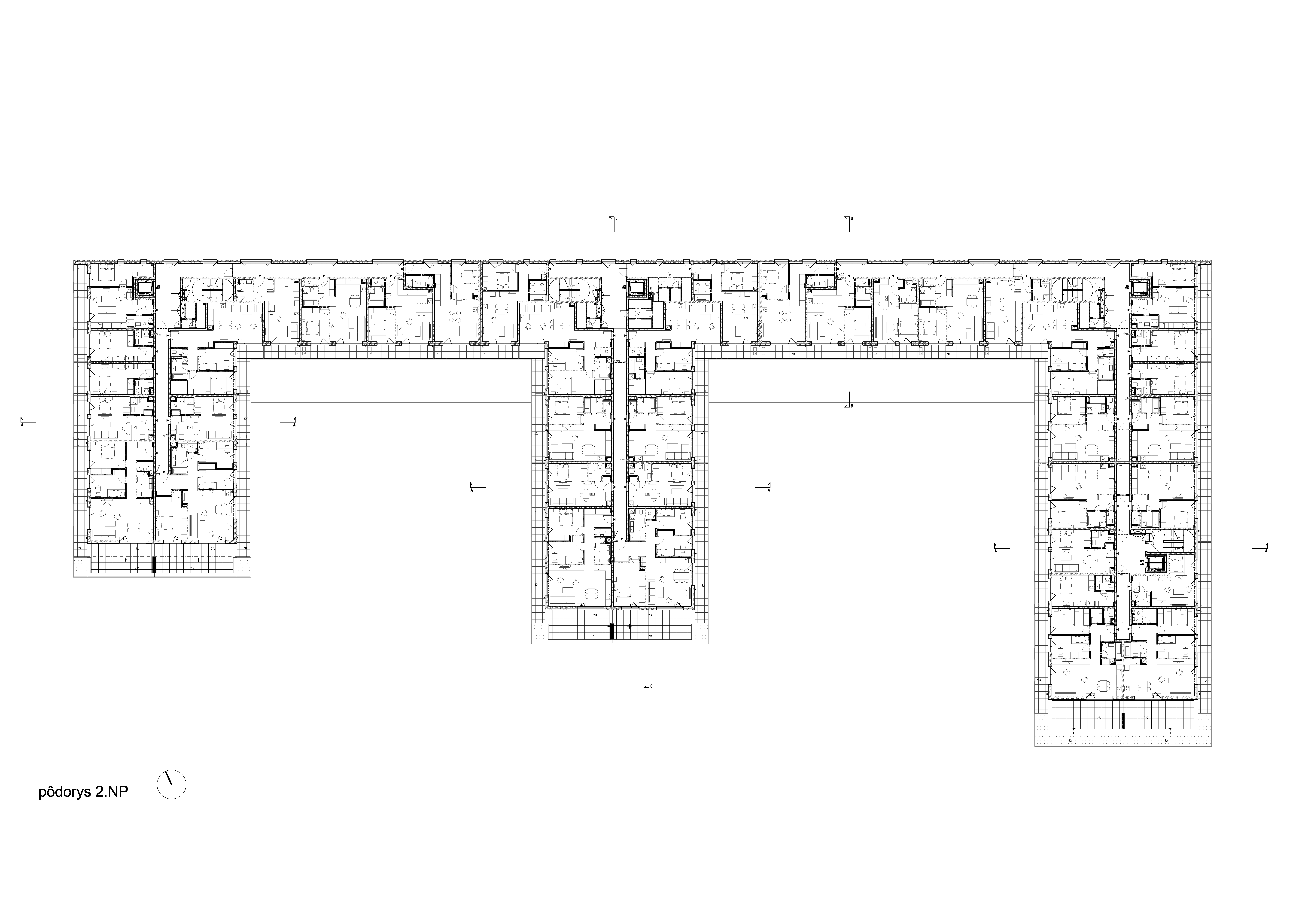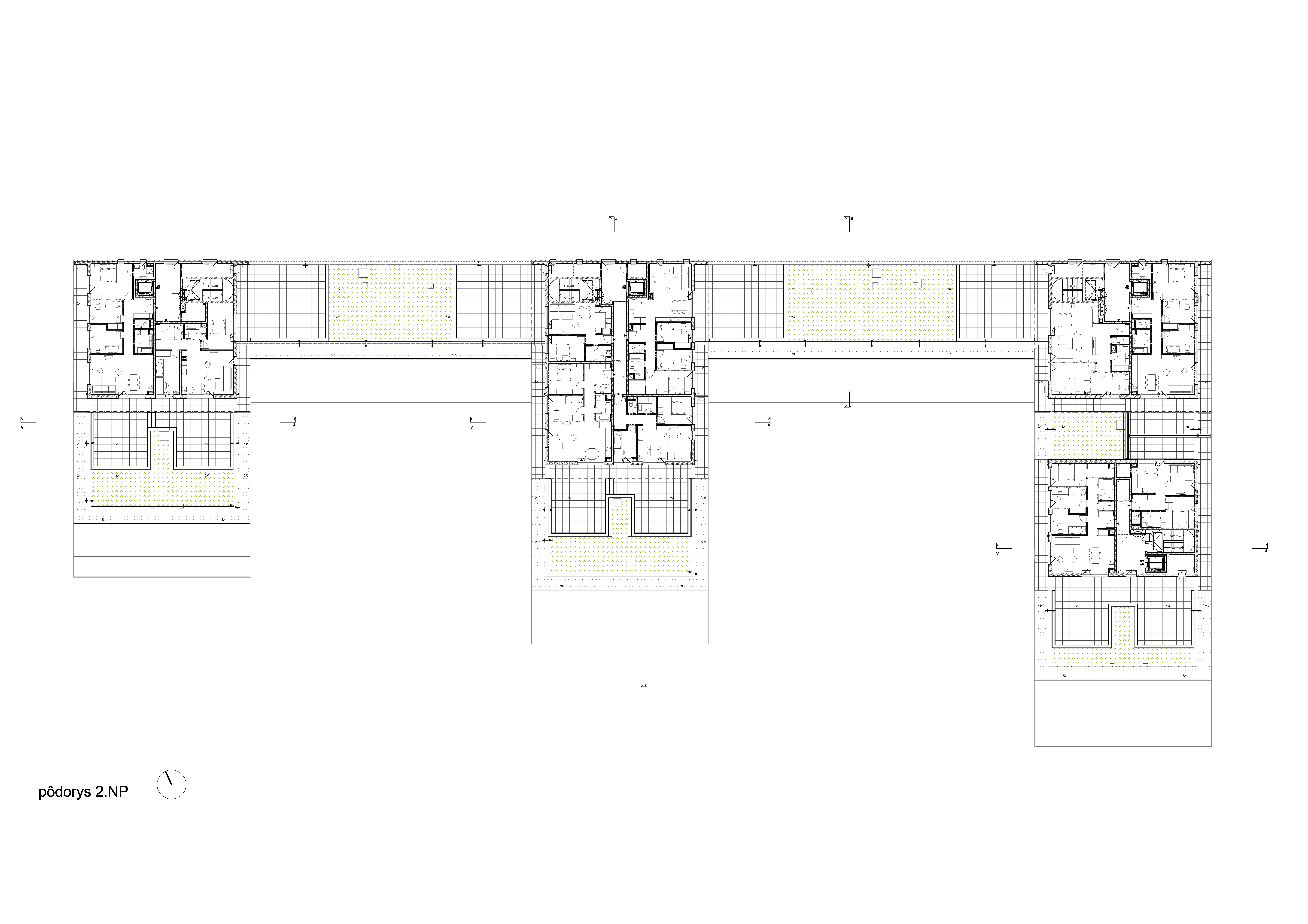 Dispozícia bytových a apartmánových domov sa odvíja od vertikálnych a horizontálnych komunikačných jadier. Inštalačné jadrá a rozvody sú vedené pri centrálnom komunikačnom jadre a chodbách. Byty a apartmány svojím rozmiestnením na podlažiach sledujú výhľadové podmienky a orientujú hlavné obytné miestnosti do voľného exteriérového priestoru. Na tento princíp nadväzuje aj rozmiestnenie balkónov a lodžií.
