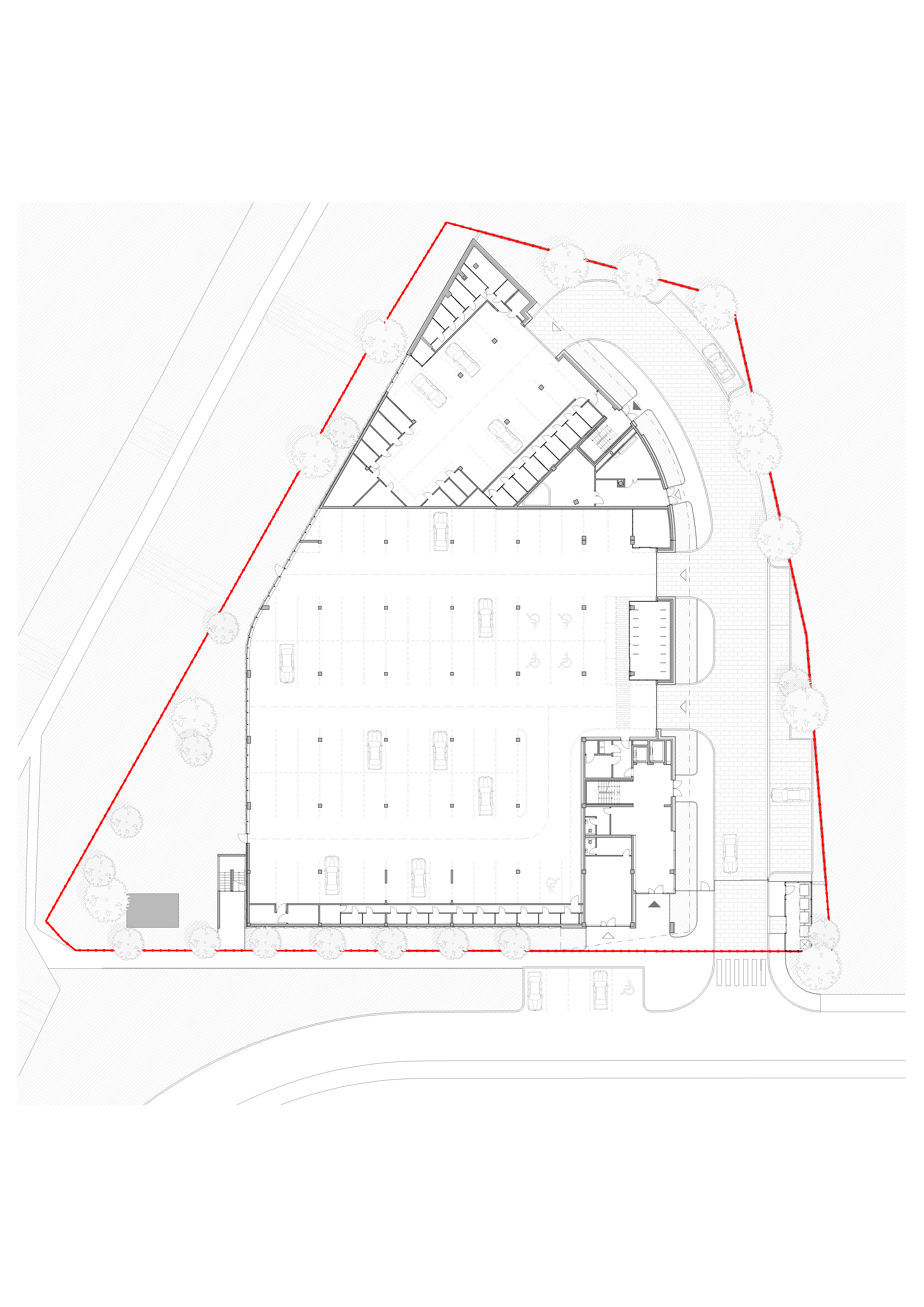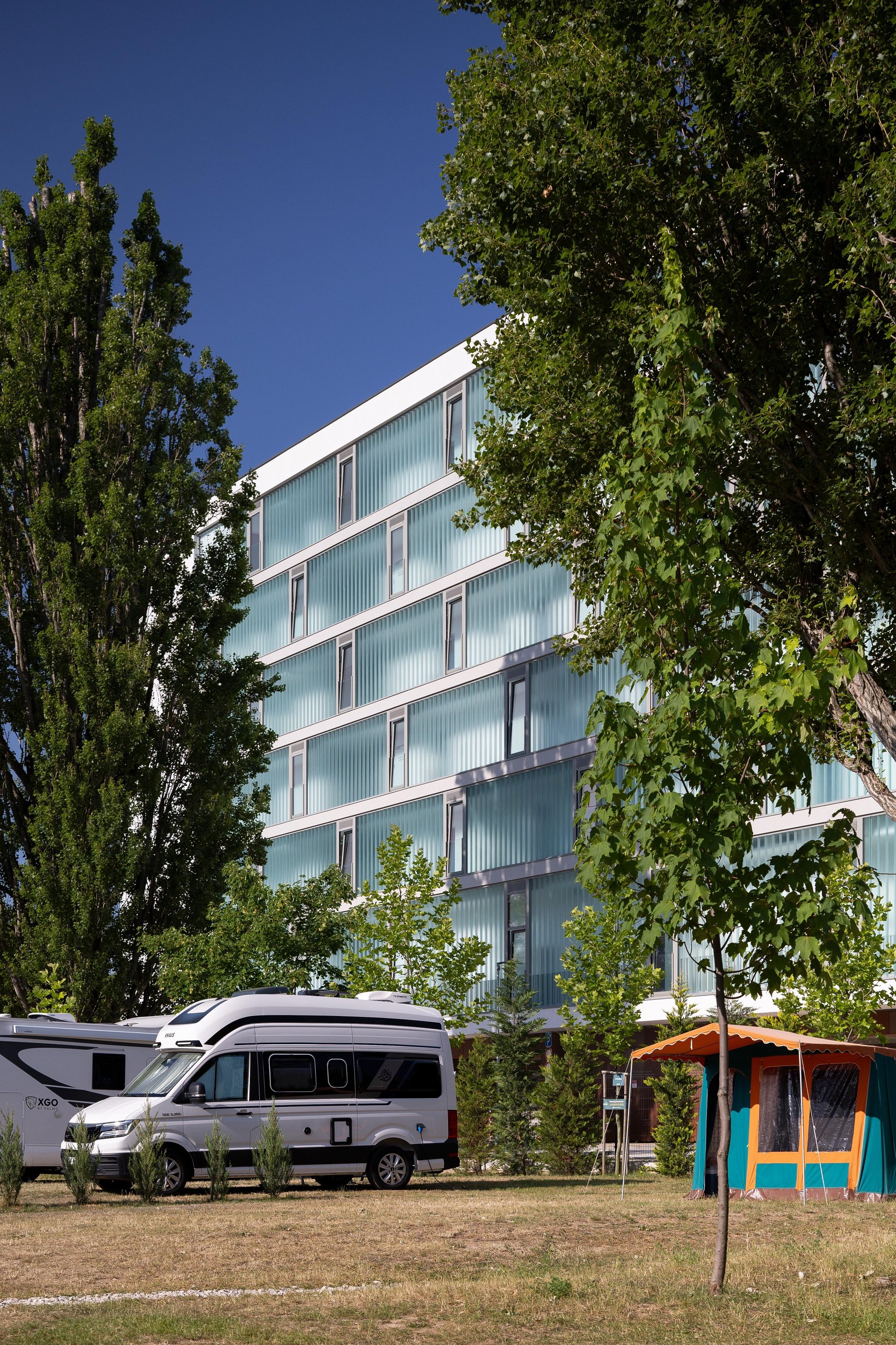 Perforovaná fasáda zabezpečuje vetranie a presvetlenie garáže, zalomené segmenty svojou geometrickou abstrakciou vytvárajú plasticitu fasády – hru svetla a tieňov. Farebnú a materiálovú skladbu dopĺňa pobytová zelená terasa s vodnou plochou bazéna a extenzívna vegetačná strecha nad podnožou. Zeleň a zelené strechy sa tak stávajú neoddeliteľnou súčasťou výhľadov z každého bytu či apartmánu a významne prispievajú k začleneniu objektu do okolitej prírody.