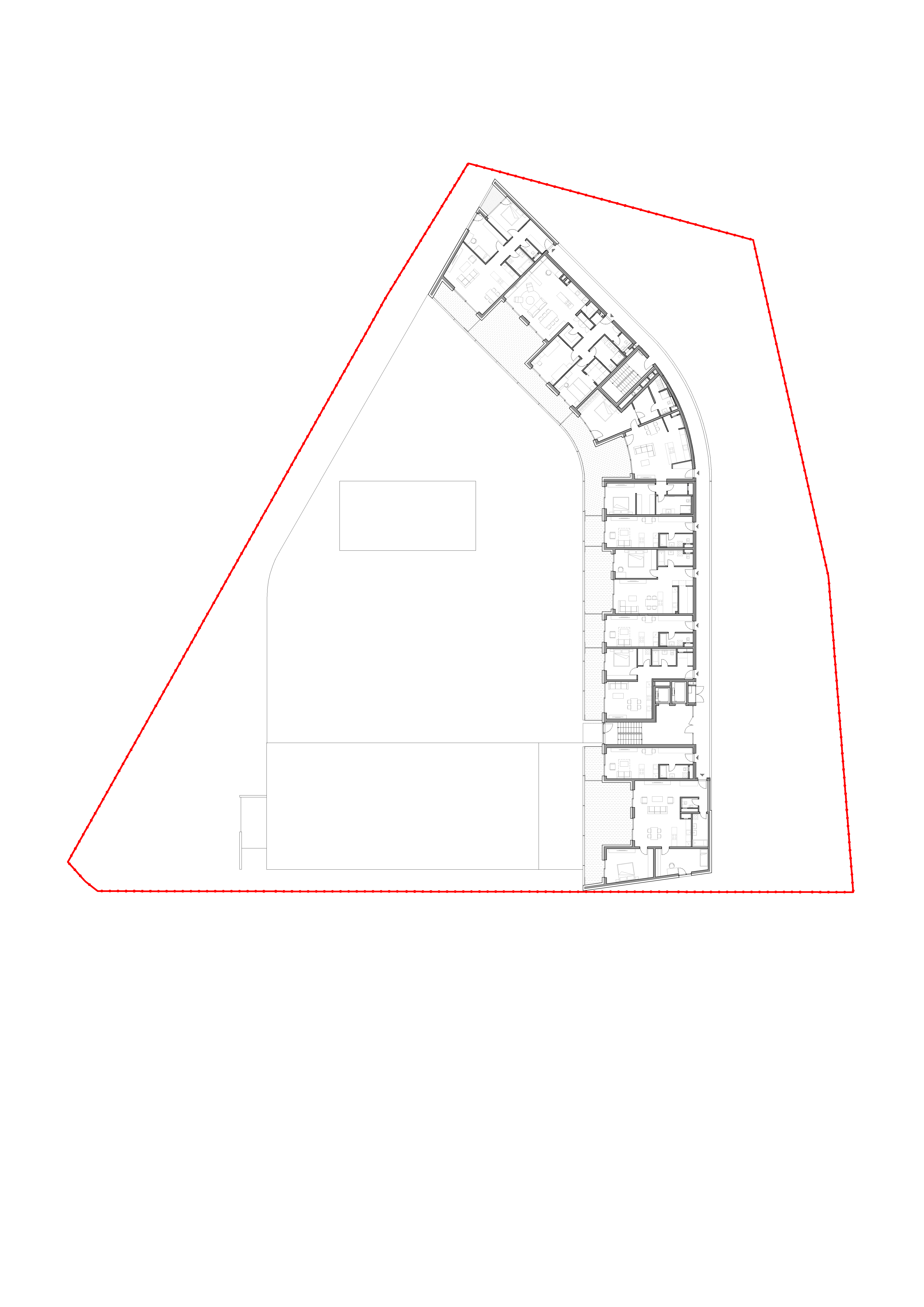 Všetky jednoizbové až trojizbové byty a apartmány sú navrhnuté s veľkorysnými pobytovými loggiami, materiálovo s priznaným pohľadovým betónom balkónových dosiek. Niektoré byty na najvyššom podlaží majú väčšie strešné terasy a mierne upravenú dispozíciu.