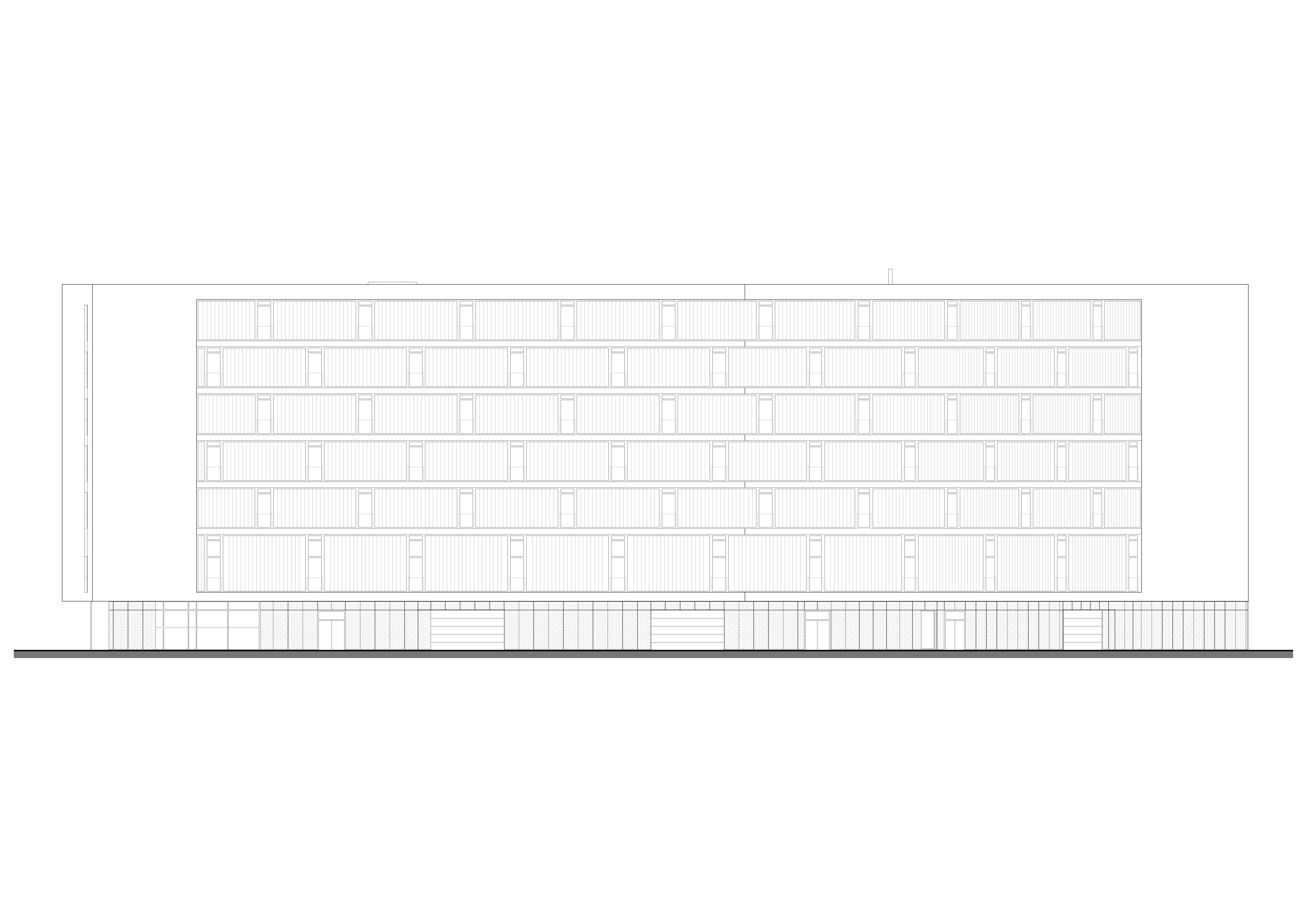Byty a apartmány sú prístupné zo spoločných chodieb na severovýchodnej fasáde, ktorá je jednostranne presklená tvarovkami Profilit. Tým sa dosiahlo rovnomerné a príjemné prirodzené presvetlenie chodby s množstvom vizuálnych efektov v interiéri a zaujímavým výtvarným výrazom fasády pri pohľadoch z exteriéru. Typický zelenomodrý tón skla dodáva fasáde osobitosť a svetelnú premenlivosť počas dňa i noci. Kontrast k semitransparentnej sklenenej fasáde tvorí tmavohnedý plech Cor-Ten, použitý vo forme perforovaných, zalamovaných segmentov na prvom nadzemnom podlaží (garáž) a časti druhého podlažia (dentálna klinika), čo odzrkadľuje odlišnú funkciu týchto častí.