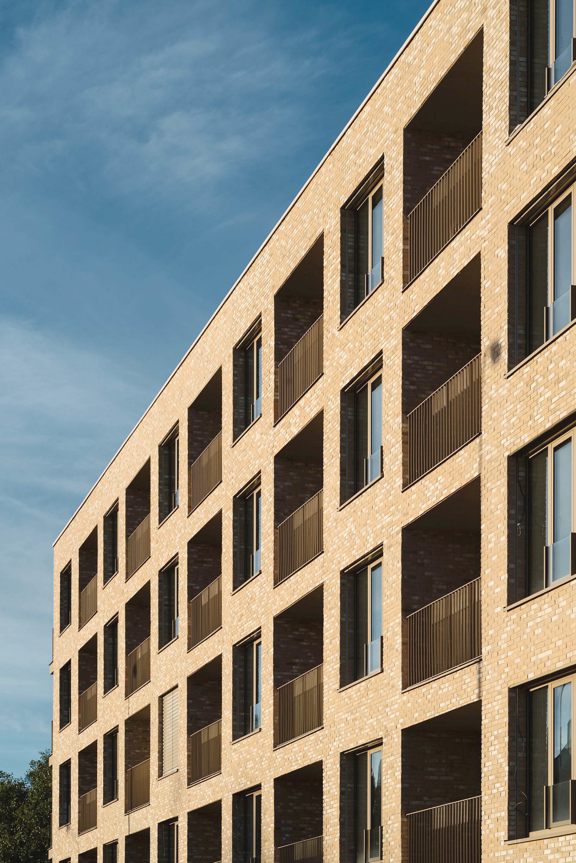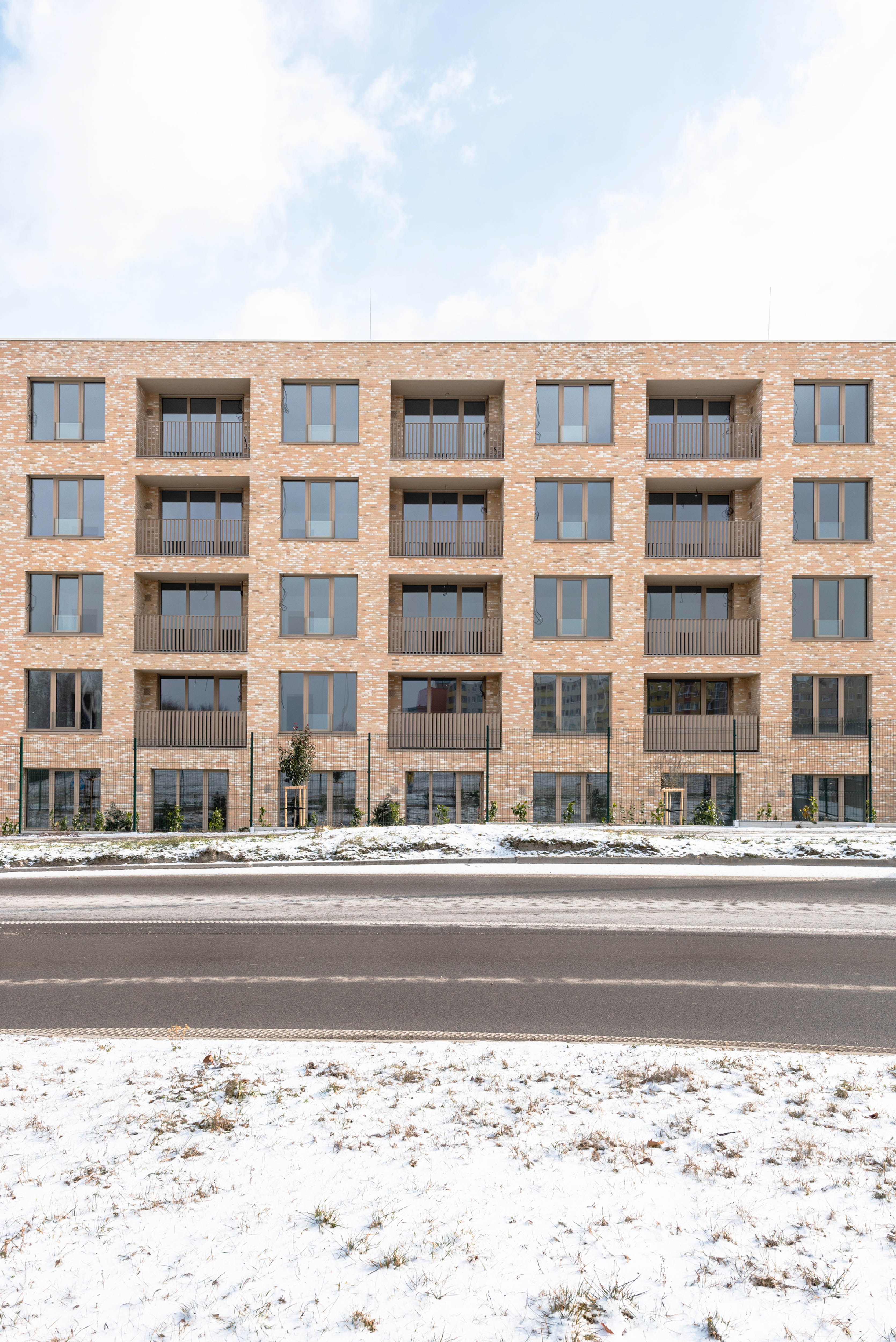 "Objekt s 42 bytmi, apartmánmi a predajňou v parteri je rozdelený na dve hmoty. Hlinená farba tehličiek fasády odkazuje na neďaleké dunajské naplaveniny. Fasádou a strohým hmotovým výrazom stavba reaguje aj na neďalekú panelákovú zástavbu. Západná fasáda s lodžiami profituje z hry tieňa a svetla a získava skulpturálny výraz. Lodžie majú za úlohu aj zabrániť šíreniu hluku z priľahlej komunikácie. Výrazovo jednoduchšia východná fasáda je orientovaná do ukľudnenej pokračujúcej urbanistickej štruktúry," dopĺňajú architekti z ateliéru LANG BENEDEK ASSOCIATED ARCHITECTS.