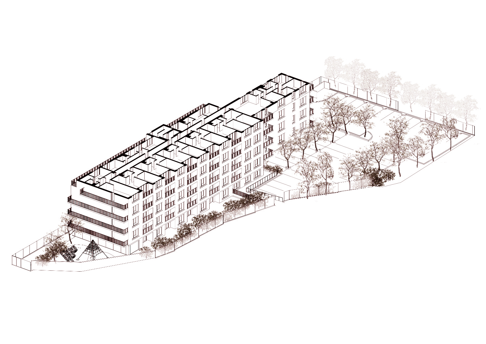 Päťpodlažný bytový dom efektívne využíva úzky pozemok pri zjazde z Dolnozemskej cesty na Betliarsku ulicu. Skladbu menších dvoj až trojizbových bytov a apartmánov dopĺňajú päťizbové byty v užšom trakte, na južnej strane pozemku. Zdvihnutá hmota v tejto časti parteru bytového domu prestrešuje parkovacie miesta na teréne.