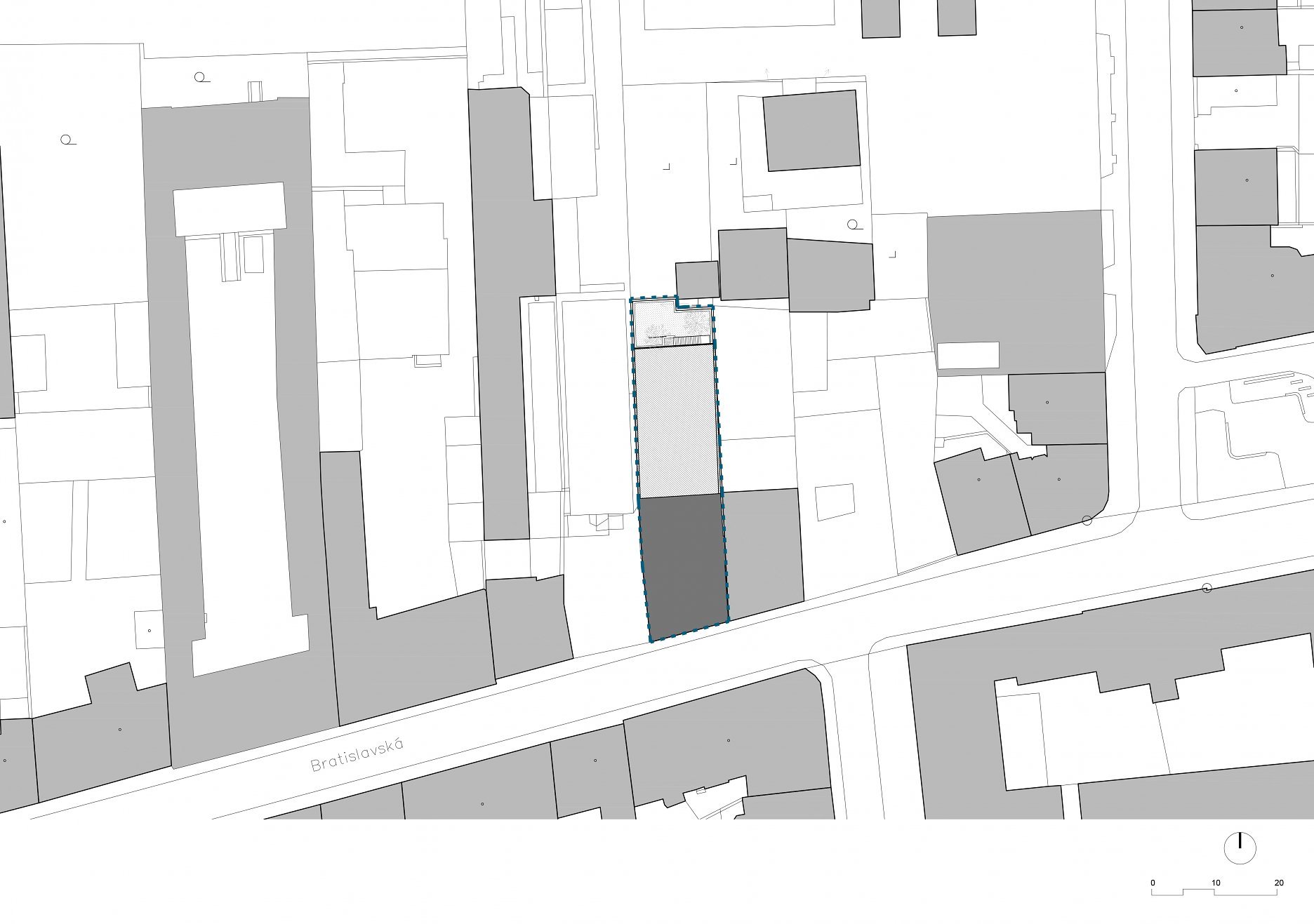 Novostavba v prieluke na ulici Bratislavská, neďaleko radnice Brno-sever, uzatvára mestský blok nájomných domov z predvojnového obdobia. Zanedbaná mestská časť tzv. “Brniansky Bronx“ ťaží zo svojej polohy v blízkosti centra mesta. V súčasnosti prechádza intenzívnym procesom premeny na modernú rezidenčnú štvrť.