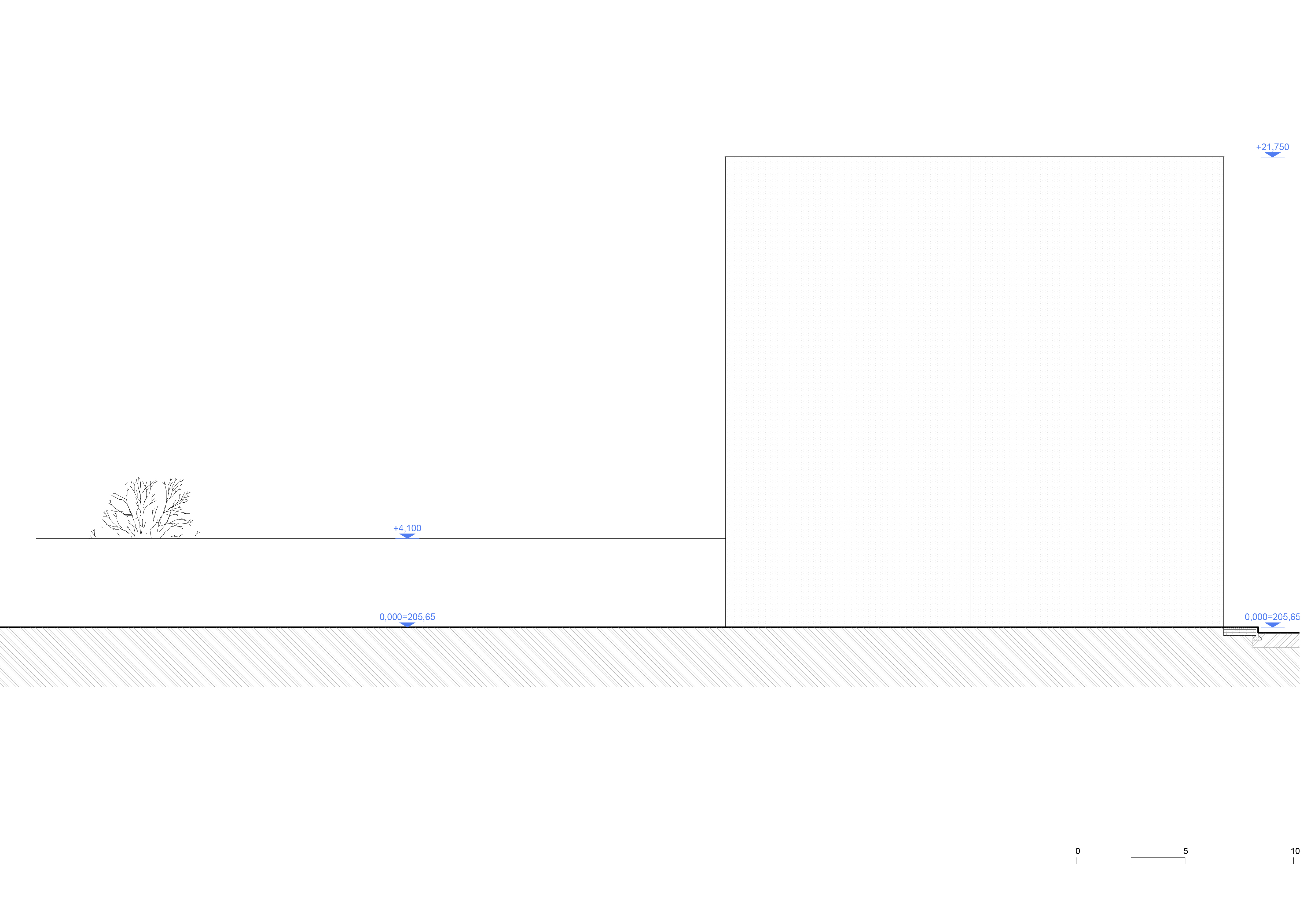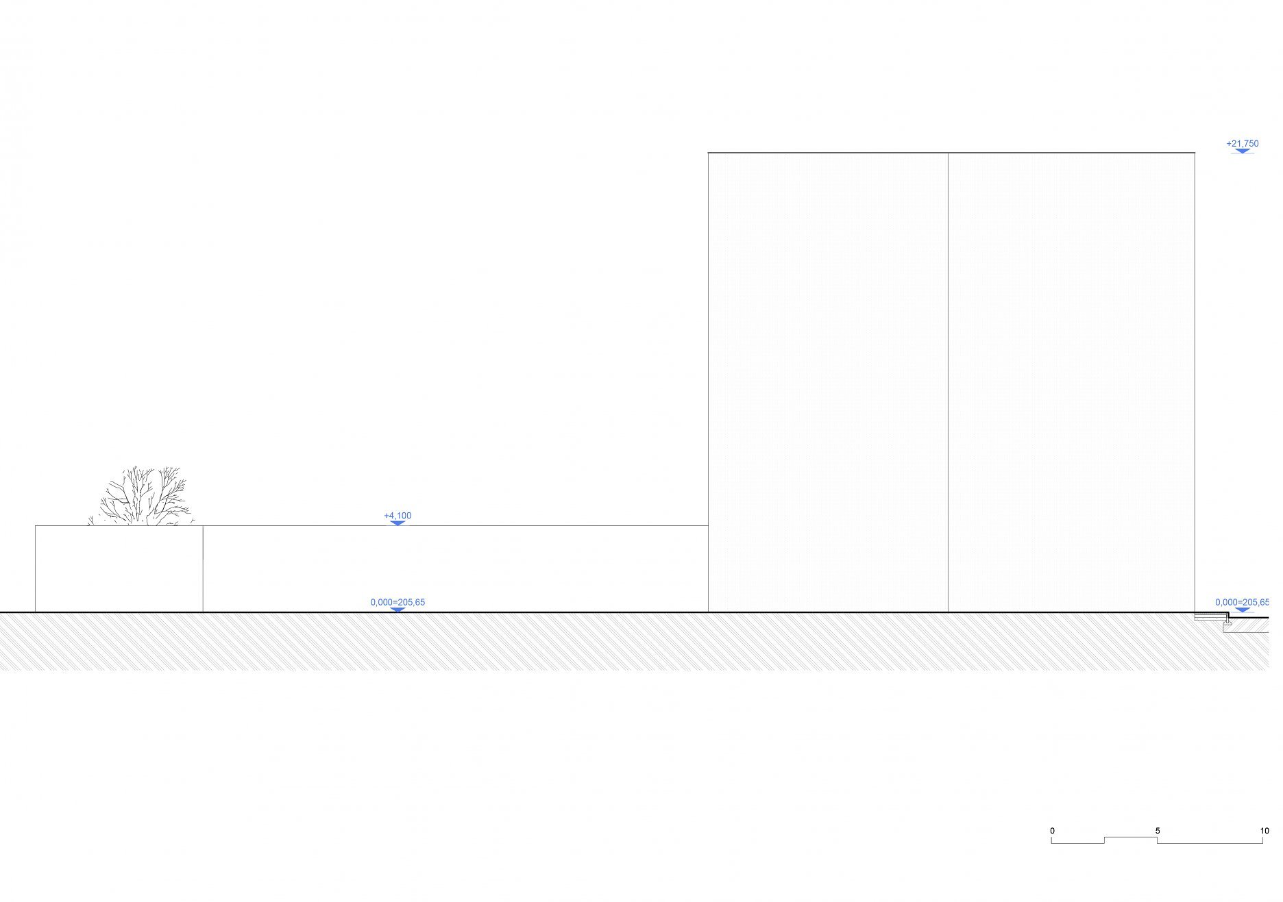 Základný rozmer hmoty domu je daný tvarom parcely a okolitou zástavbou. Pôdorysne má parcela obdĺžnikový tvar šírky cca 23 m v uličnej časti. Rímsa sa nachádza približne v úrovni hrebeňa okolitých domov, teda v siedmom nadzemnom podlaží.