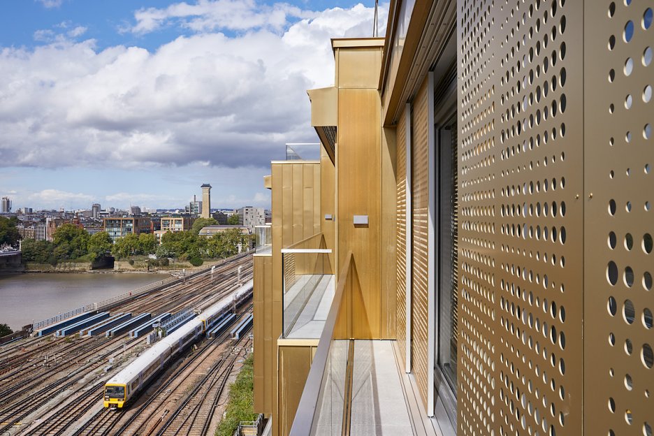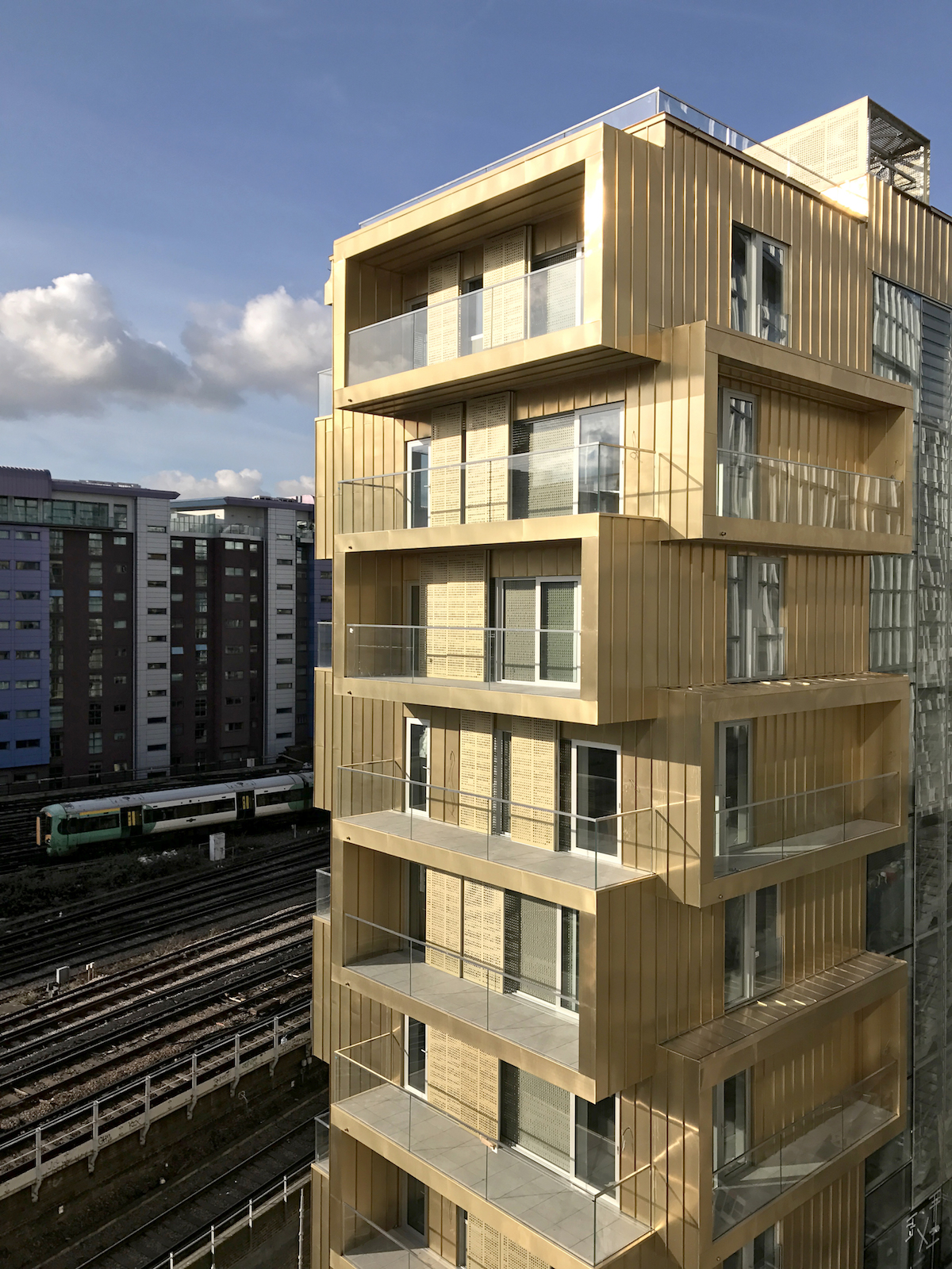 Obrys objektu a usporiadanie bytov sleduje v pôdoryse jemnú krivku železničnej trate. Geometriu meďou obložených boxov je najlepšie vnímať z vlaku, pomaly smerujúceho na stanicu Victoria. Členitá fasáda sa najprv javí ako neusporiadaná hradba. Postupne však odhaľuje racionálne presklené fasády bytov, zoradené vedľa seba v pravidelných pásoch.