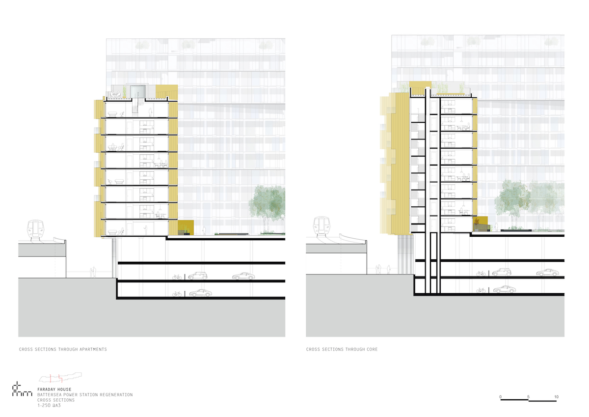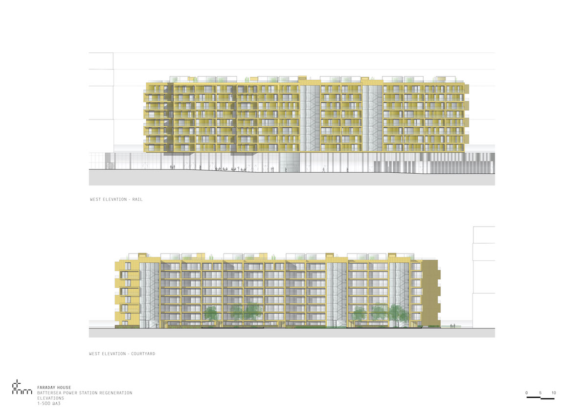 Situeta londýnskej elektrárne Battersea (Battersea Power Station) je známa aj mnohým “nearchitektom” najmä vďaka obalu platne Animals (štúdiový album skupiny Pink Floyd). Stavba dokončená roku 1939 bola prvou zo série mohutných uhoľných elektrární budovaných v Anglicku ako súčasť Národnej elektrickej sústavy. V súčasnosti prebieha náročná revitalizácia pamiatkovo chránenej elektrárne a jej okolia, ktoré sa postupne mení na luxusnú obytnú štvrť. Projekt priniesol do oblasti Battersea na južnom brehu rieky Temža “veľké mená” svetovej architektúry a zároveň aj výrazný rast ceny nehnuteľností. Jedným z prvých dokončených objektov nového developmentu je bytový dom Faraday house, ktorý kopíruje východný okraj zóny.