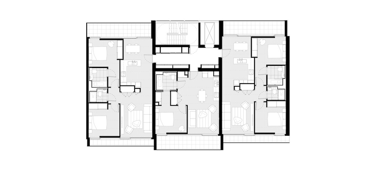Byty sú usporiadané v trojiciach okolo piatich jadier. V osem podlažnej bytovke je celkovo 113 bytov. Schodiská a výťahy sú vysunuté k fasáde orientovanej do dvora. Umiestnenie vertikálnych jadier dovoľuje obojstranné presvetlenie väčších pridružených bytov, priestor medzi nimi zaberajú menšie nepreplávajúce bytové jednotky. Ďiaľkové výhľady na železnicu a Temžu dopĺňa intimita nádvoria. Každý byt je navrhnutý s balkónom cez celú šírku obývacej izby, čo do značnej miery formuje geometriu fasády.