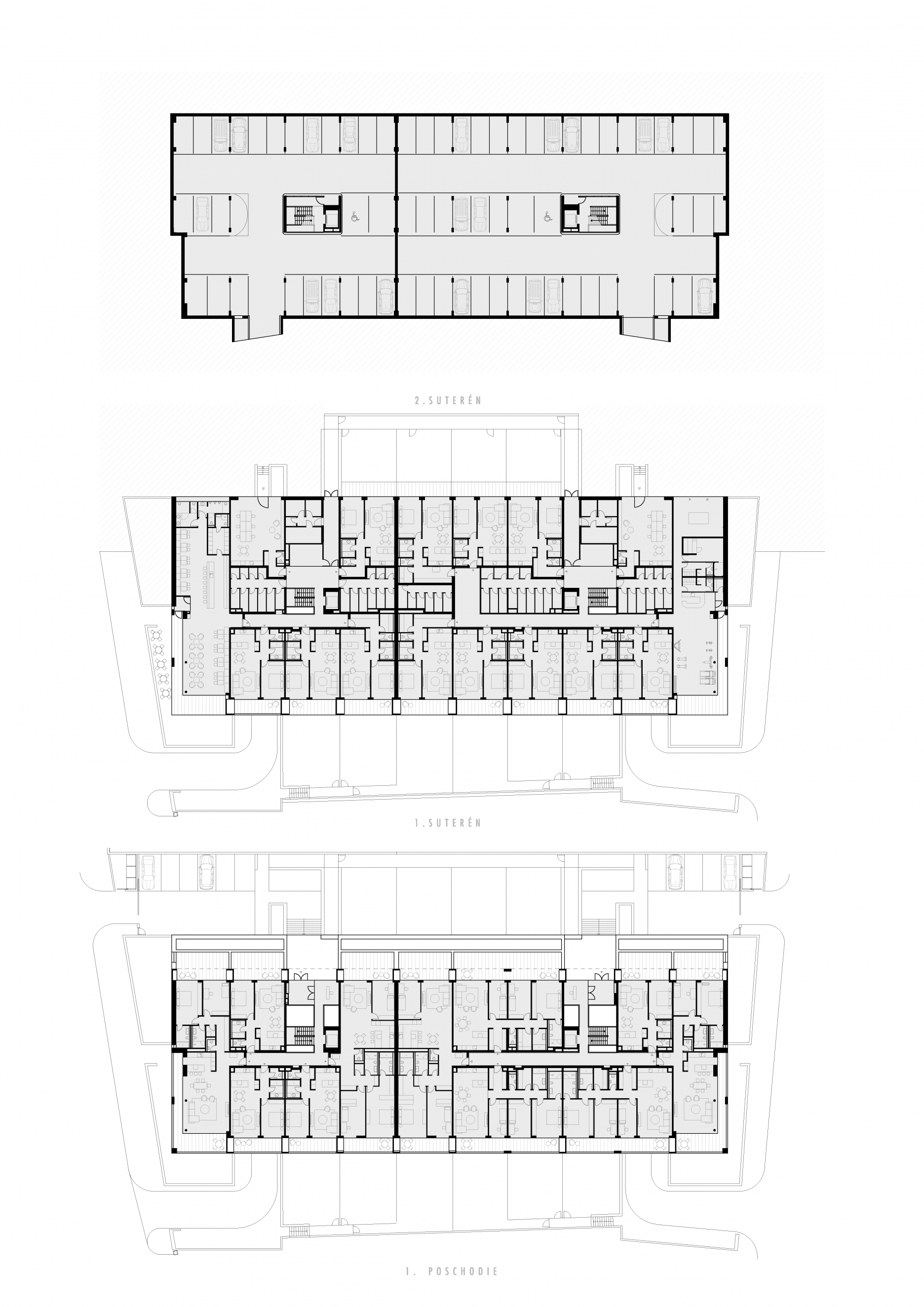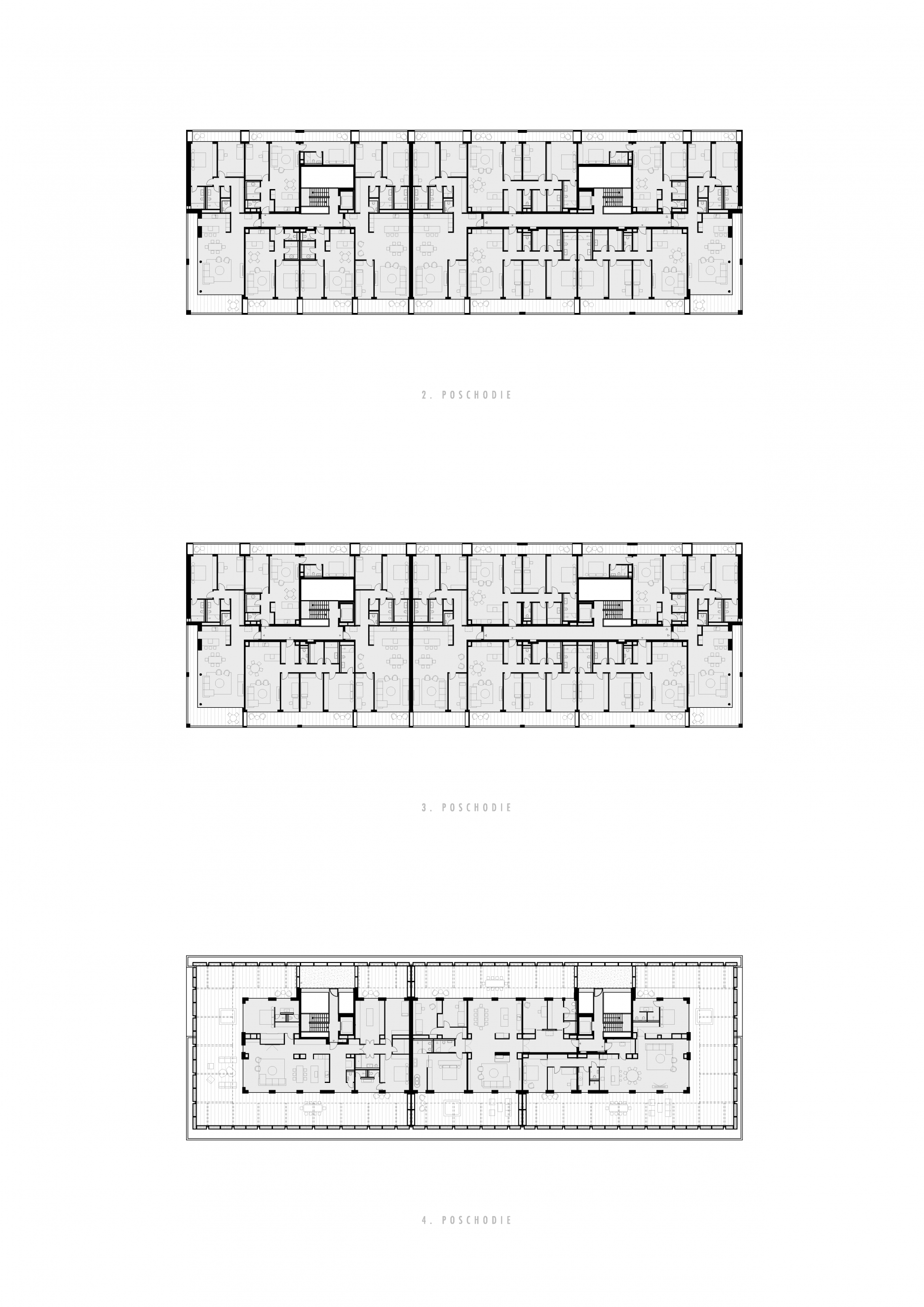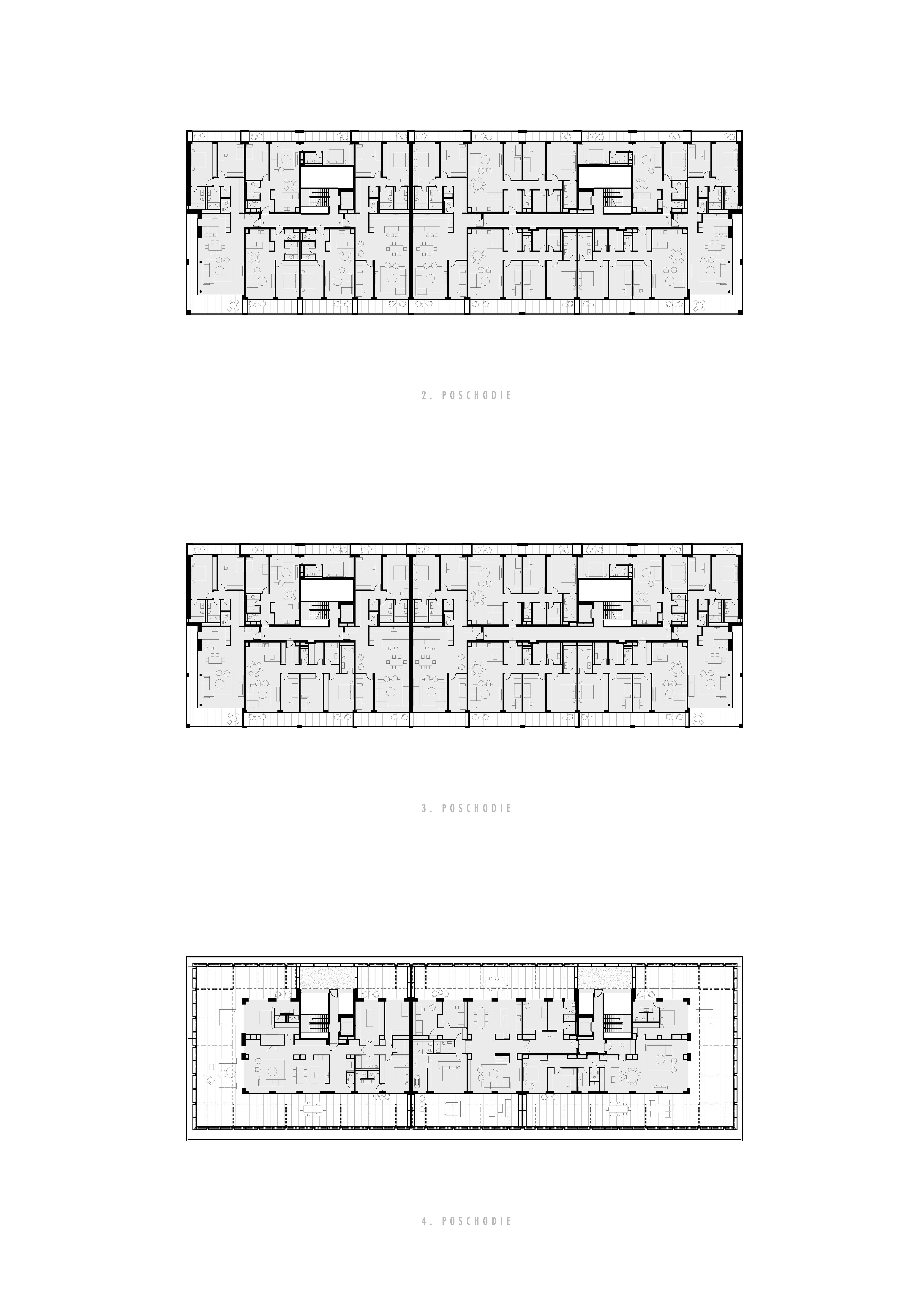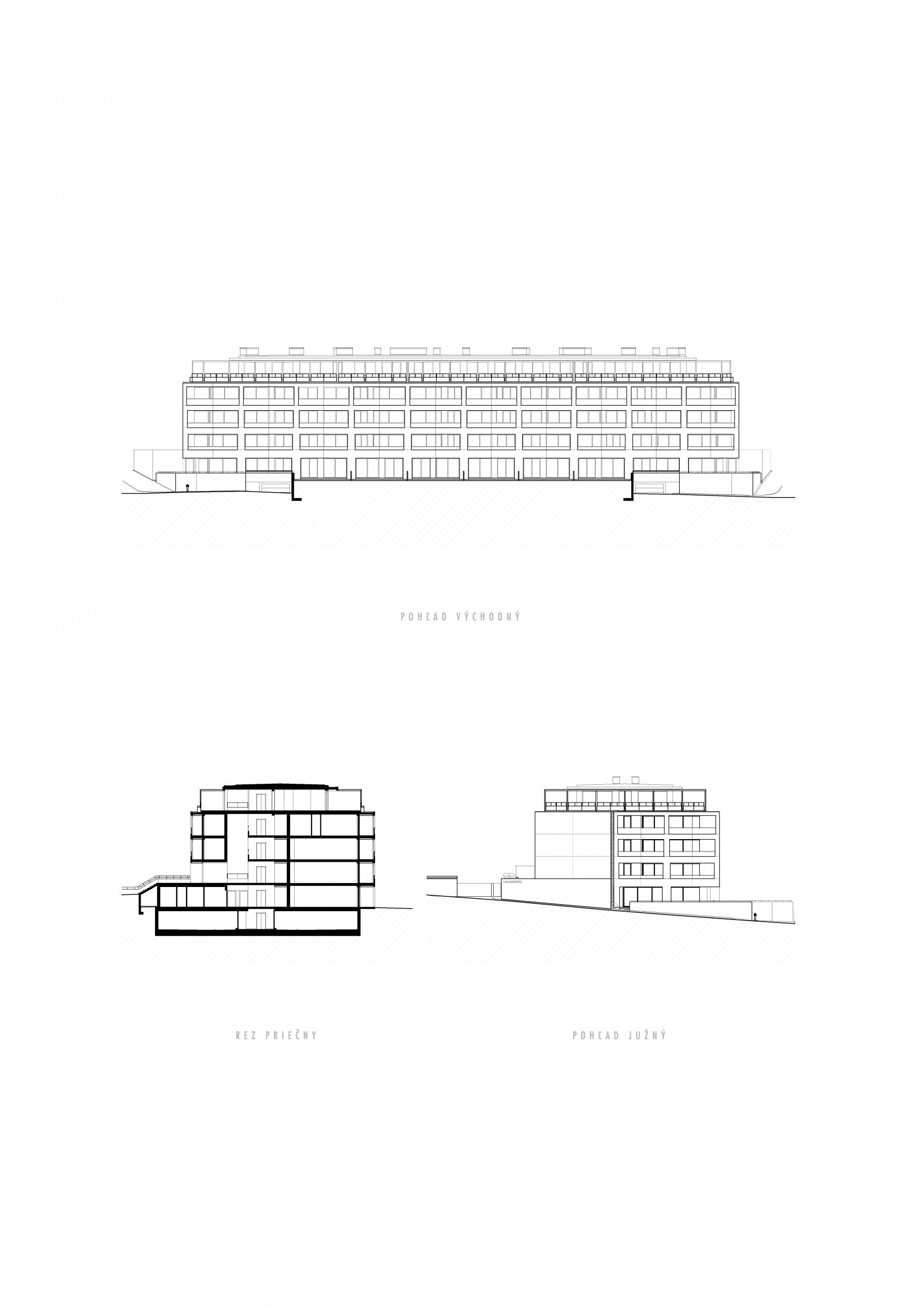 Hausberg je bytový dom so 46 bytmi vo vilovej štvrti na Palisádach. Keď sme hľadali jeho architektonickú tvár, pokúsili sme sa navrhnúť dom , ktorý akoby tu stál už dávno. Nie okázalý ani výrazný, naopak zdanlivo všedný a obyčajný. Taký, čo nepúta pozornosť, nesrší nápadmi ale ktorého kvalita a solídnosť je zrejmá aj bez nich. Dom, ktorému sluší starnúť. Jeho fasáda zo štokovaného betónu má pripomínať charakteristické škrabané brizolitové omietky susedných domov. Táto betónová škrupina chráni drevené jadro, ktoré prechádza do veľkorysých spoločných priestorov schodiska a chodieb.