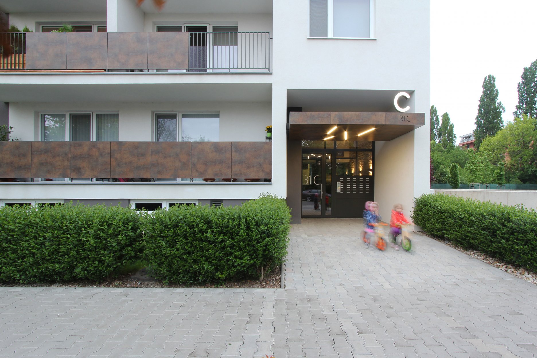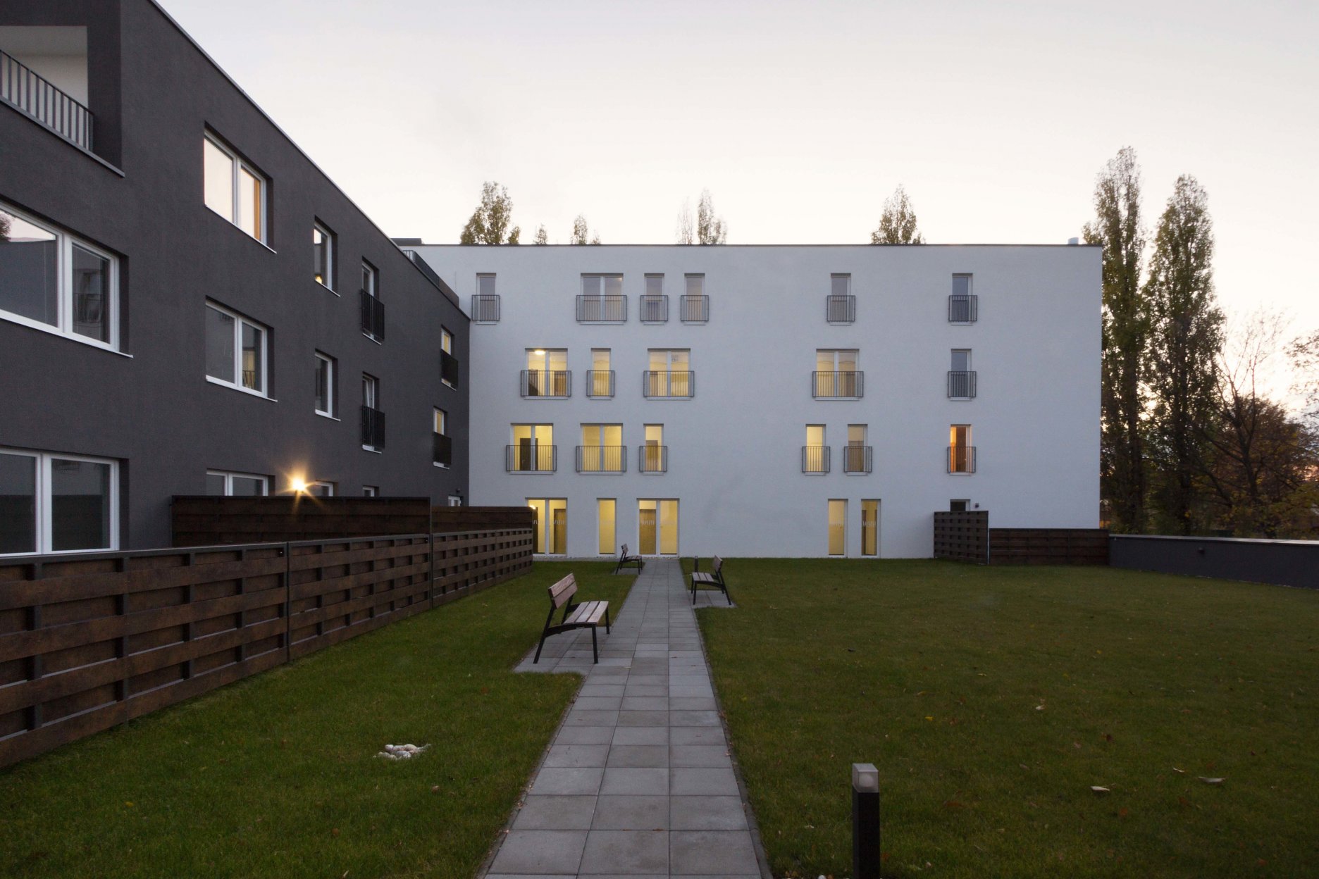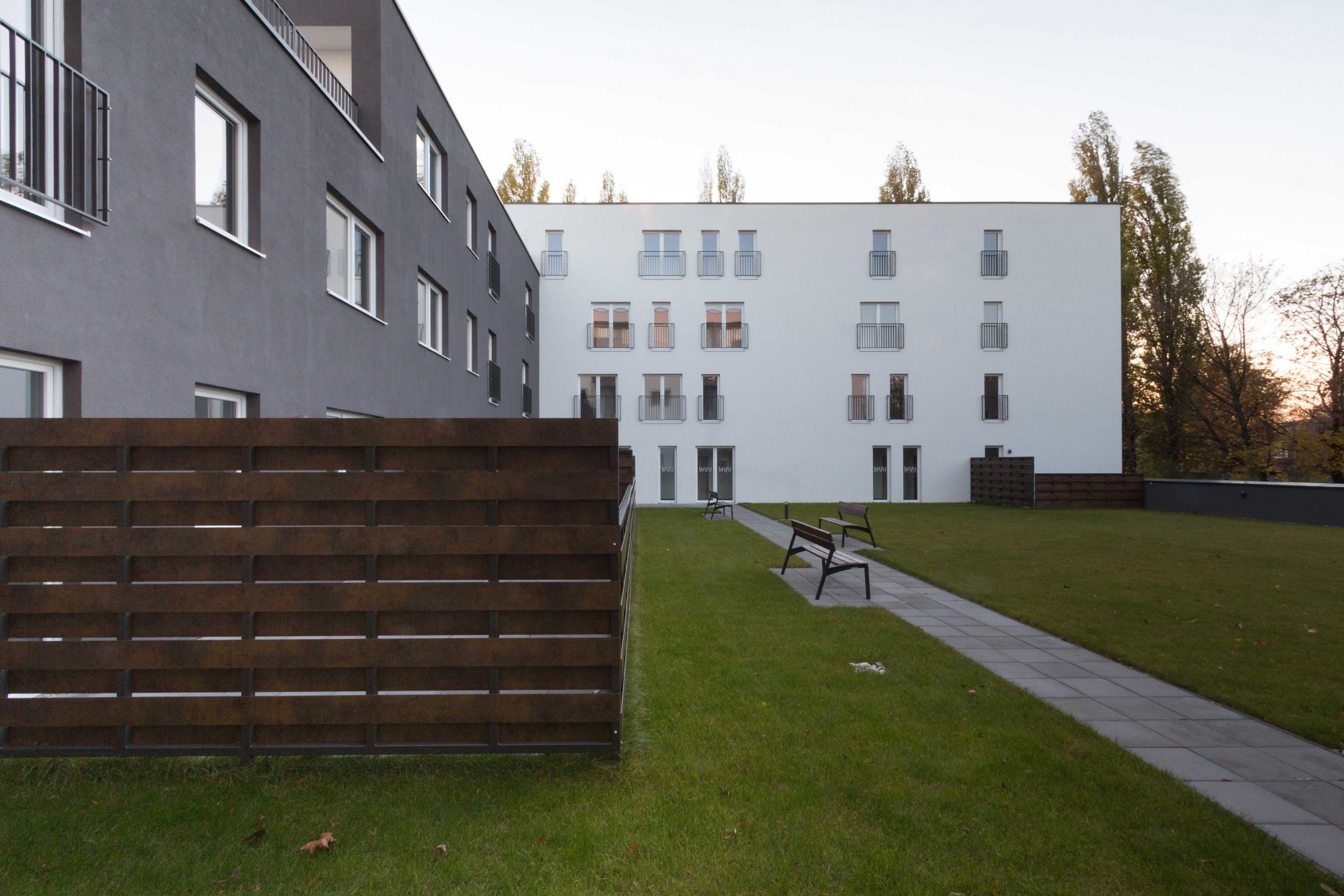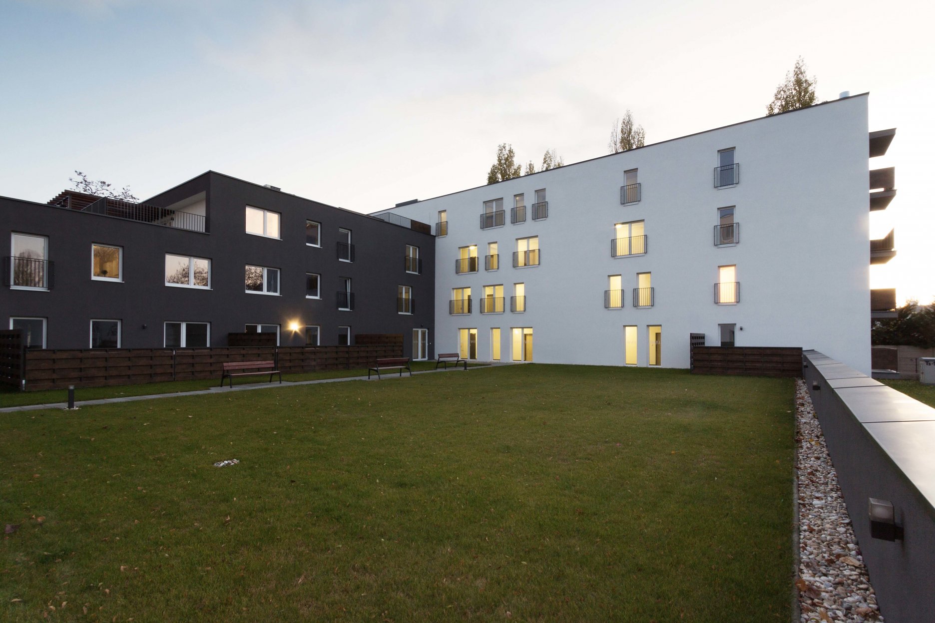 Bytový dom na rozhraní nízkopodlažnej zástavby rodinných domov a susediacich viacpodlažných obytných blokov. Členitá obytná štruktúra stúpajúca smerom k vyšším susedom zabezpečuje veľmi dobré preslnenie bytov, vnútorných dvorov a prístup na stupňovité strešné terasy. Investor sa v tomto prípade vzdal polyfunkčného partera. Zodvihnutím podzemného podlažia (garáže) sa byty na prvom poschodí dostali nad úroveň ulice. Zároveň vznikol priestor pre prevýšené vstupy, ktoré od ulice delí široký zelený pás.