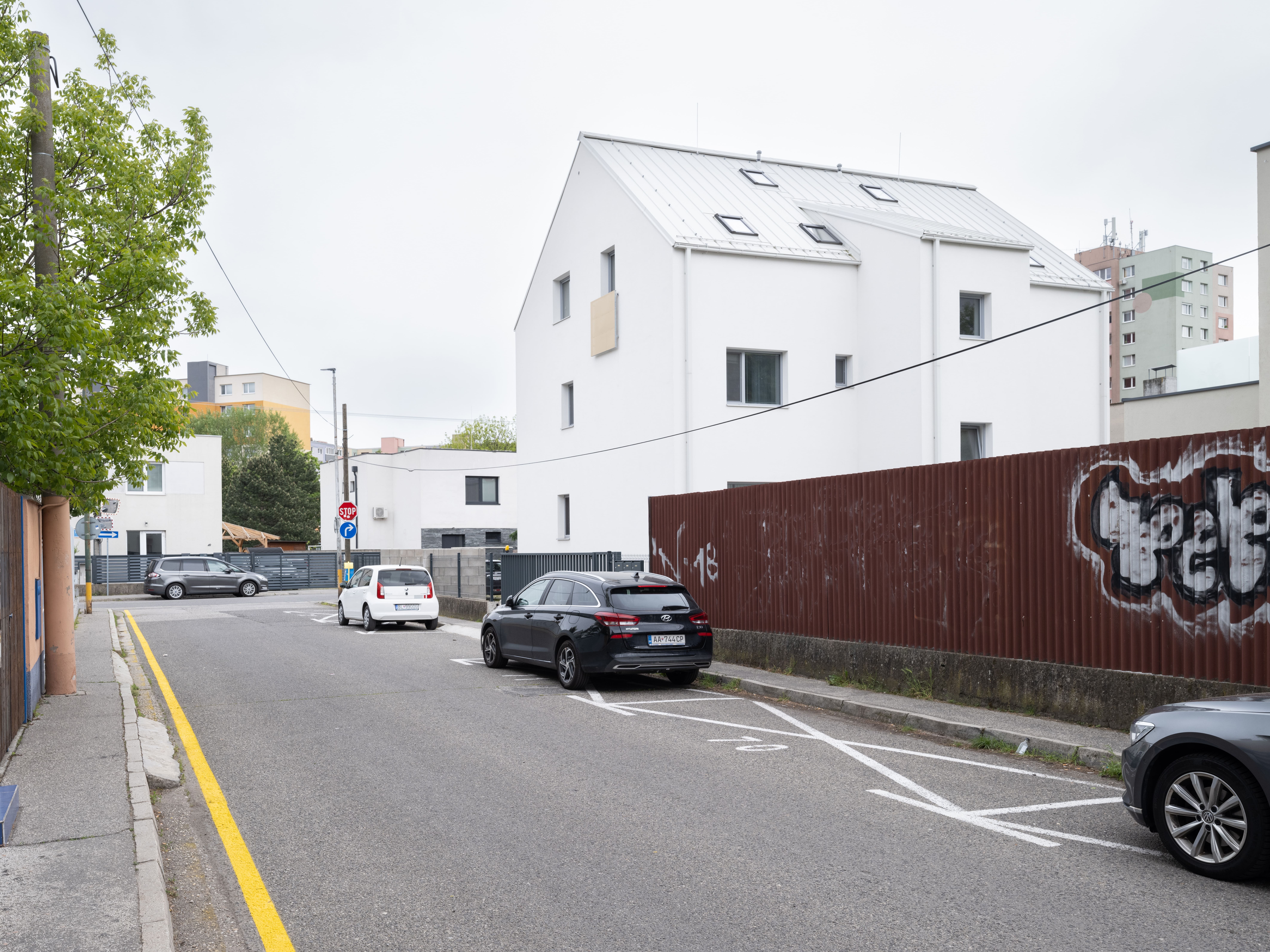 Pôvodný objekt bol doplnený o zobytnené podkrovie a predsadené balkóny. Na každom z troch podlaží sú navrhované dva byty, v podkroví dvojúrovňové. Prízemné byty majú priame prepojenie na záhradku na teréne, na horných podlažiach sú navrhované balkóny. Architektonický výraz objektu je určený tvarom sedlovej strechy spolu s predsadenou konštrukciou balkónov. Pôvodná kompozícia fasád je doplnená o nové okenné otvory, zvolené materiály spolu s geometrickým riešením vychádzajú z tvaroslovia a mierky susedných rodinných a bytových domov.