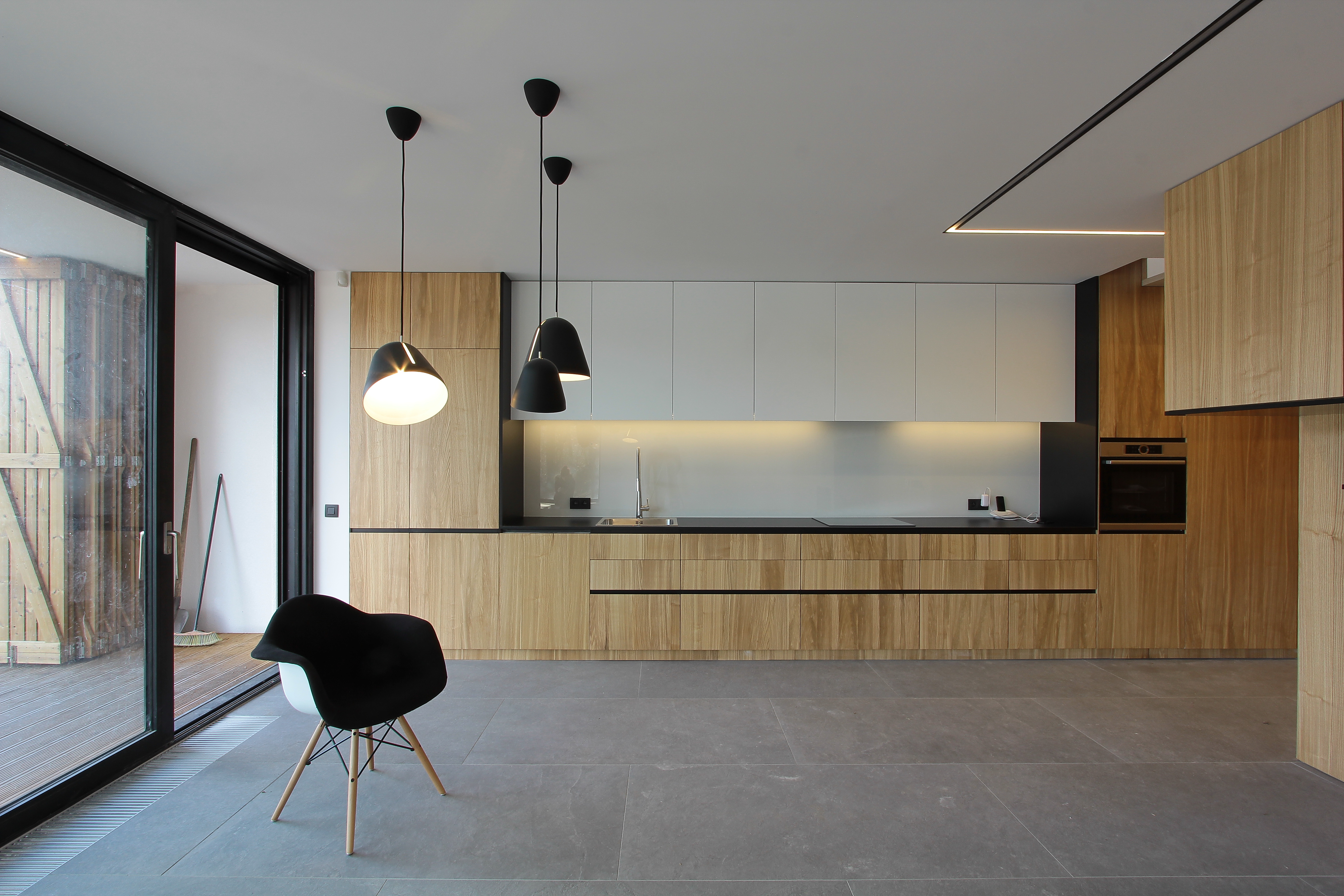 Sympatickou črtou riešenia je jeden autorský rukopis naprieč celým objektom. Ak šikovný architekt navrhuje všeko a má možnosť stavbu dotiahnuť až do detailu je to viditeľné a prispieva to k vyrovnanosti celkového dojmu. Potešia pekné detaily (napríklad na schodisku) i konzistentnosť použitých materiálov. (Možno ešte lepšie by bolo, ak by aj v interiéri bola použitá ako drevina iba borovica. Jaseň je z hľadiska tvrdosti a húževnatosti určite lepší, ale predsa len určitá materiálová "fudamentálnosť" by bola výzvou :-). Invenčne navrhnuté a precízne zrealizované interiéry sú integrálnou súčasťou riešenia.