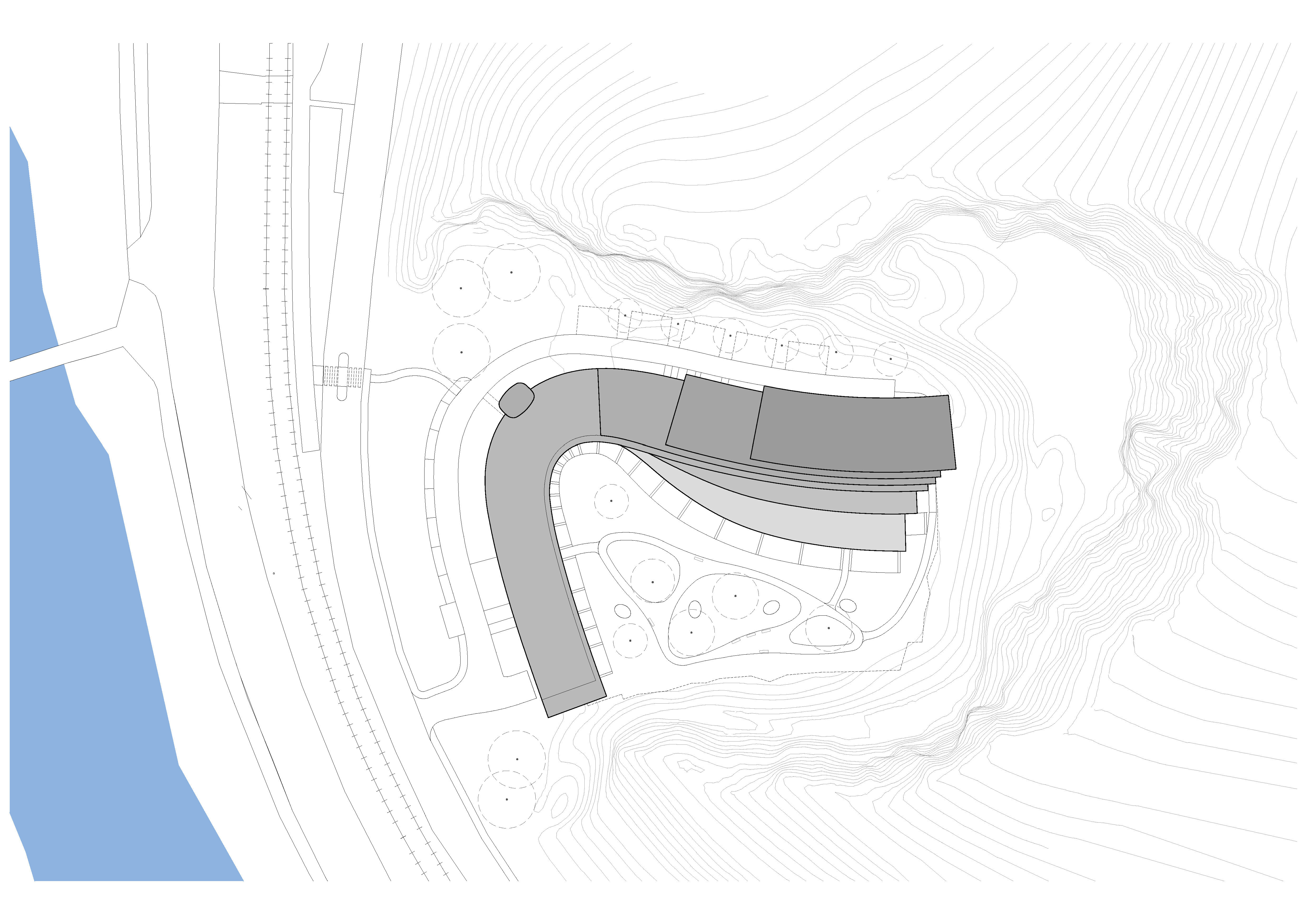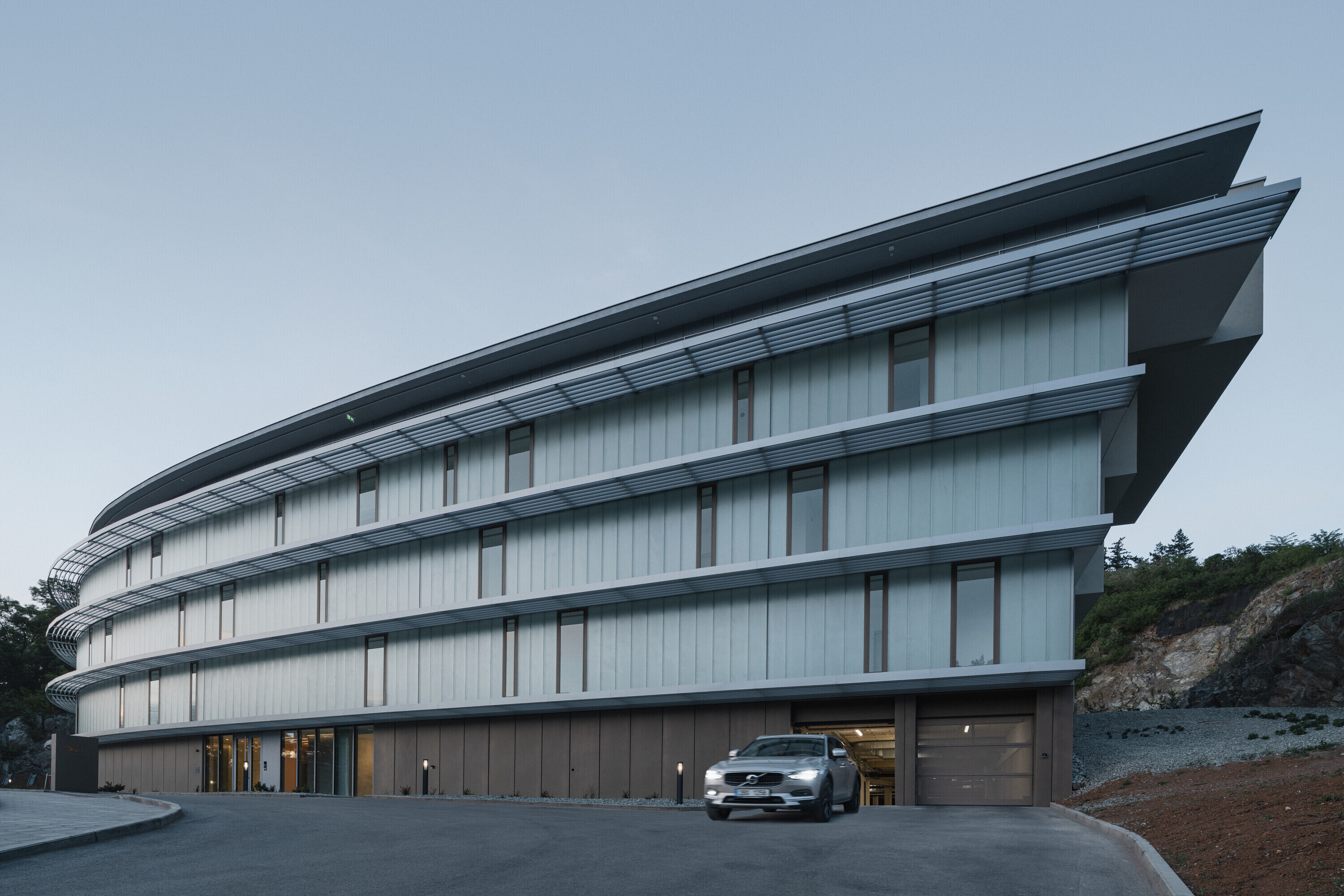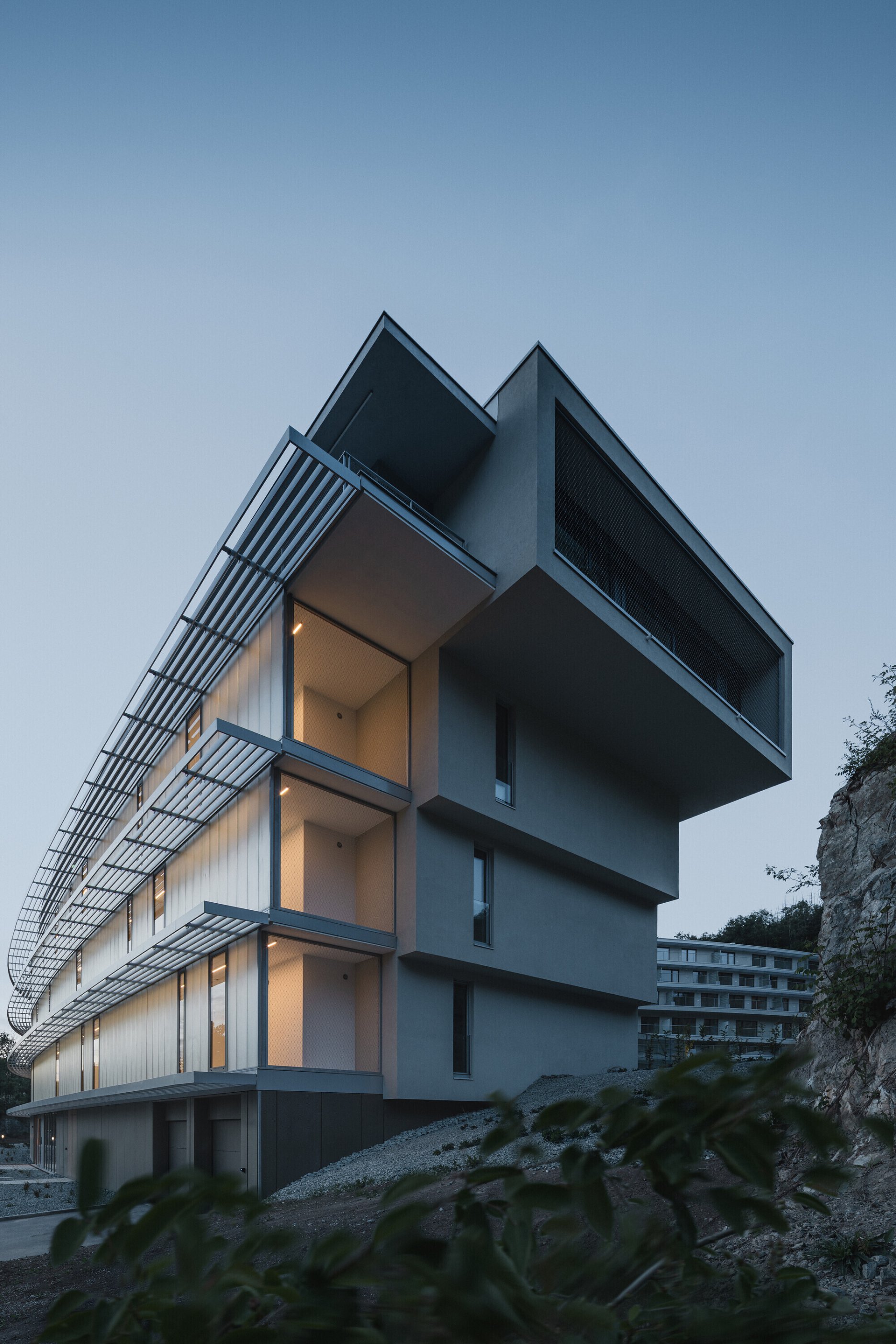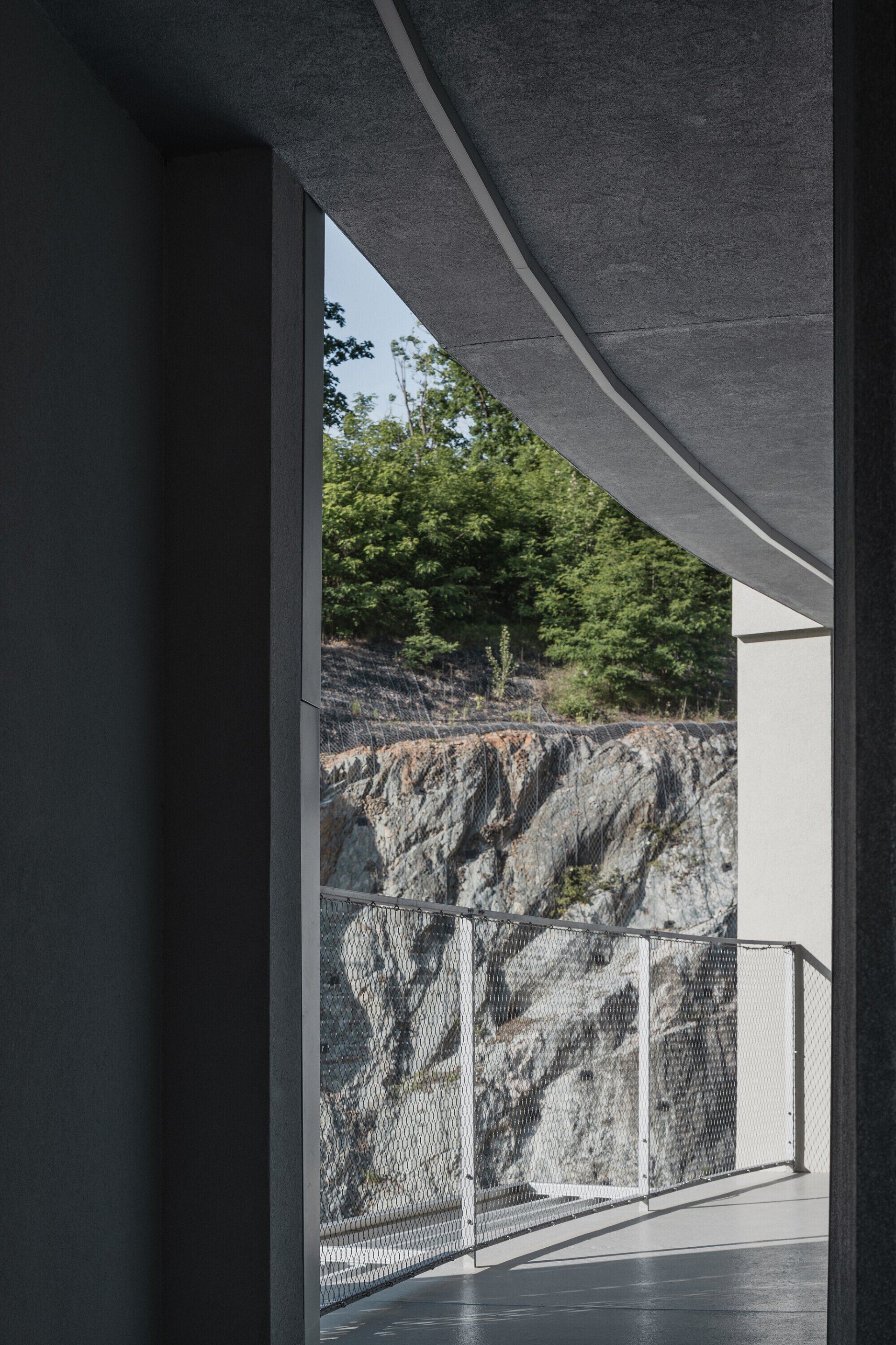 Architektonické riešenie reflektuje danosti územia. Predná časť funguje ako akustická bariéra pozdĺž ulice, dvorová časť zas kopíruje morfológiu skalných stien pôvodného kameňolomu so strmými skalami a plošinami. Kombinácia prírodných odtieňov omietok, fasády z mliečneho profilového skla, plynulých kriviek a zlomov, doplnená rozsiahlymi plochami zelene, prispieva k začleneniu stavby do prostredia bývalého lomu pohlteného prírodou. Krajinná architektúra rešpektuje vegetáciu skalných stien, ponecháva časti prirodzenej zelene a novou výsadbou podporuje druhovú pestrosť. Prírodný park na streche podzemných garáží plynule nadväzuje na porasty skalných stien a vytvára príjemnú mikroklímu vo vnútrobloku.