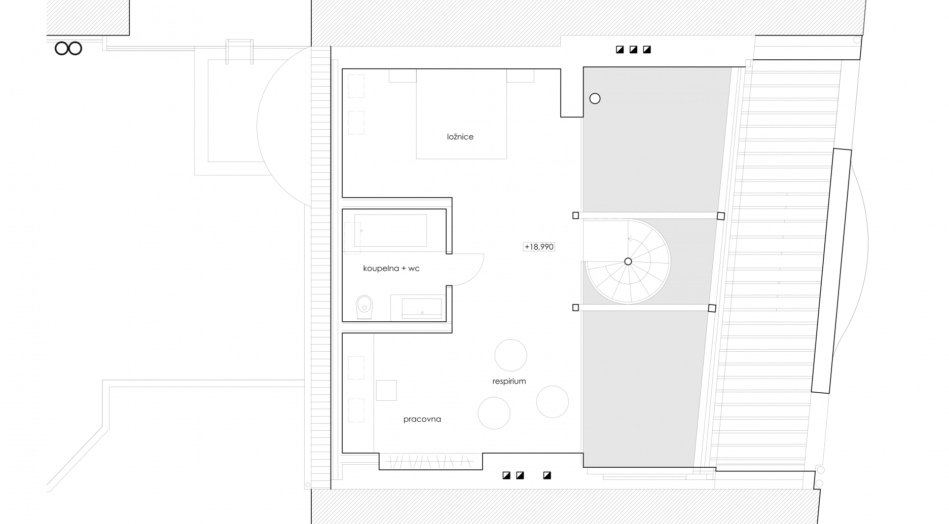 Po všetkých analýzach a rozboroch architekti vytvorili niekoľko alternatív, ako pojednať hmotu strechy tak, aby využili strešné priestory (pôjd). Cieľom bolo nájsť využitie pre 5. np a 6. np. v podobe kvalitného bývania z dôvodov sťahovania stálych obyvateľov z centra mesta. Dom sa podľa súčasných hygienických štandardov nedal v plnej miere využiť pre bývanie. Návrh spočíva vo vytvorení loftového bytu cez obe podlažia, ktorý má dostatok prirodzeného svetla. Dispozícia bytu vychádza z pôvodného riešenia podkrovného priestoru, ktorý mal vstup z centrálneho schodiska na 5. np. a bol prepojený vnútorným schodiskom na 6. np.