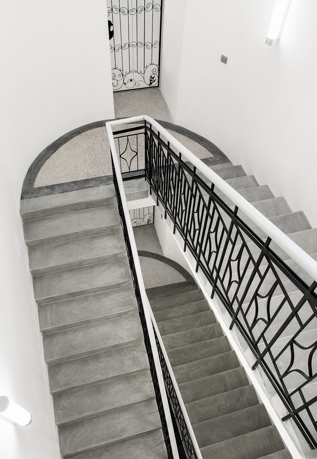 Modernizácia domu spočíva predovšetkým v kvalitnom vnútornom prostredí pri zachovaní princípu pôvodnej dispozície a rozšírení využiteľných plôch. Dom je doplnený o výťah obsluhujúci všetky podlažia na medzipodestách. Je umiestnený vo voľnom priestore svetlíka za schodiskom. Zvyšok svetlíka je využitý na rozšírenie sociálneho zázemia na jednotlivých poschodiach.