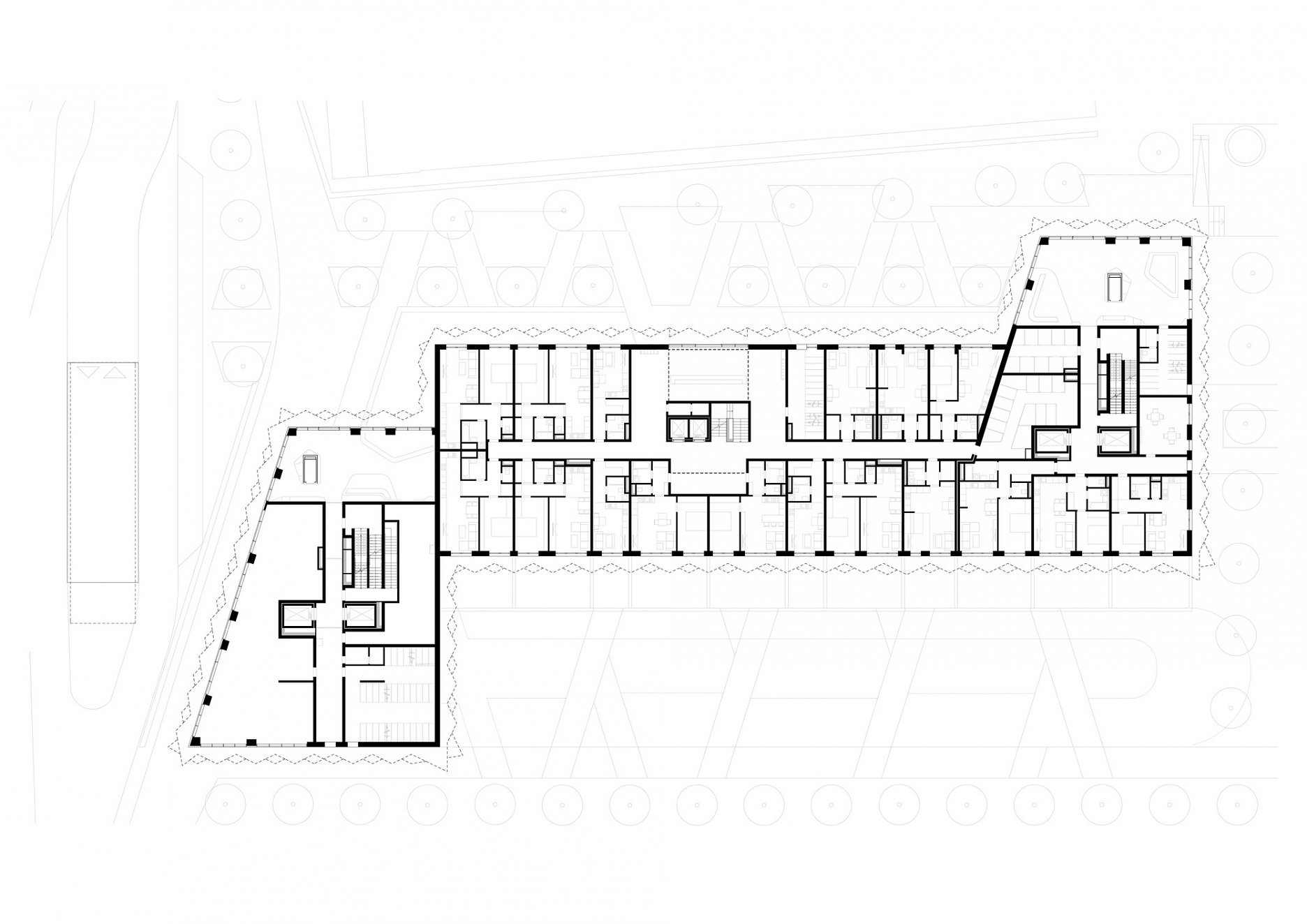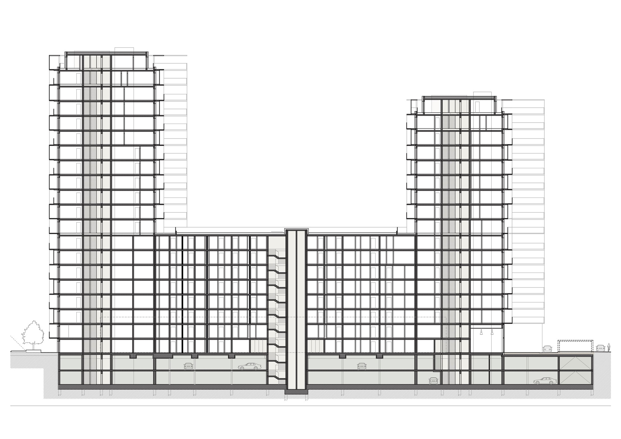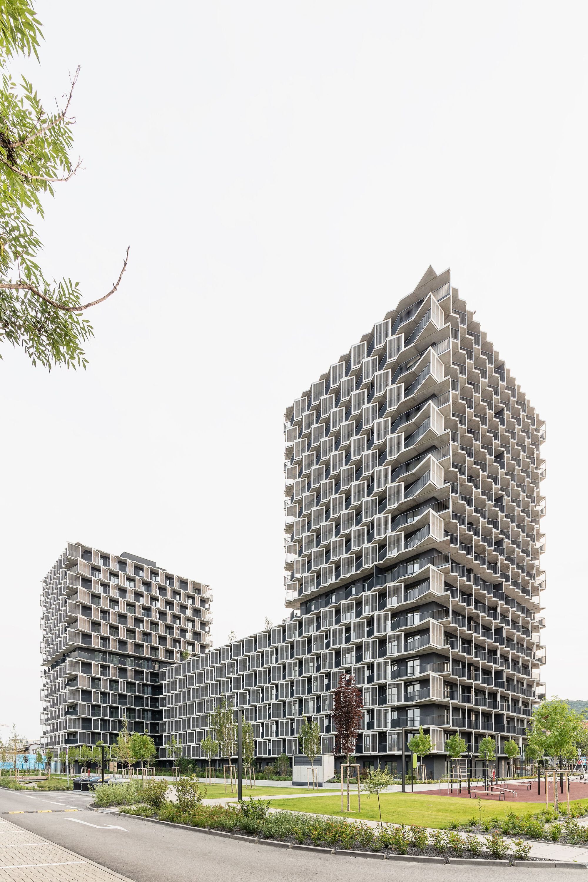 Novostavbu tvoria tri objekty. Jednotlivé domy sú navzájom oddilatované a majú rozličnú výšku. Severná veža dosahuje výšku 20 podlaží, južný blok o tri poschodia menej. Plošne najrozsiahlejšia stredová časť, s prevýšeným foyer, má osem nadzemných podlaží. Každý dom disponuje dvojpodlažným parkovaním v suteréne.
