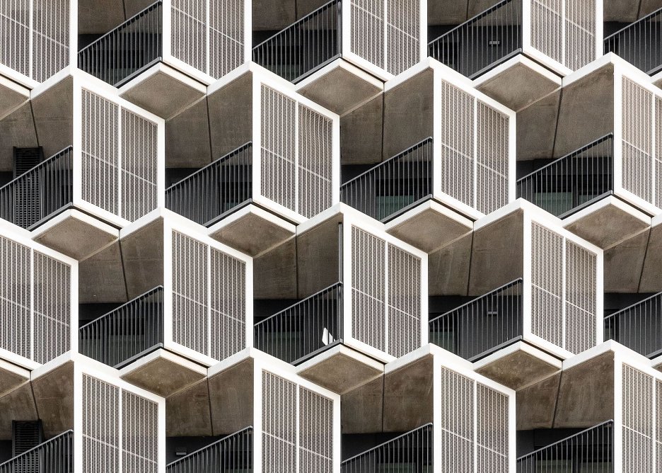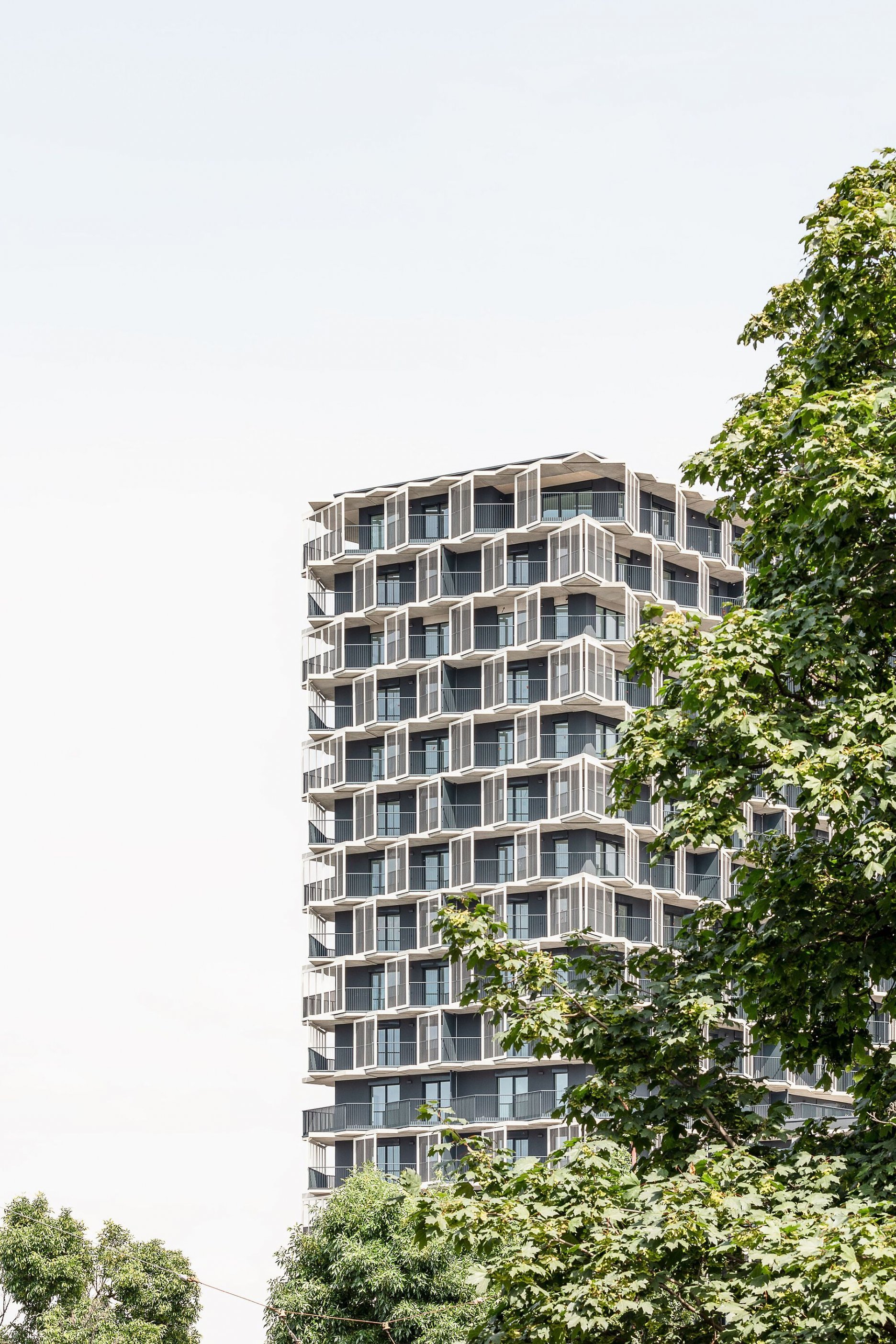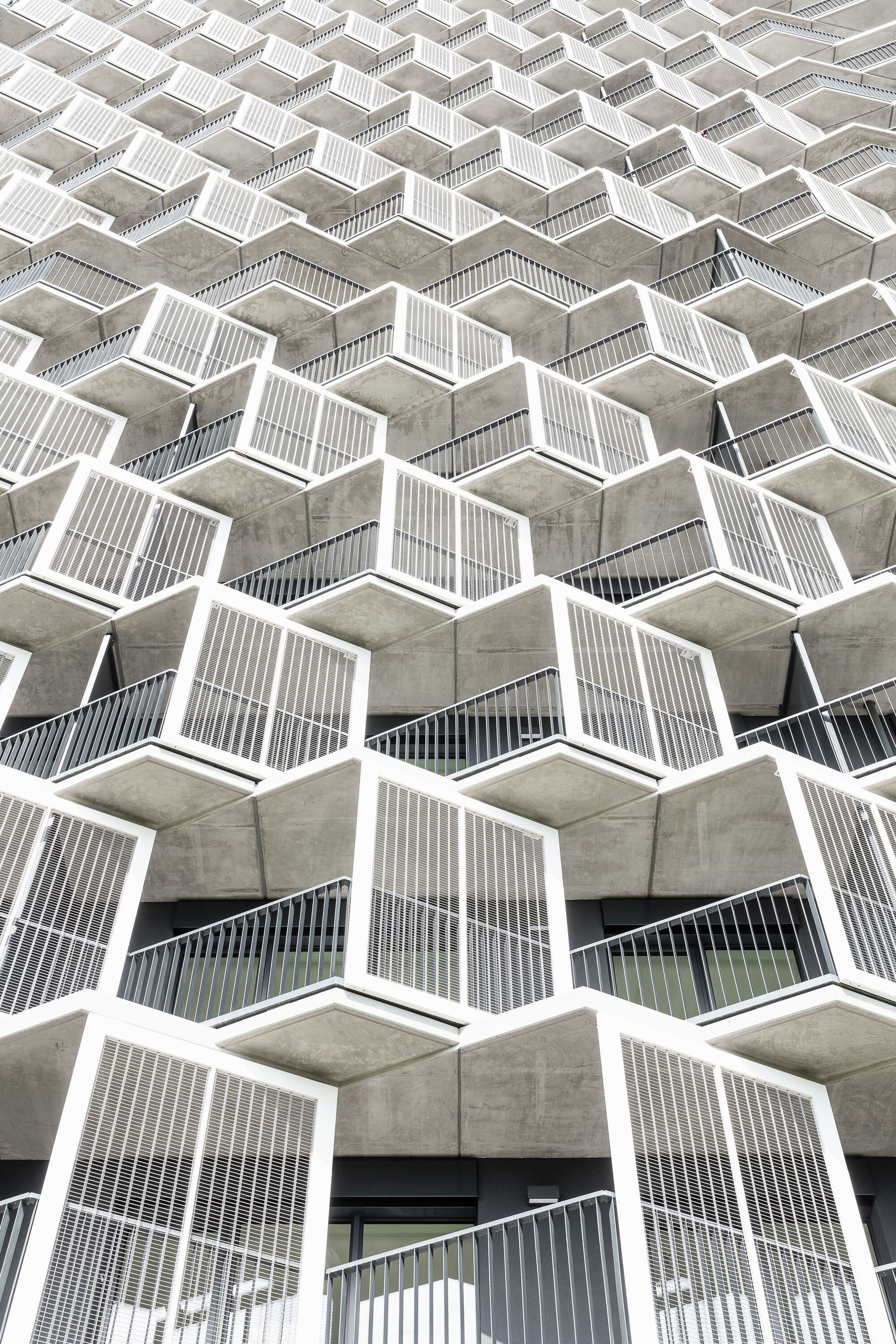 Plastický vzhľad fasády objektu Guthaus tvoria zalomené línie priebežných balkónov, doplnené o fasádne panely vyplnené nerezovým sitom. Zvolené riešenie, spolu s optimálnou hĺbkou konštrukcií podľa slov autorov zabezpečuje tienenie interiéru v letnom období a pasívne solárne zisky počas zimy. Súčasne vytvára charakteristický hexagonálny priestorový motív. Balkóny sú priamo prístupné zo všetkých miestností bytov, pričom štandardné okná nahrádza bezprahové zasklenie.