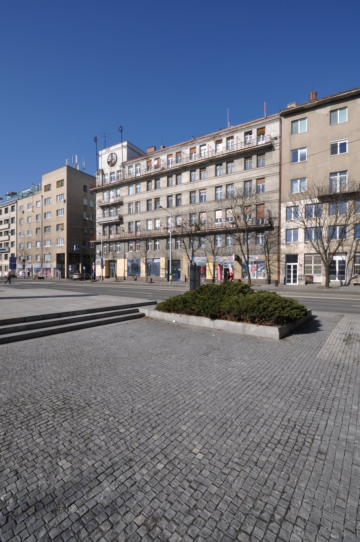 PK, MŠ, JŠ: Funkcionalistická hmota domu je na uličných fasádach dotvorená prvkami charakteristickými pre predchádzajúce obdobia - výraznými rímsami, štukatérskymi prvkami, umelecko-remeselnými prvkami vo fasádach a v interiéri, kvalitou pôvodných povrchových úprav