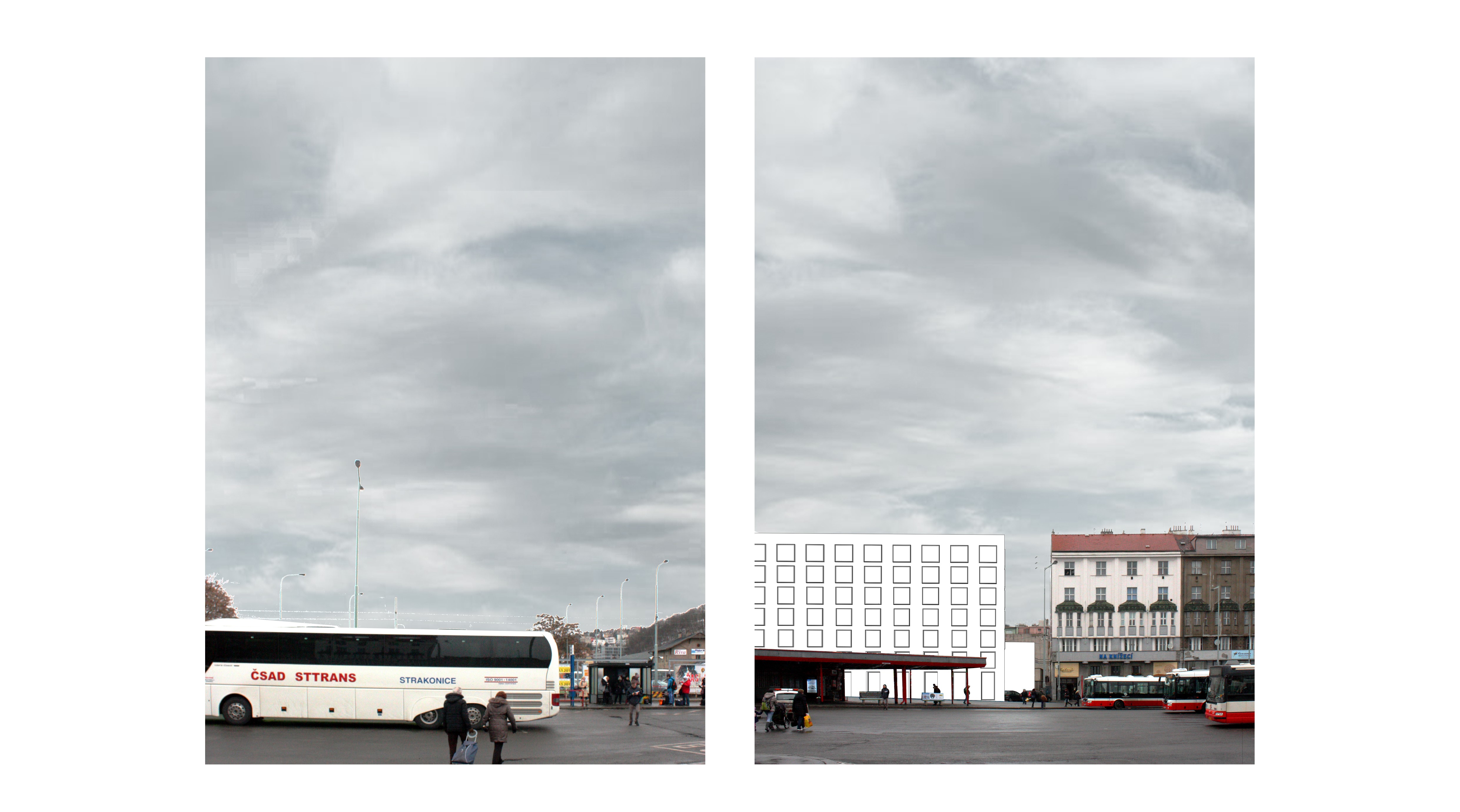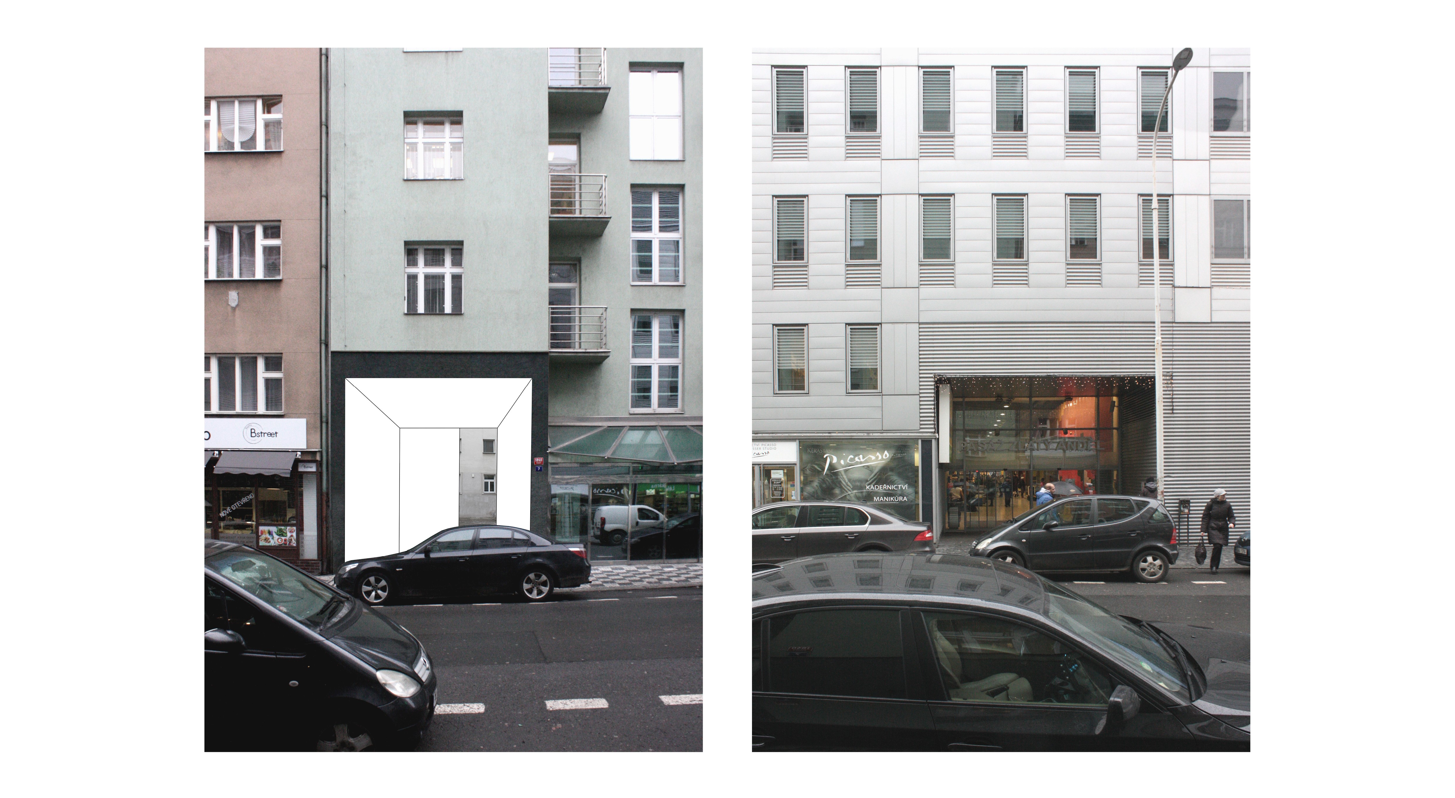 Urbanistické riešenie experimentuje s prepojením dvoch umelo vytvorených osí. Prvá, realizovaná v deväťdesiatych rokoch ako predĺženie Anděla pasážou Zlatý Anděl, končí v ulici Bozděchova a naráža na dom, v súčasnosti kancelársky objekt. Druhá os, zelený bulvár plánovaný ako súčasť developmentu Smíchov City, ústí do nevyužívaného biografiu. Návrh skúma možnosti ich prepojenia, prebúrania domov a zapojenia celého bloku do nového fungovania.