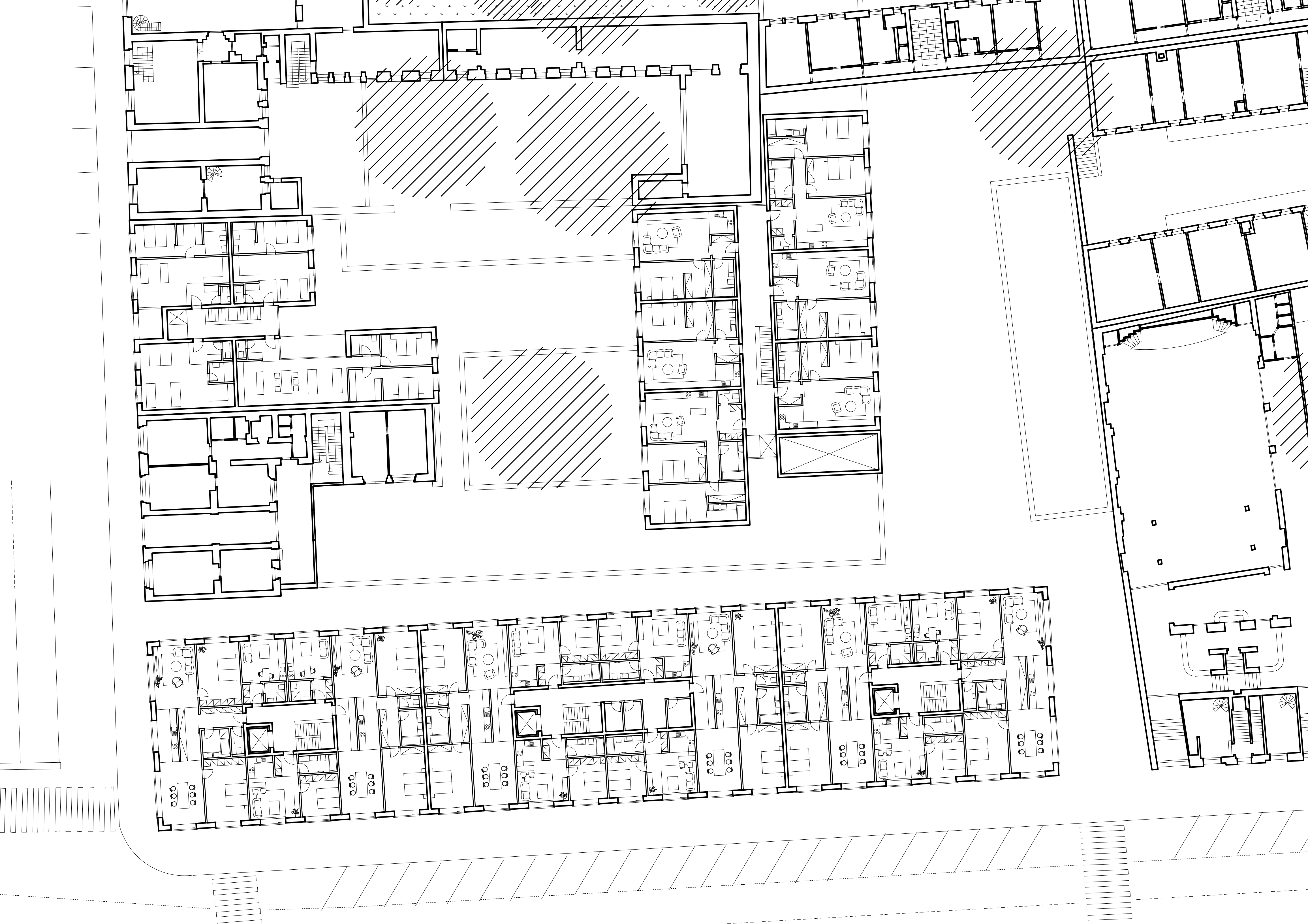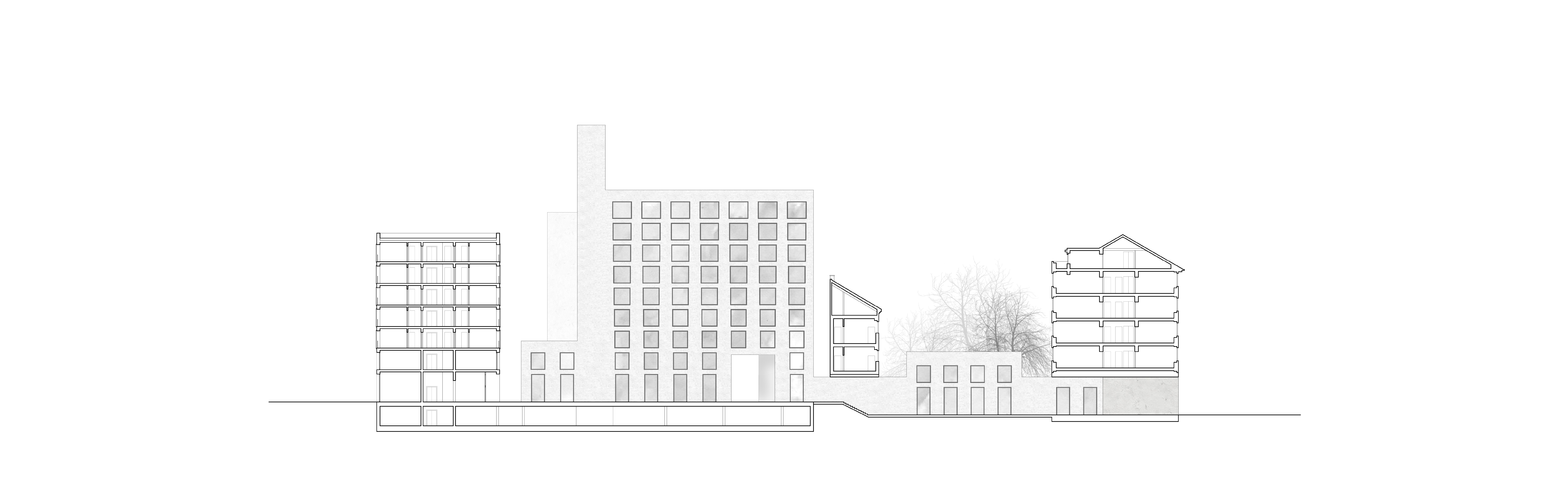 Zástavba spriestupňuje vnútroblok a vytvára nové komerčné vzťahy, ktoré sú podporované doplňovaním služieb a prevádzok, katalyzujú rozbehnuté otváranie dvorov verejnosti a spobytňujú inak zanedbaný priestor.