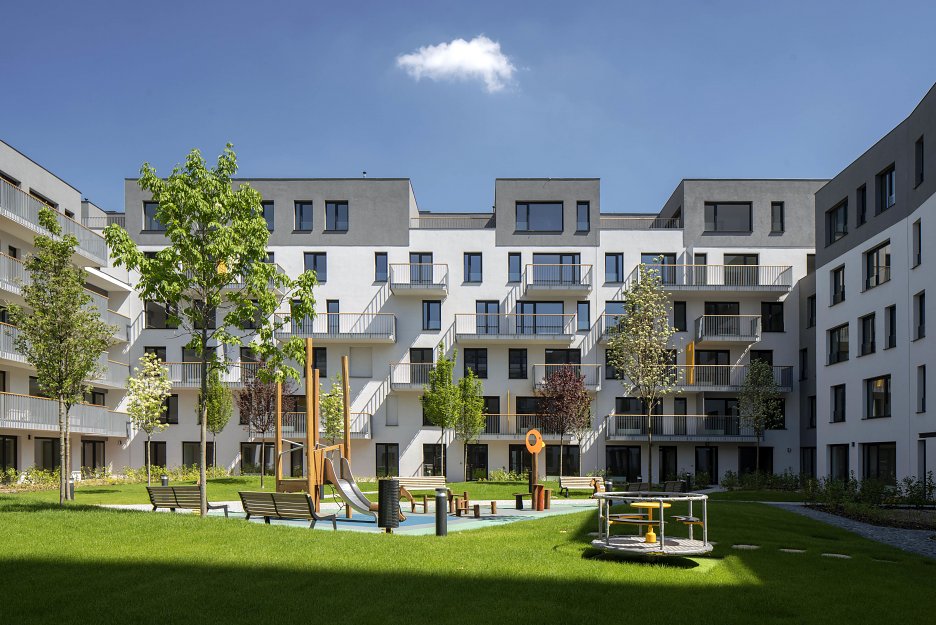 "Dôraz pri návrhu bol kladený na kvalitu vertikálne diferencovaného prostredia pre rezidentov a retail. Na úrovni verejných priestorov sa obytný súbor zapája do okolia. Zvýšená poloha zelených dvorov vytvára intímnejšie komunitné prostredie pre obyvateľov"... vysvetľujú architekti.