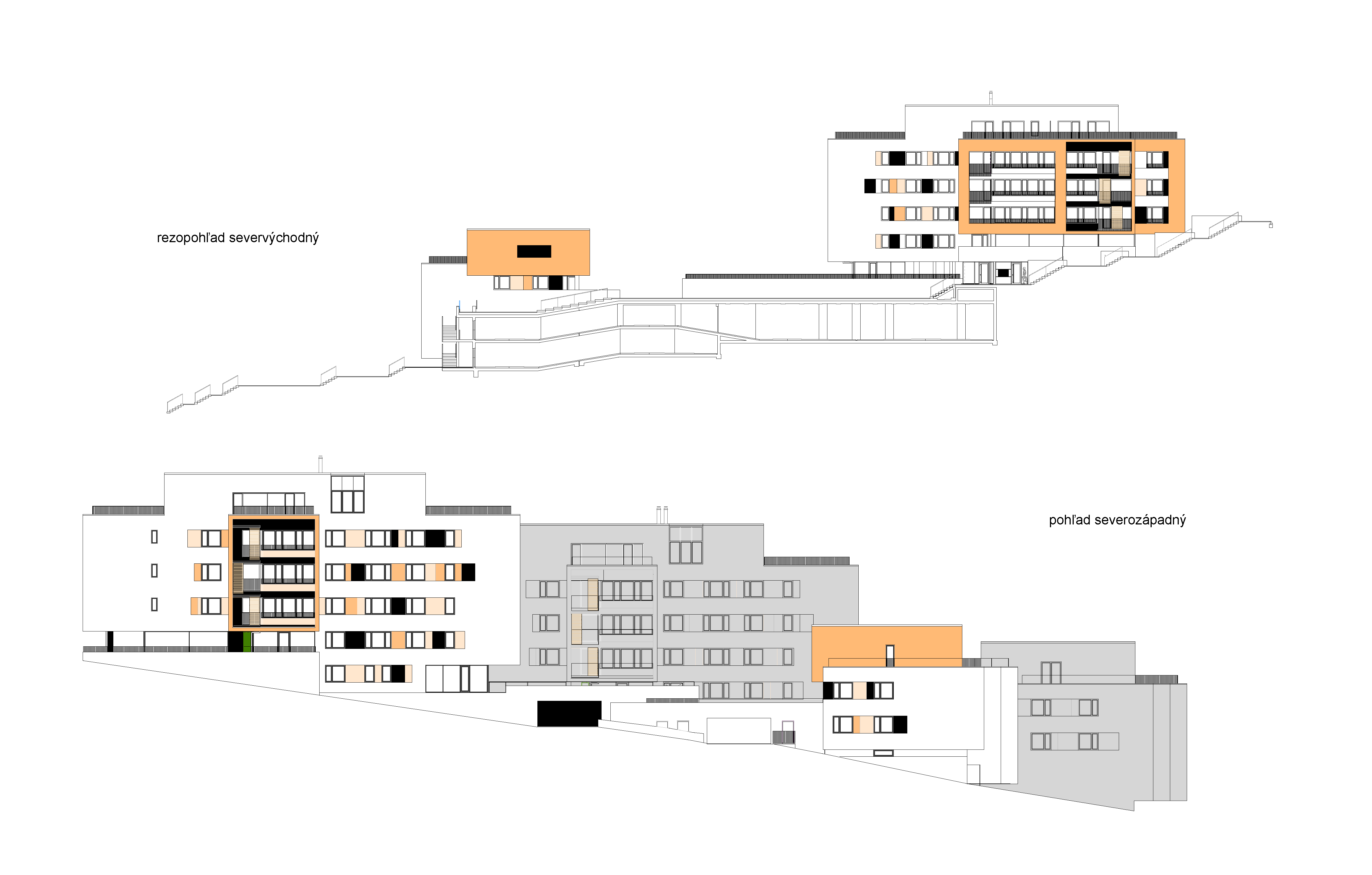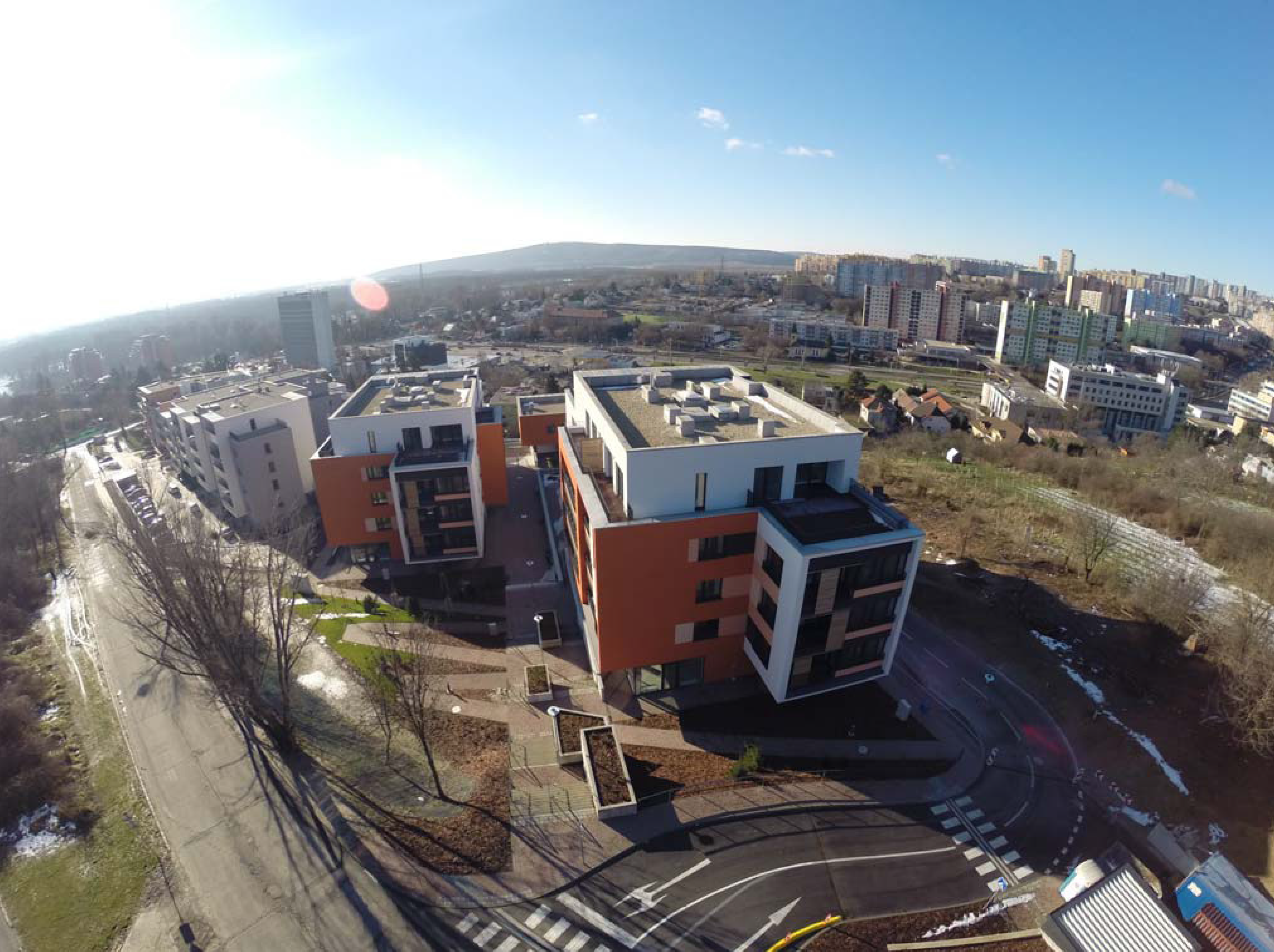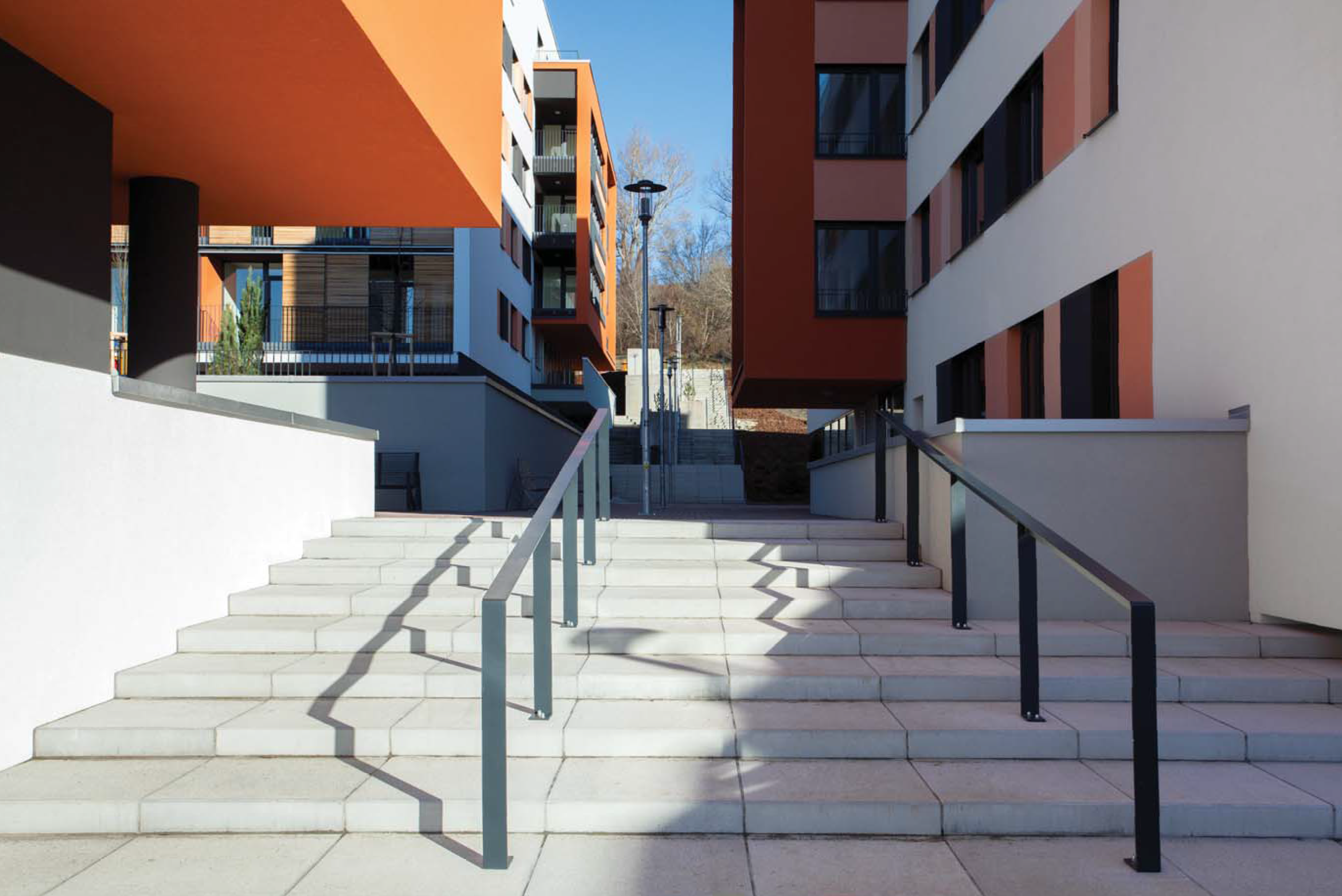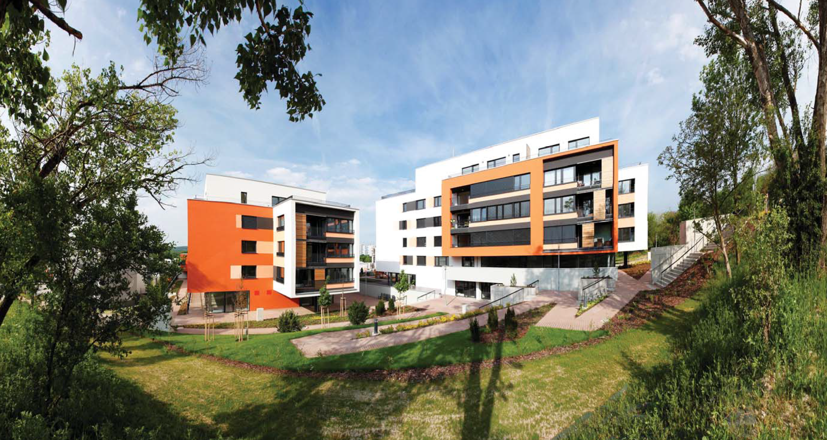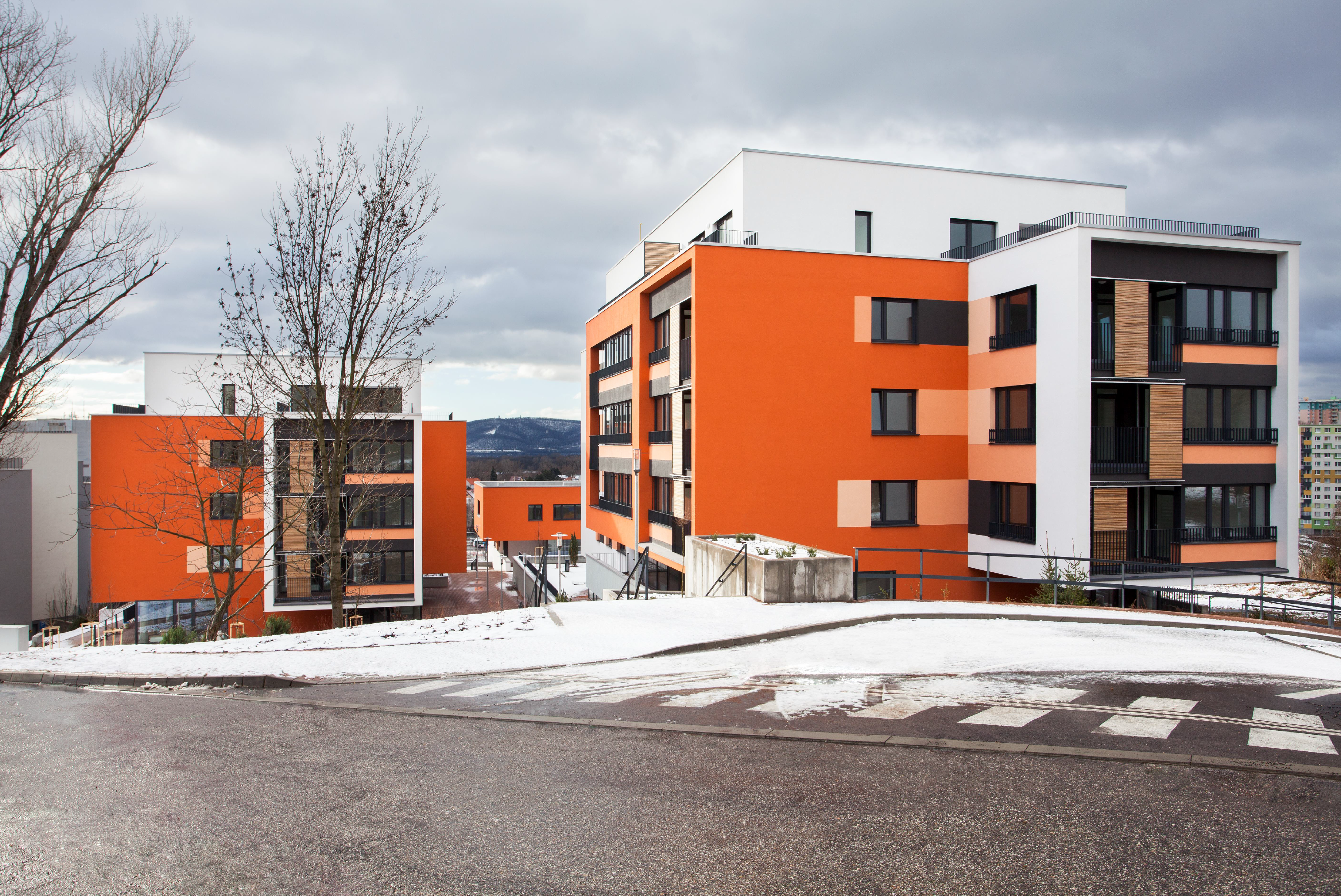 Obytný súbor tvoria 4 bodové bytové domy, osadené na spoločnej podzemnej halovej garáži kopírujúcej zvažujúci sa terén. Koncept šachovnicového osadenia domov umožňuje vizuálne zaujímavé komponovanie vnútroblokových priestorov so zachovaním voľných výhľadov z bytov a zaujímavých priehľadov medzi objektami na najbližšiu realitu súboru a vzdialenú panorámu protiľahlých svahov.