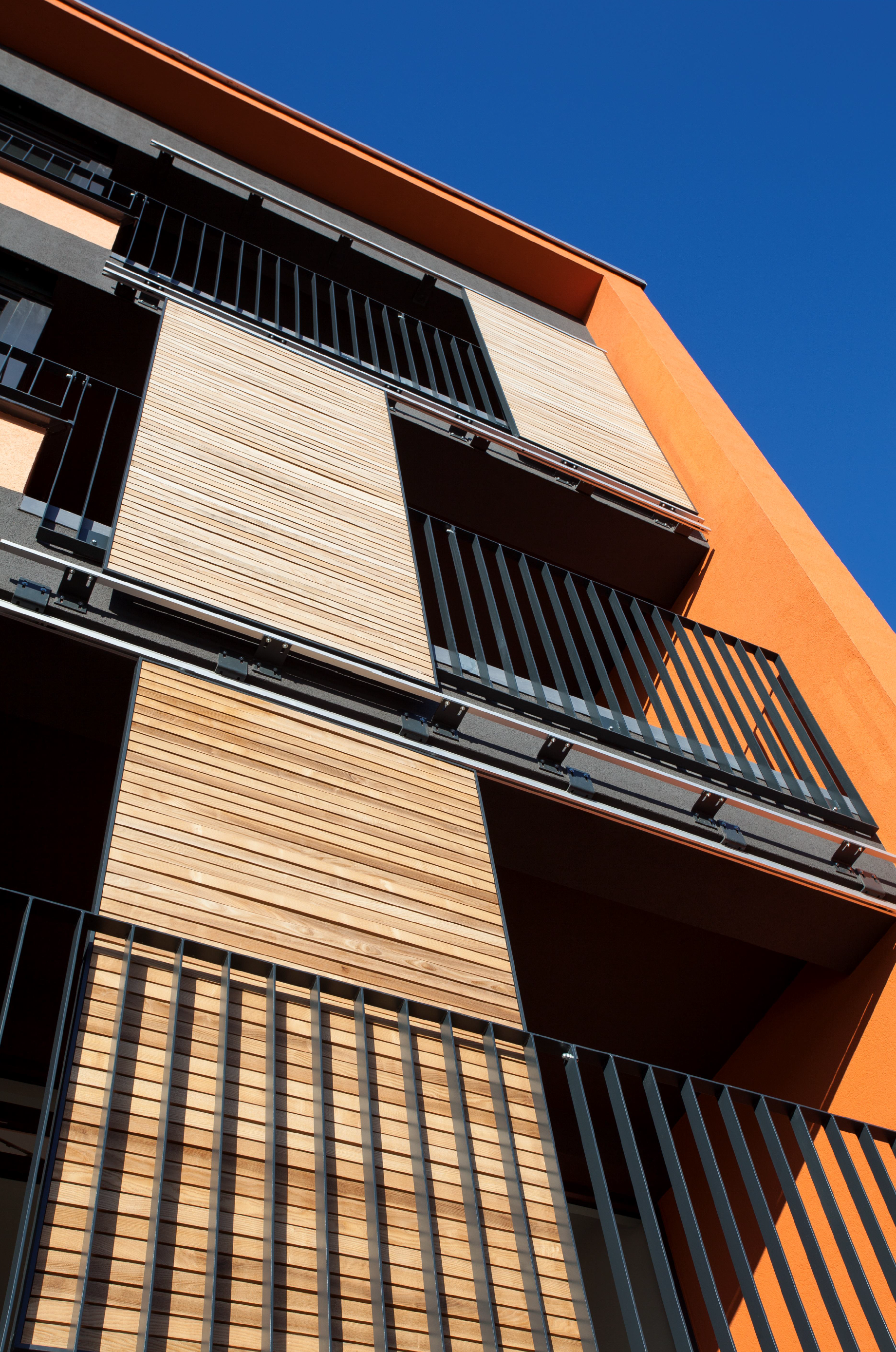 Dominantným architektonickým motívom je celoobvodový rám na hlavnom priečelí, ktorého zámerom je prerozprávať tvár bytového domu nie štandardnou dikciou okno-balkón-parapet, ale výrazným geometrickým prvkom, atraktívnym aj v širších siluetárno-panoramatických vzťahoch. Z rámu hľadia celopresklené fasády obytných priestorov bytov, hlboké loggie sú pred dotieravým slnkom chránené mobilými tieniacimi paravánmi.