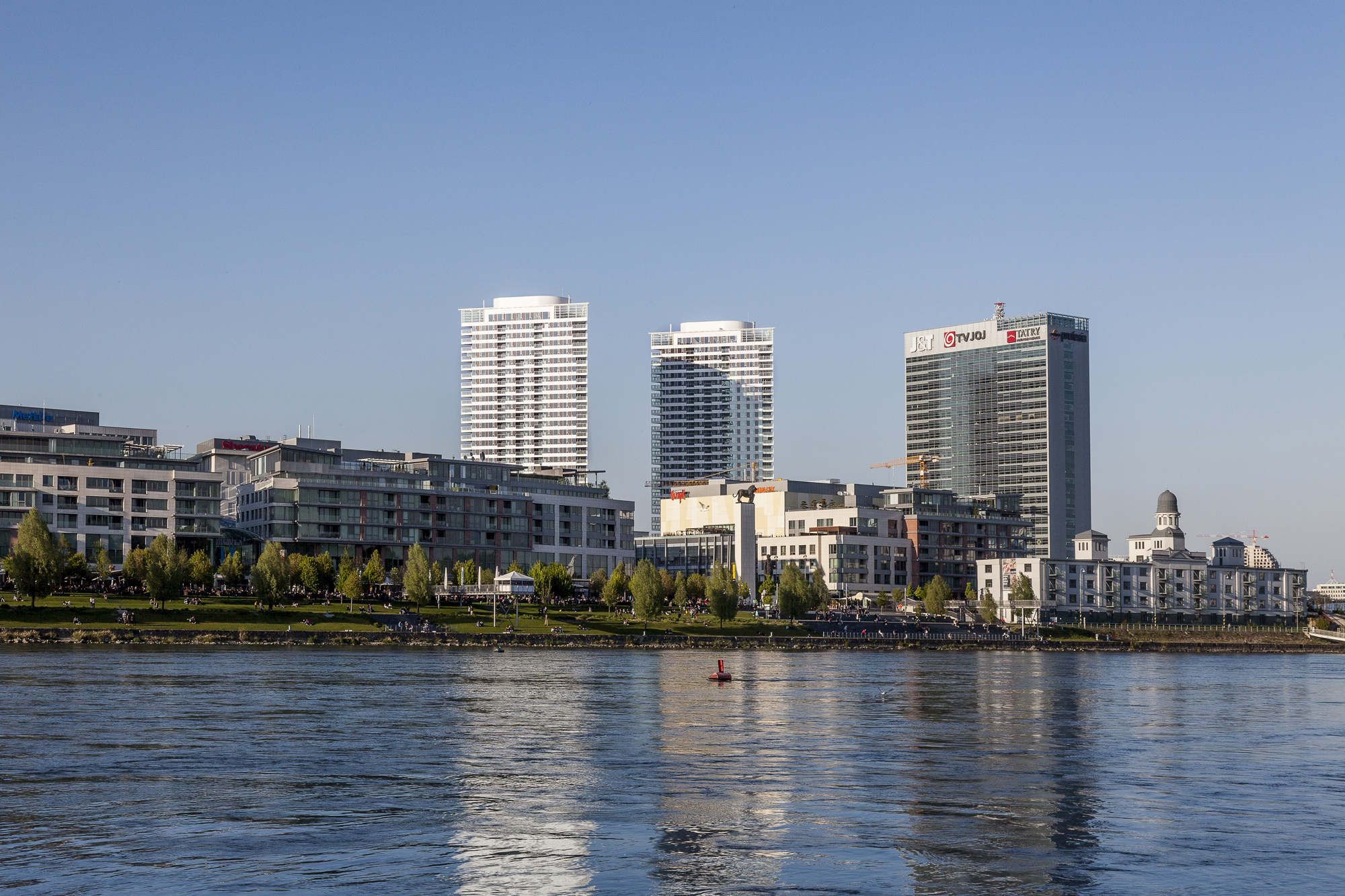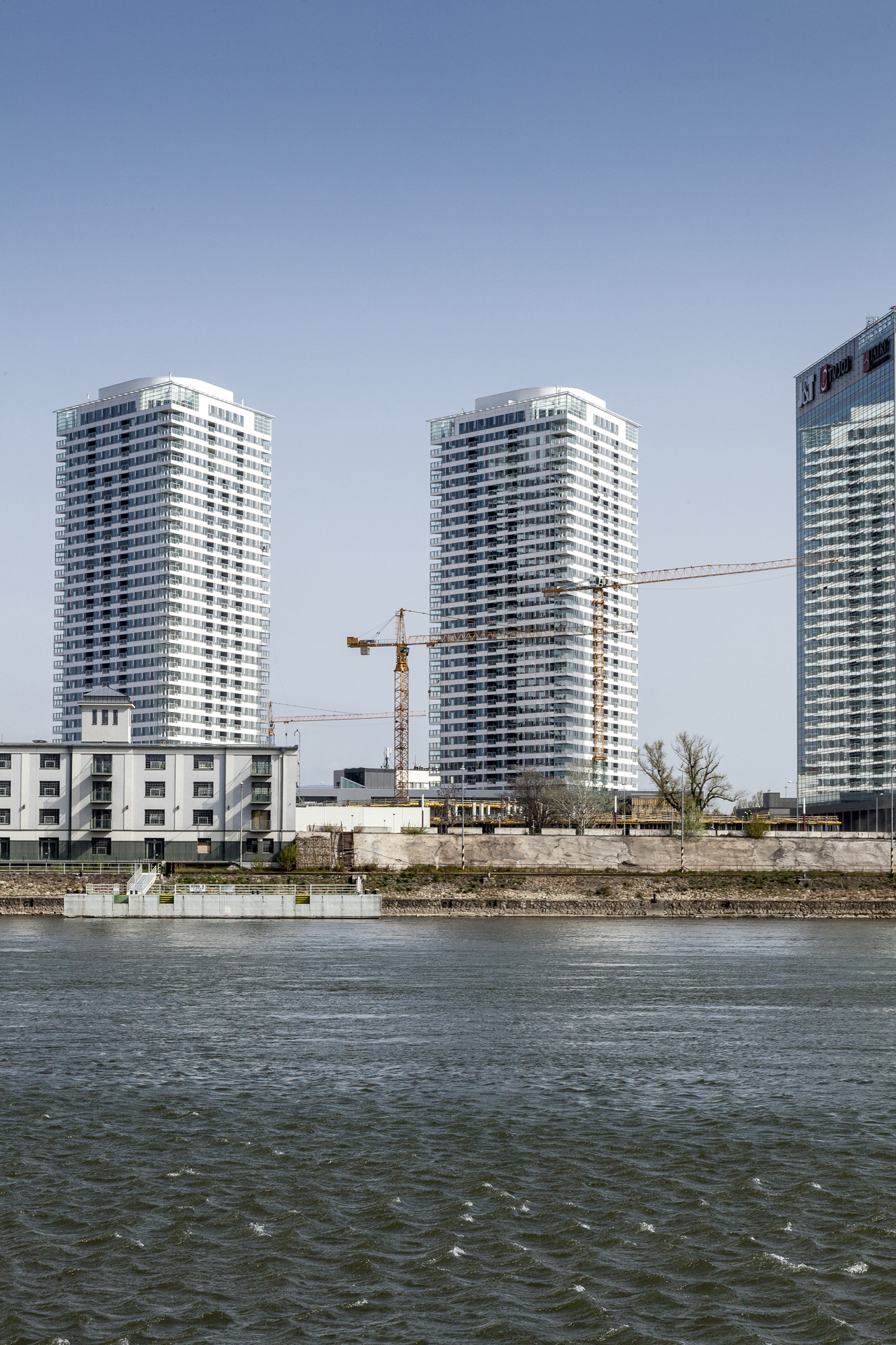 Obe fasády orientované na Dunaj sú doplnené o zapustené lodžie. Na hladšej ploche tretej, severnej fasády sú lodžie patriace apartmánom situované pri vertikálne prebiehajúcom páse vetracích žalúzií. Tento pás je výrazným kompozičným prvkom severnej fasády. Za lamelami sa ukrýva technológia chladenia a vyústenie vzduchotechniky veží. V nárožiach sú loggie trojizbových a štvorizbových bytov.