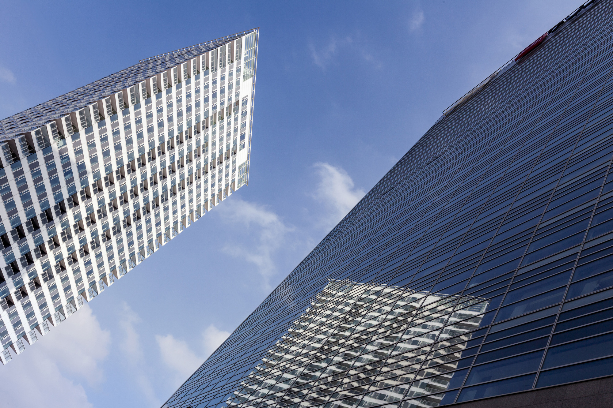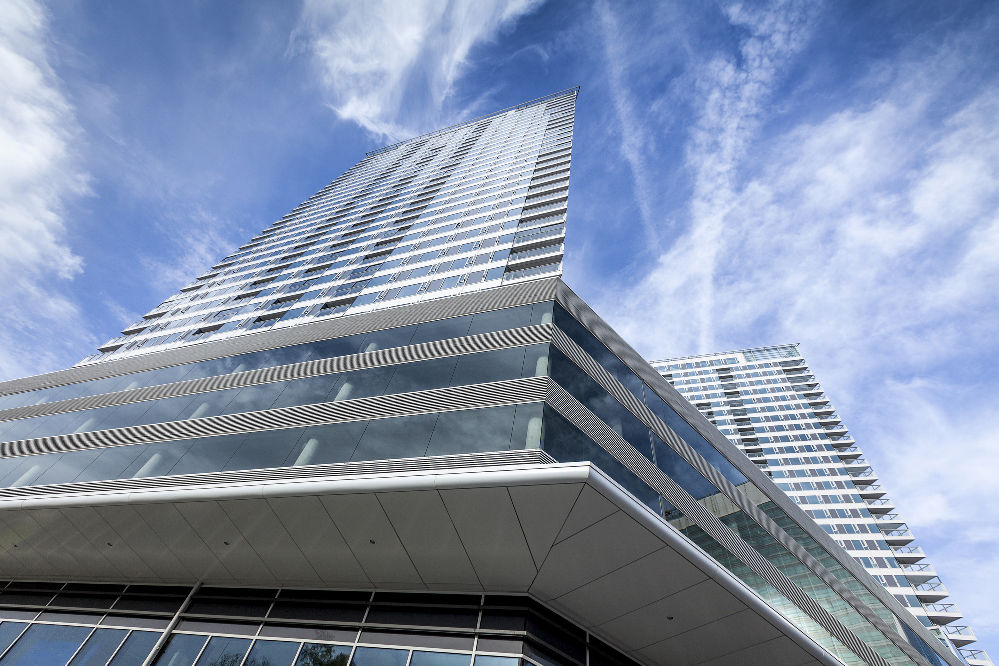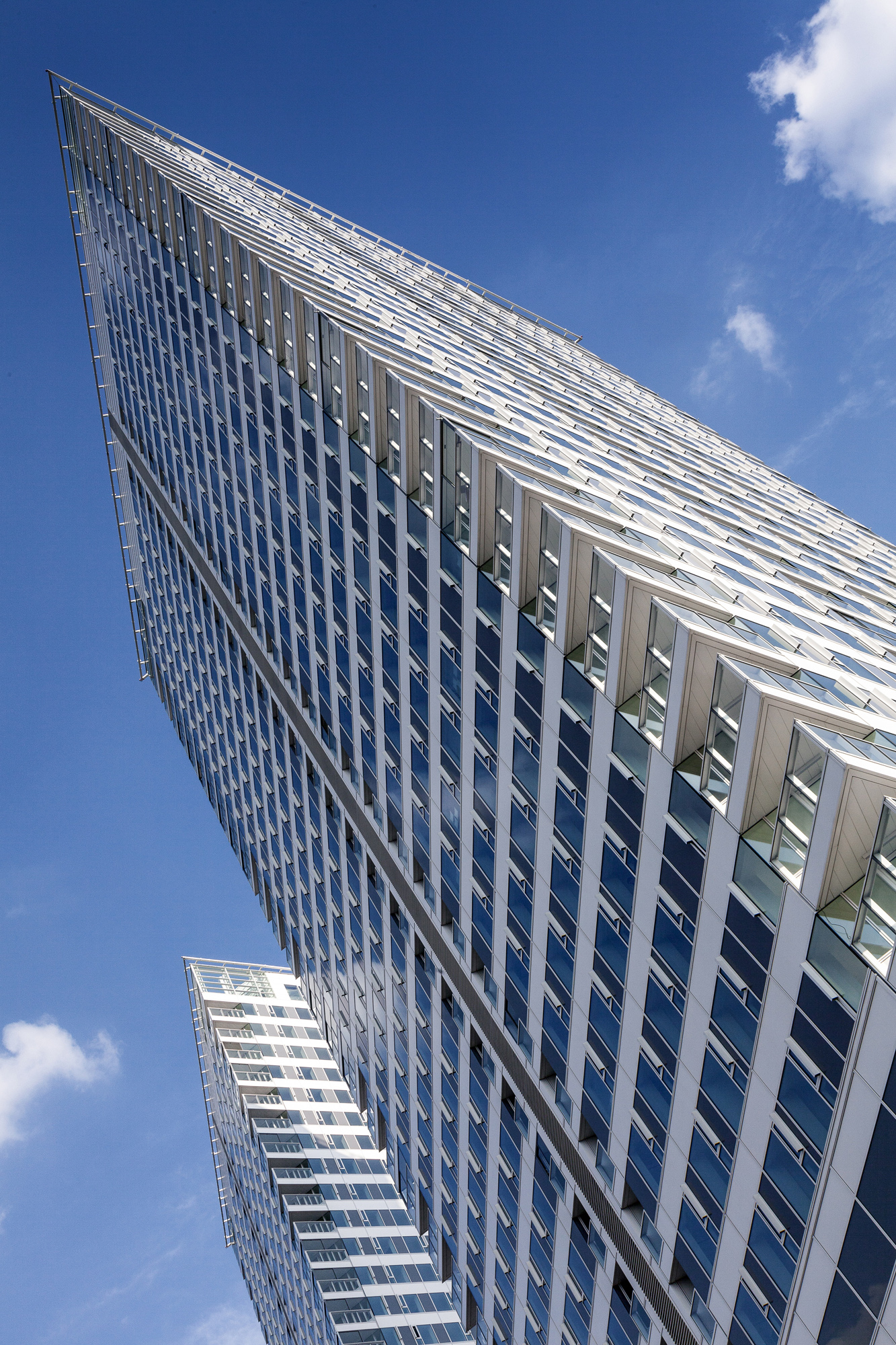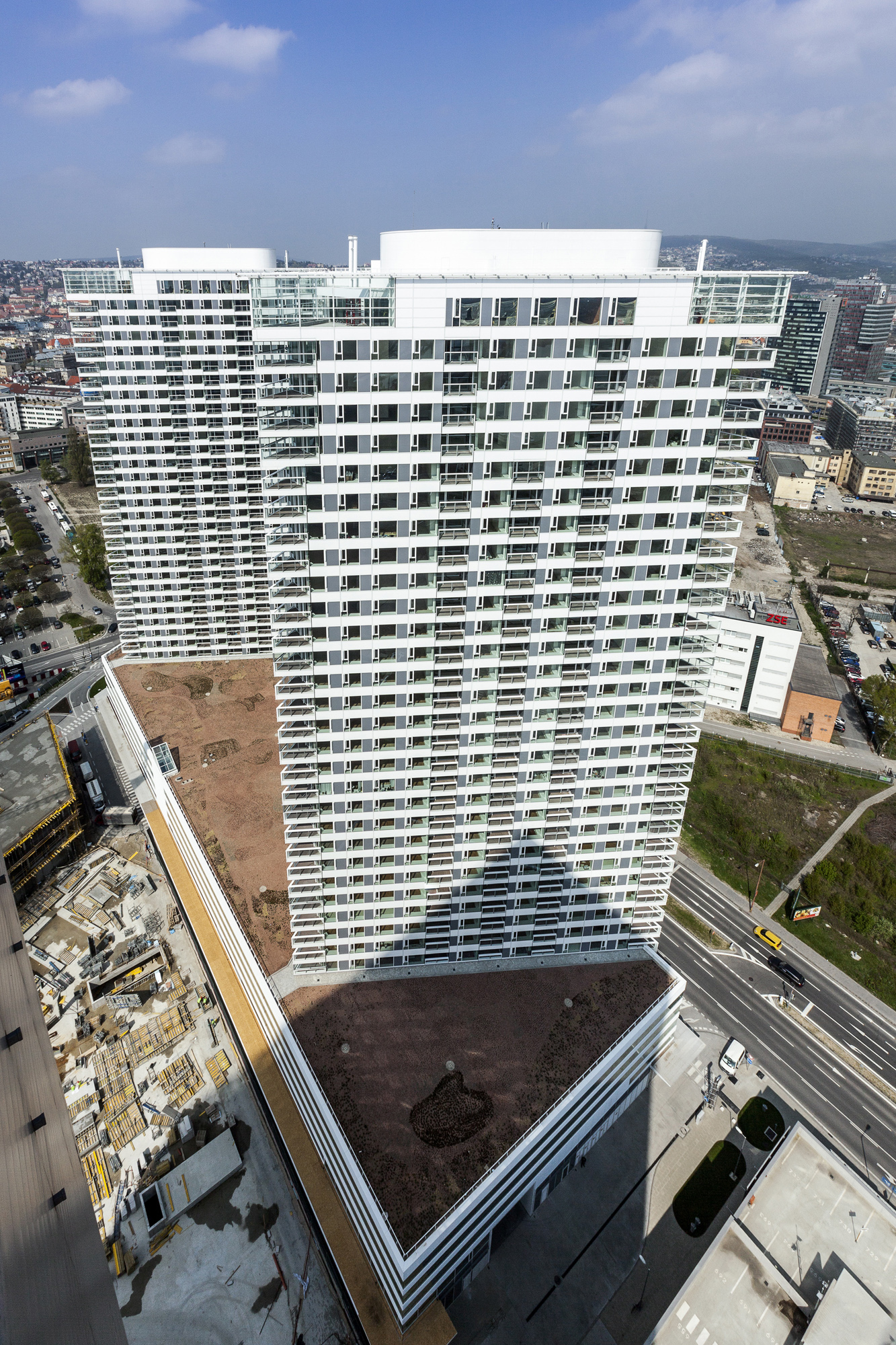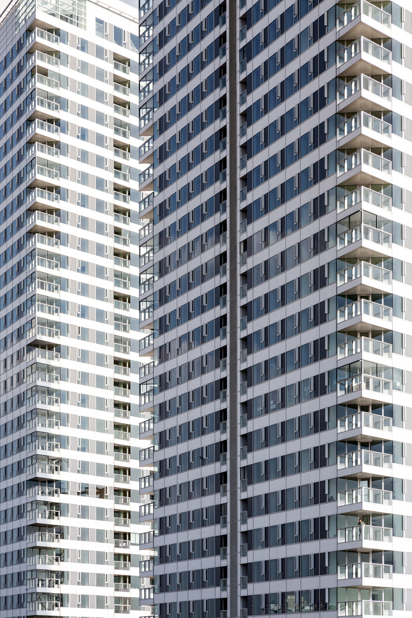 Bofill navrhol celosklené štíhle veže, ktoré v evokovali skôr administratívne výškové stavby, preto boli do súčasnej podoby projektu navrhnuté otvorené obytné loggie pre každý byt. Jednotlivé bloky čistých hladkých stien s „vyhryznutými“ objemami loggií využívajú rôzne uhly dopadu slnečných lúčov a vytvárajú tak hru svetla a tieňa. Architektonický výraz obytných veží okrem samotných loggií výrazne ovplyvňujú priebežné biele horizontálne parapetné pásy rozličnej výšky. Sú vyhotovené z tepelnoizolačných výplní na báze pohľadového hliníkového plechu hrúbky 3 mm. V zasklených častiach fasády sa strieda priehľadná plocha s netransparentnou výplňou tepelnoizolačných panelov s predsadeným sivým kaleným sklom. Charakteristické sú najvyššie podlažia, na ktorých dominujú v nárožiach veľké presklené terasy, evokujúce určitú afinitu s architektúrou blízkeho Toweru 115. Výškové obytné budovy sa stali neoddeliteľnou súčasťou panorámy Bratislavy.