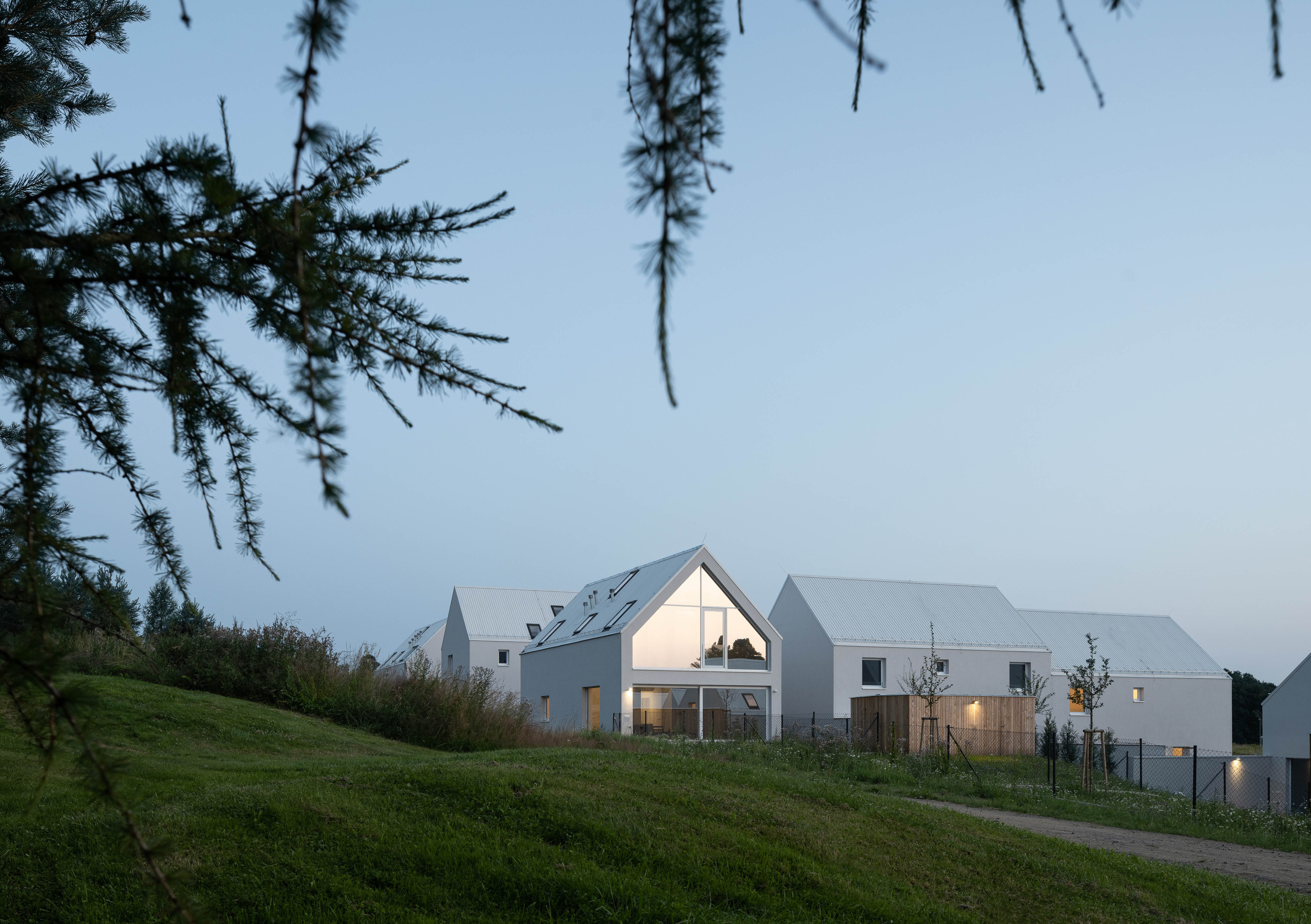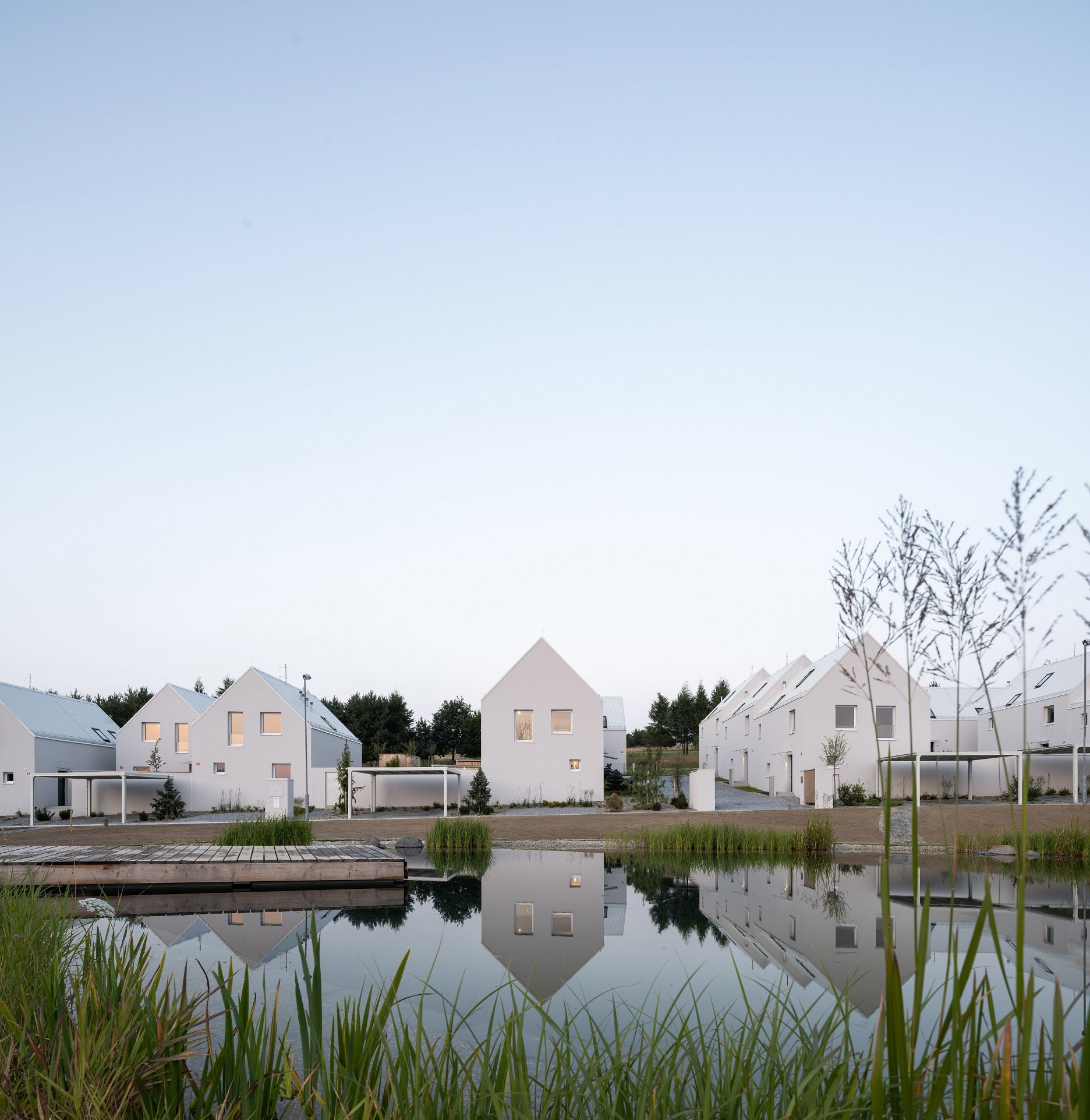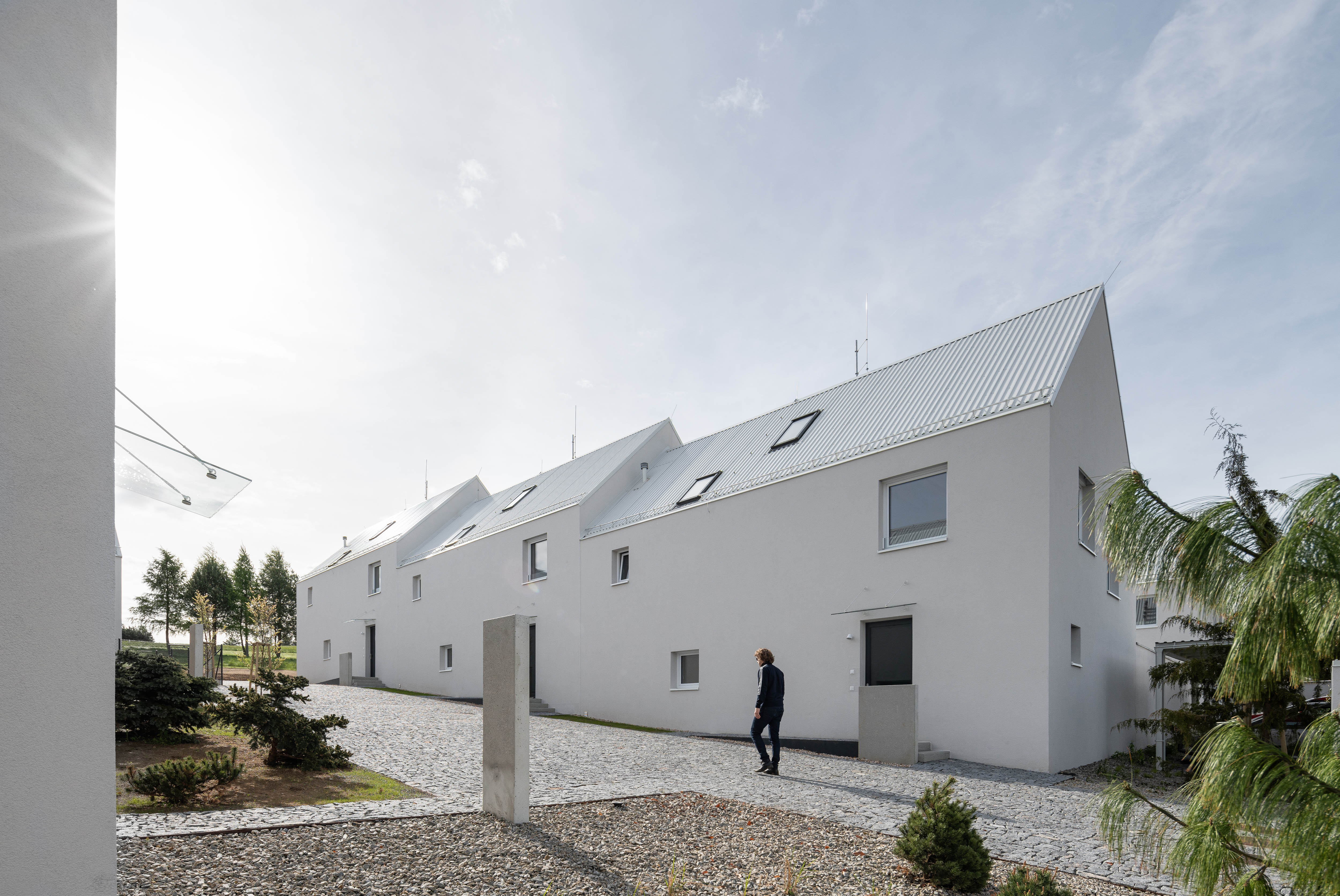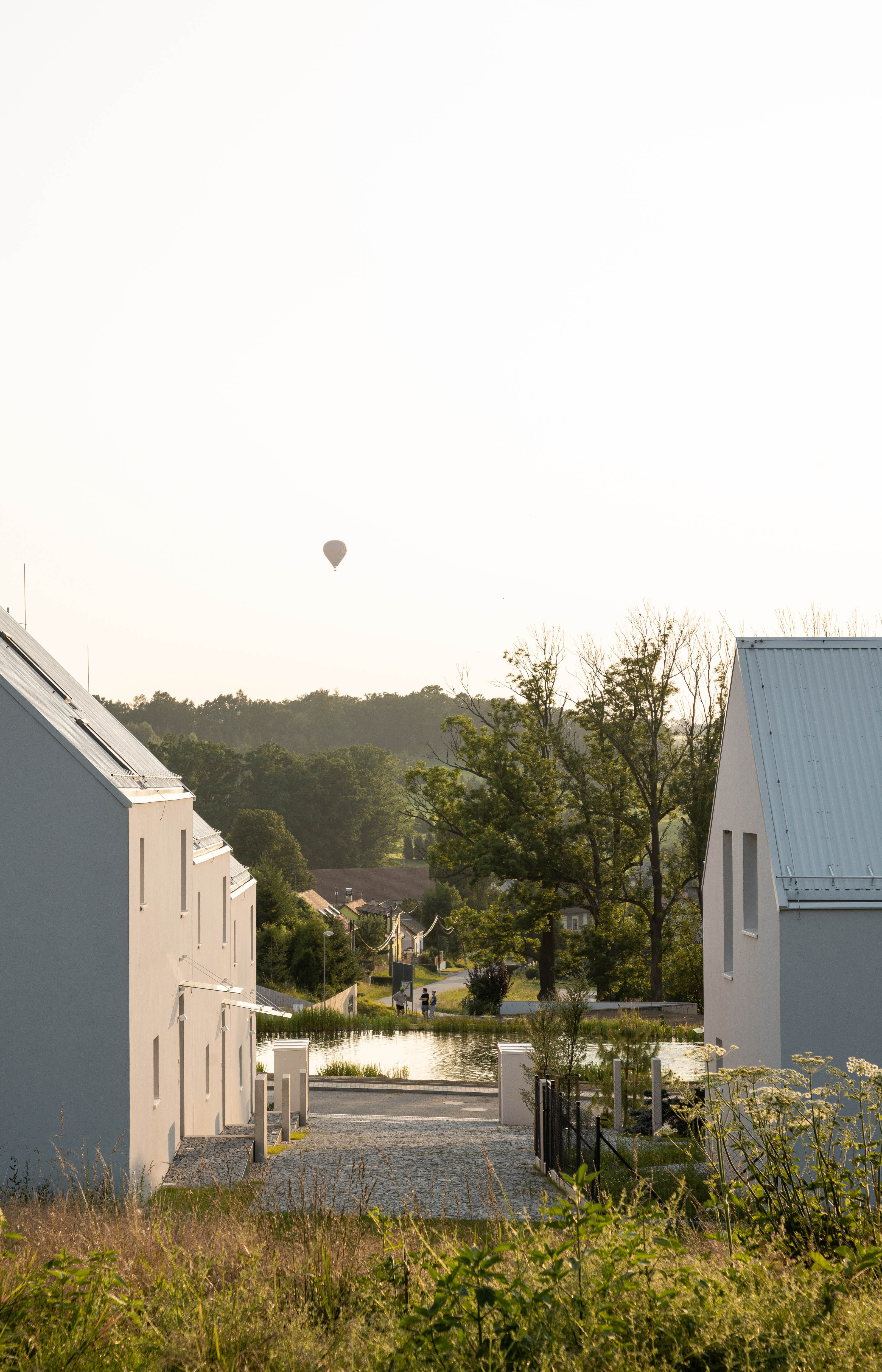 “Stavby jednoduché v objemu i detailu, v souladu s racionální vesnickou výstavbou i se zadáním investora. Architektura je racionální, skromná. Bohaté jsou zejména prostory mezi domy, veřejné i poloveřejné plochy,” opisujú základné tézy konceptu architekti z pražského ateliéru monom.