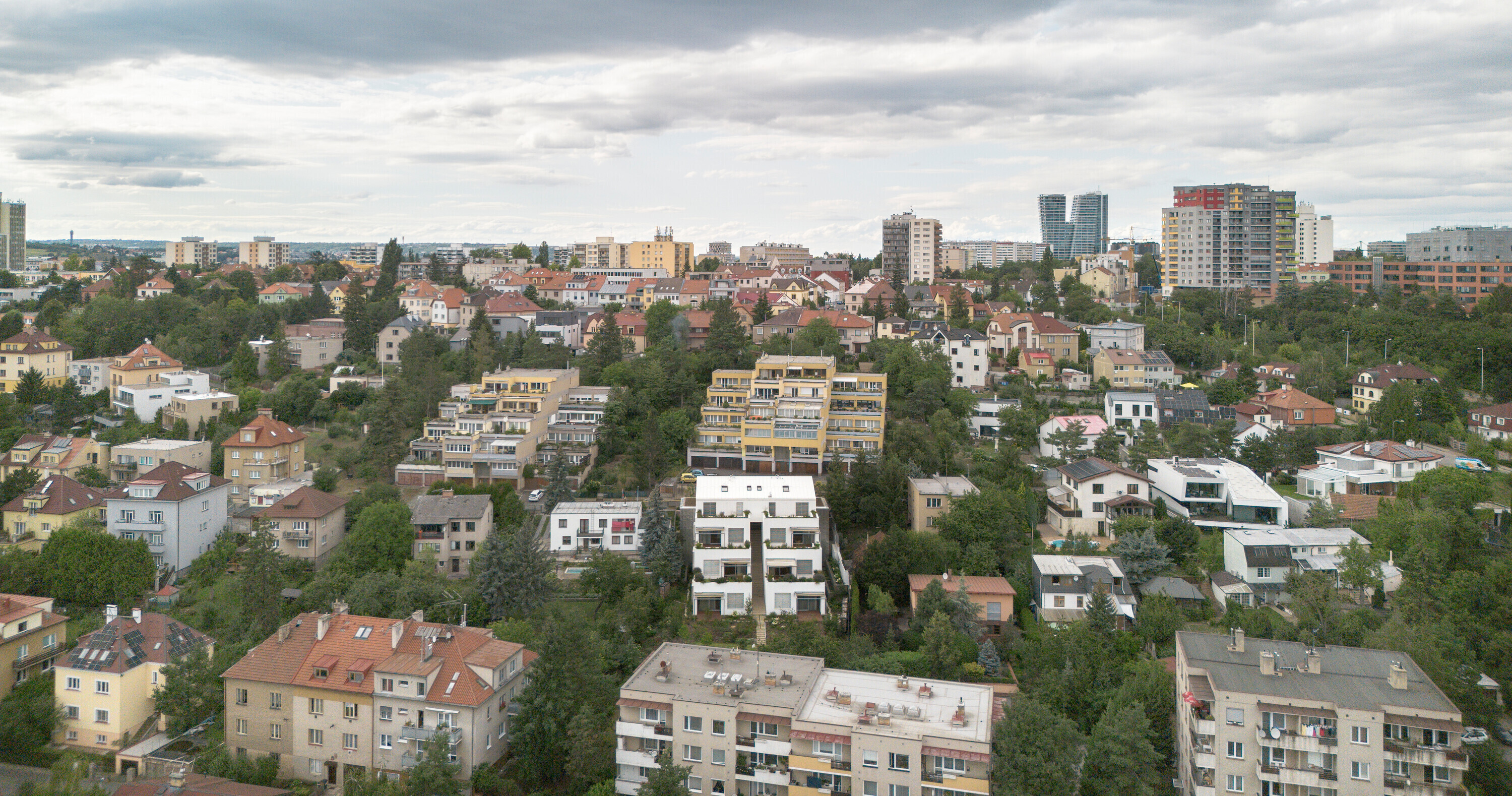 V území nájdeme celý rad výrazných stavieb – azda najzaujímavejšia je dvojica brutalistických terasových bytových domov z prelomu 60. a 70. rokov, reagujúcich na prudko stúpajúci terén, ktoré cez ulicu susedia s pozemkom aktuálneho projektu. Naopak k južnej strane pozemku prilieha súbor bytových domov zo 70. a 80. rokov 20. storočia. Aj tento architektonický kontext sa snažil návrh reflektovať. Hlavnými pozitívami pozemku boli jeho veľkosť, množstvo zelene, výhľad na juh až na oproti ležiaci zalesnený svah a výhodná orientácia. Vyvažovali ich však aj komplikácie – problematický prístup a veľké prevýšenie.