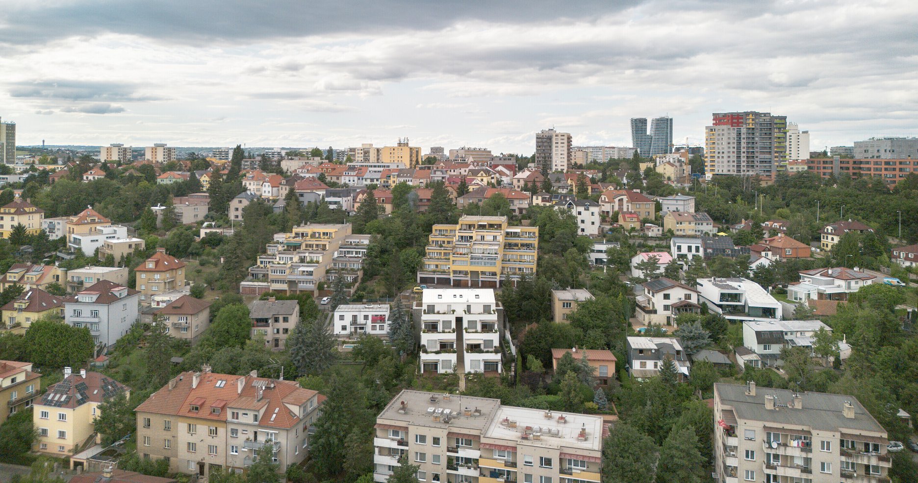 Dom na strmých svahoch v pražskej časti Krč, ktoré sa dvíhajú od Kunratického potoka smerom na sever nad dnešnú Južnú spojku.